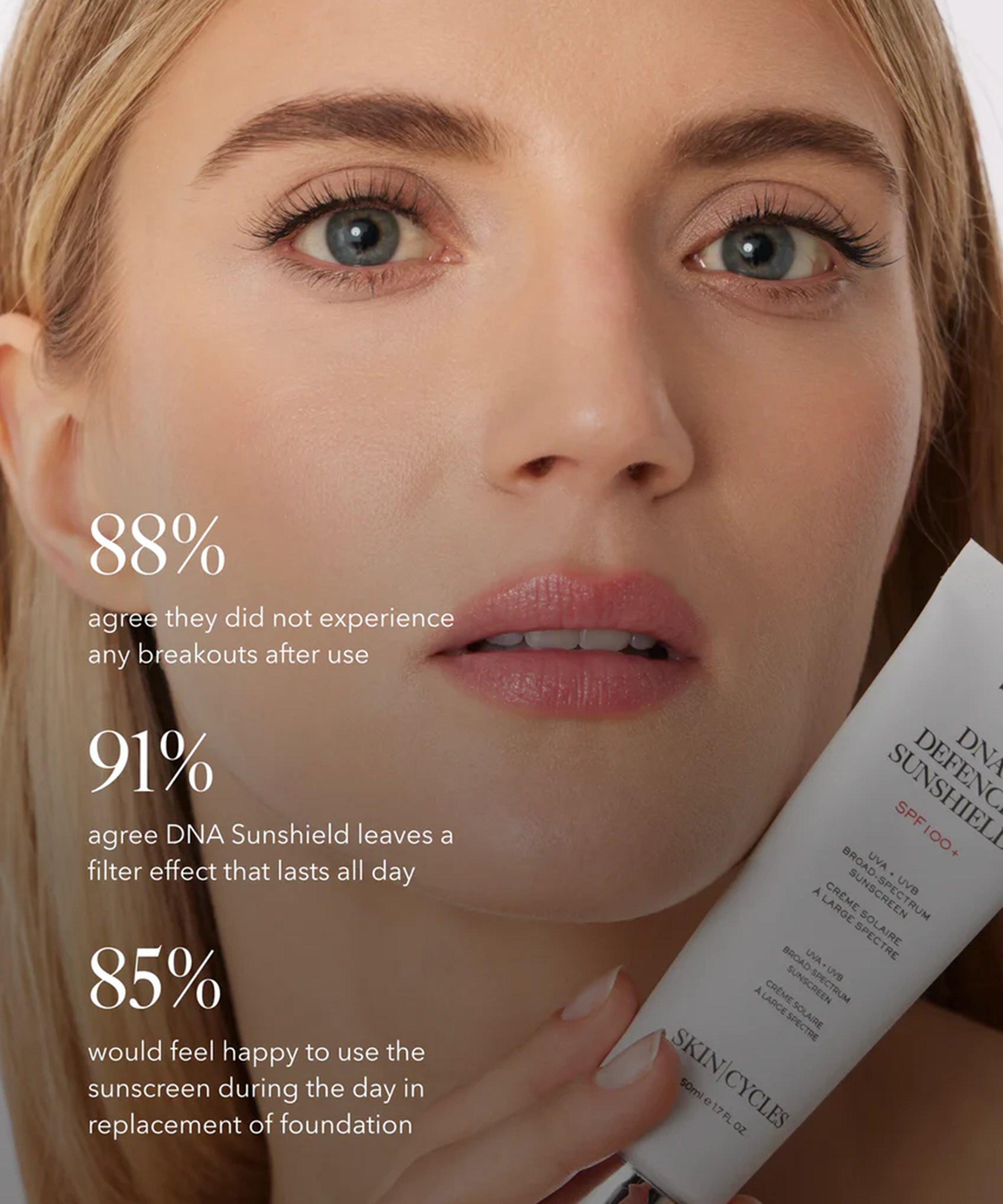 The DNA Defence Sun Shield SPF 100+ from Skincycles provides advanced protection from sunburn and premature light induced skin aging, with a smooth, filter-effect finish.