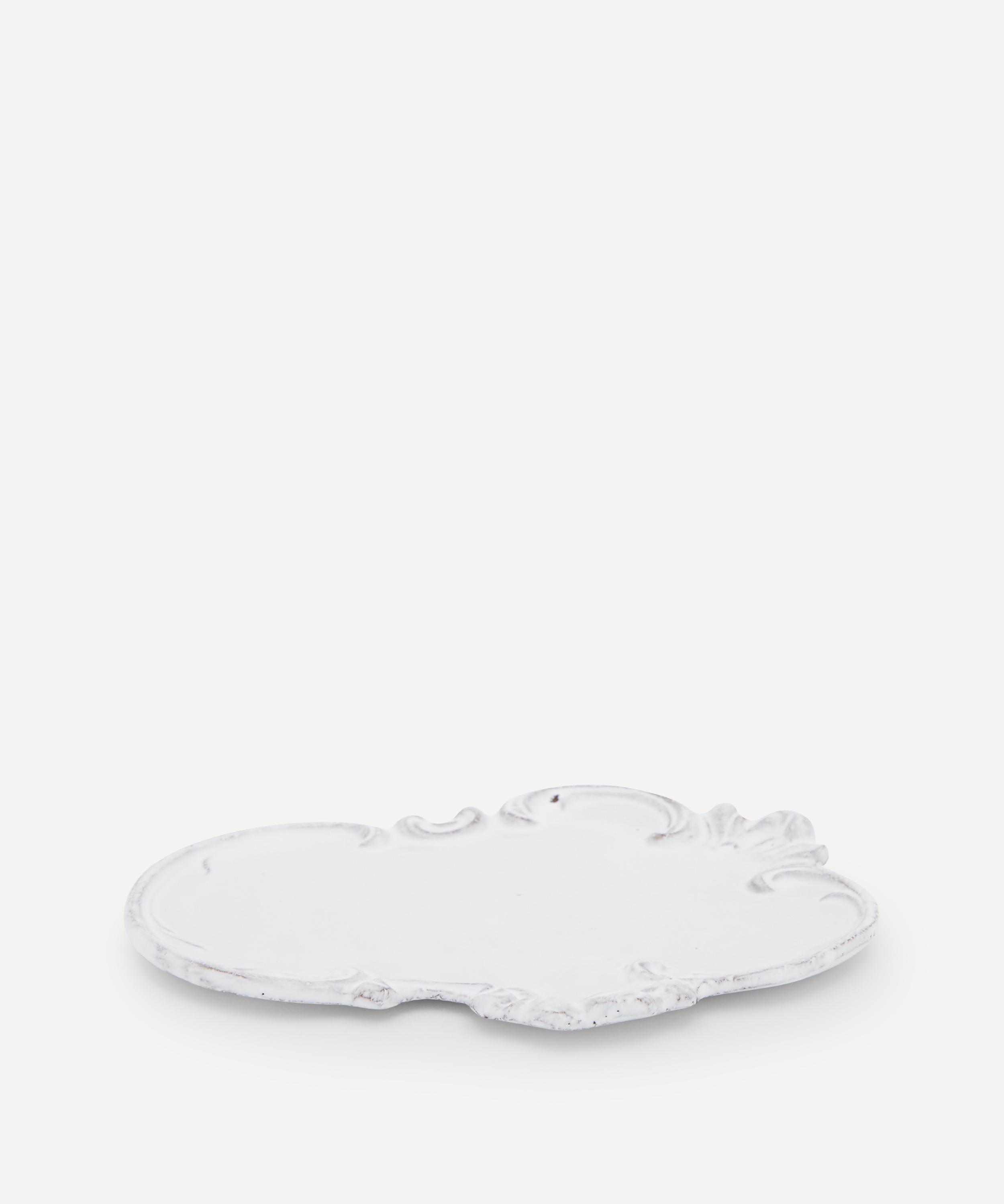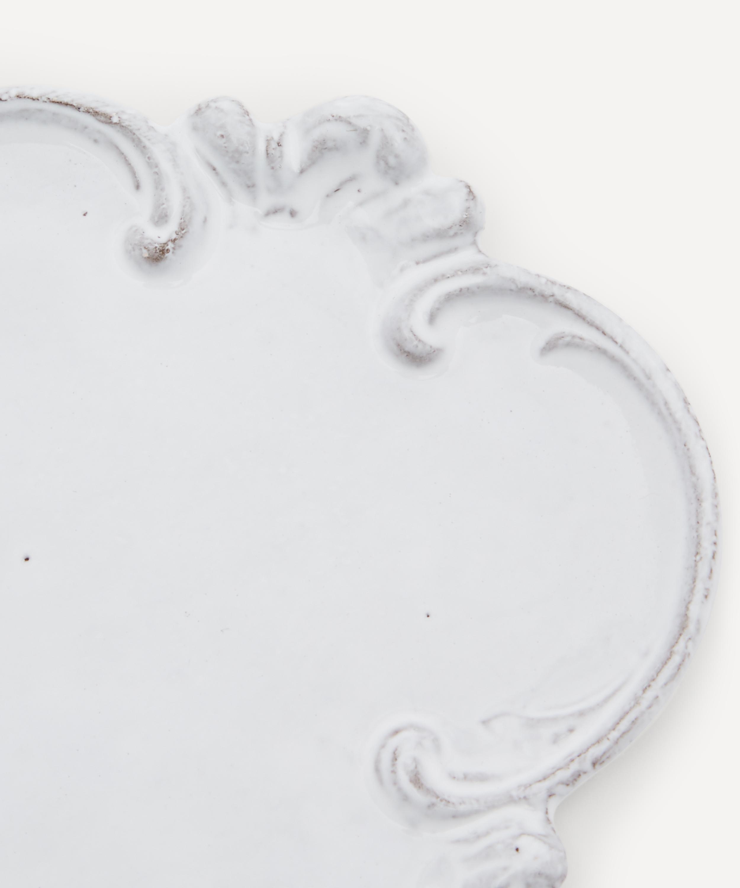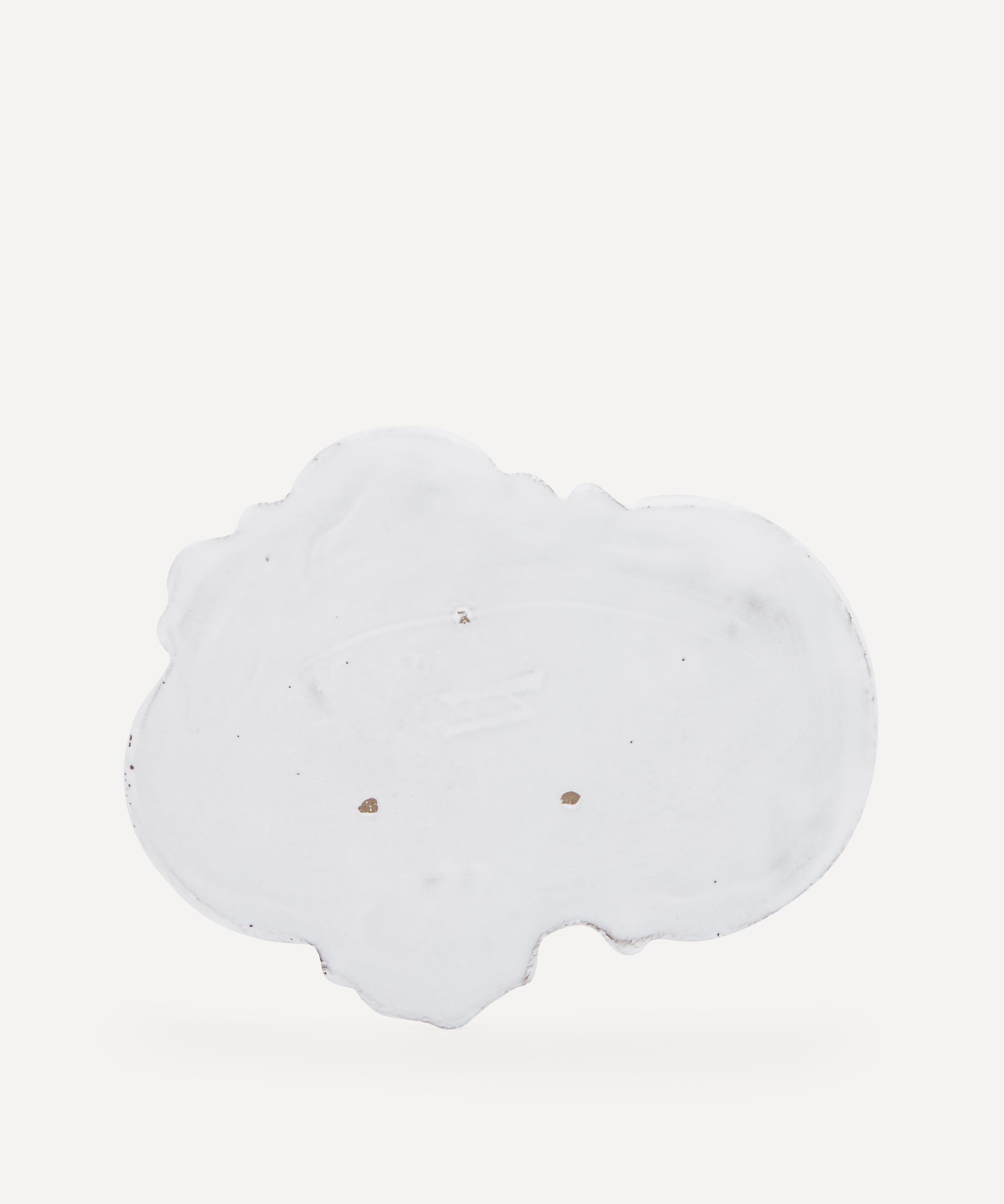 Votary of pre-industrial fabrication, Astier de Villatte is celebrated for being the one and only studio in Paris to hold and harbour the traditions of artisanal ceramic production. Restoring the ancestral systems of moulding and stamping, this dish is made using techniques from the Middle Ages which involve moulding a handmade sheet of clay, double firing the ‘biscuit’ piece and glazing the product in white enamel – a lengthy process that involves a drying time of up to one month. Characterised by a country-inspired antique silhouette, the decorative side dish is engraved with the brand’s signature crest - depicting an interlacing A & V - alongside the initials of one of the 40 master artisans who created it. Arrange with other serveware in the collection to breathe an air of authenticity into your dining collection.