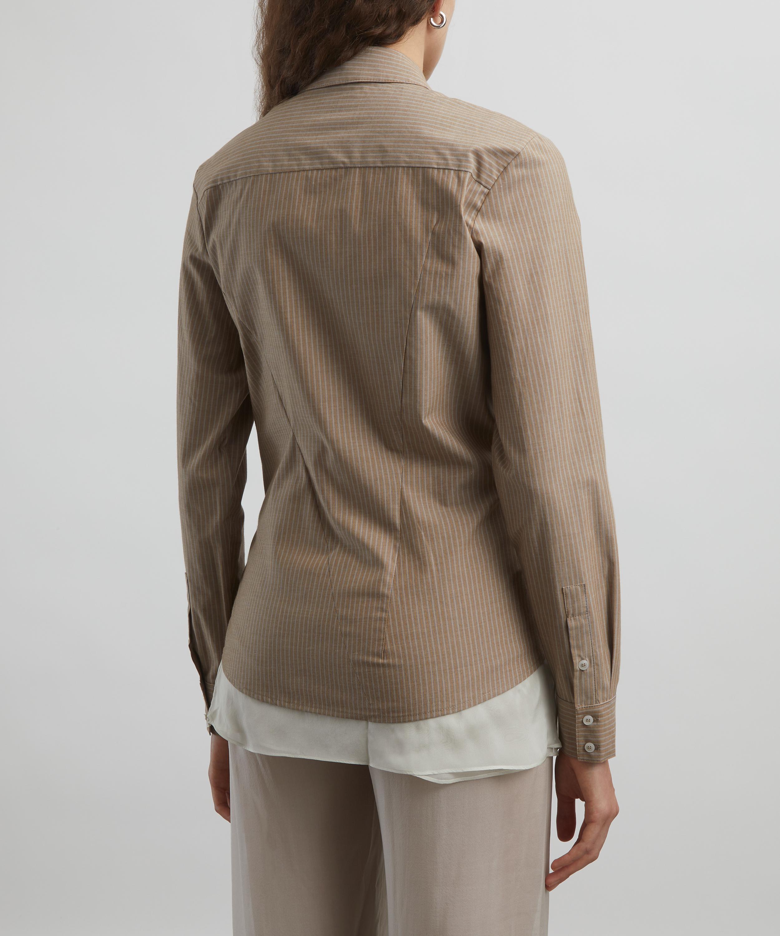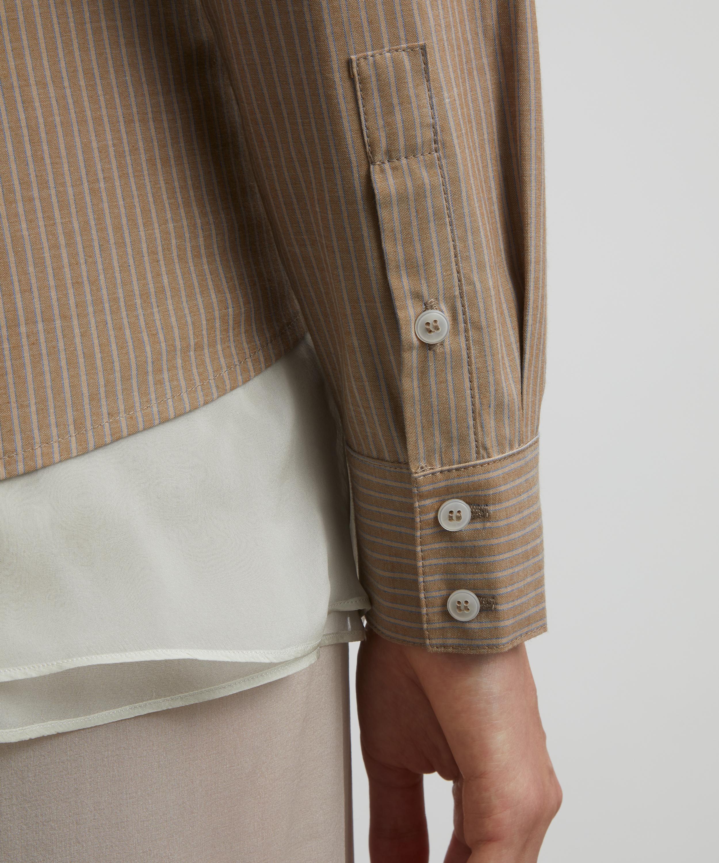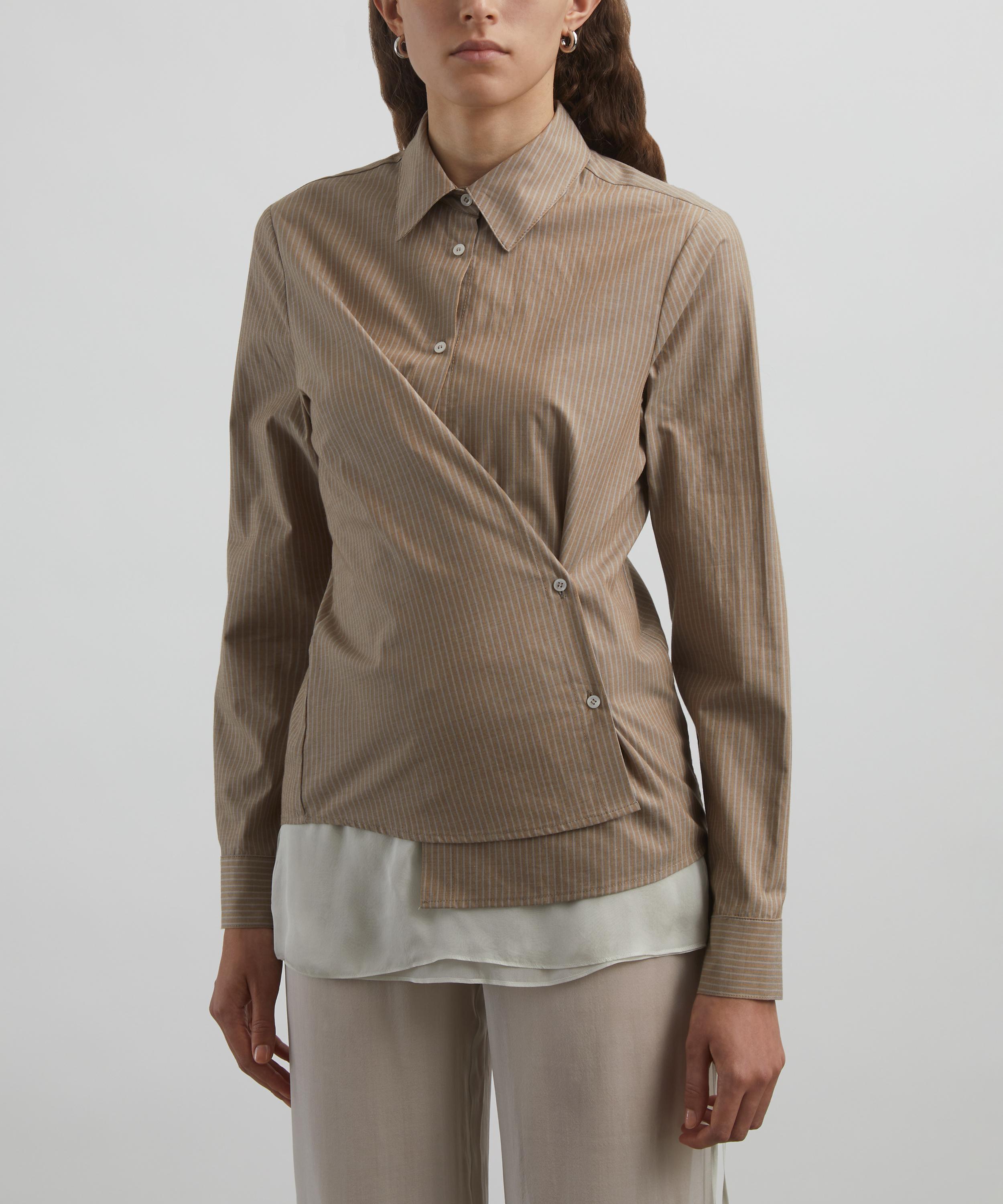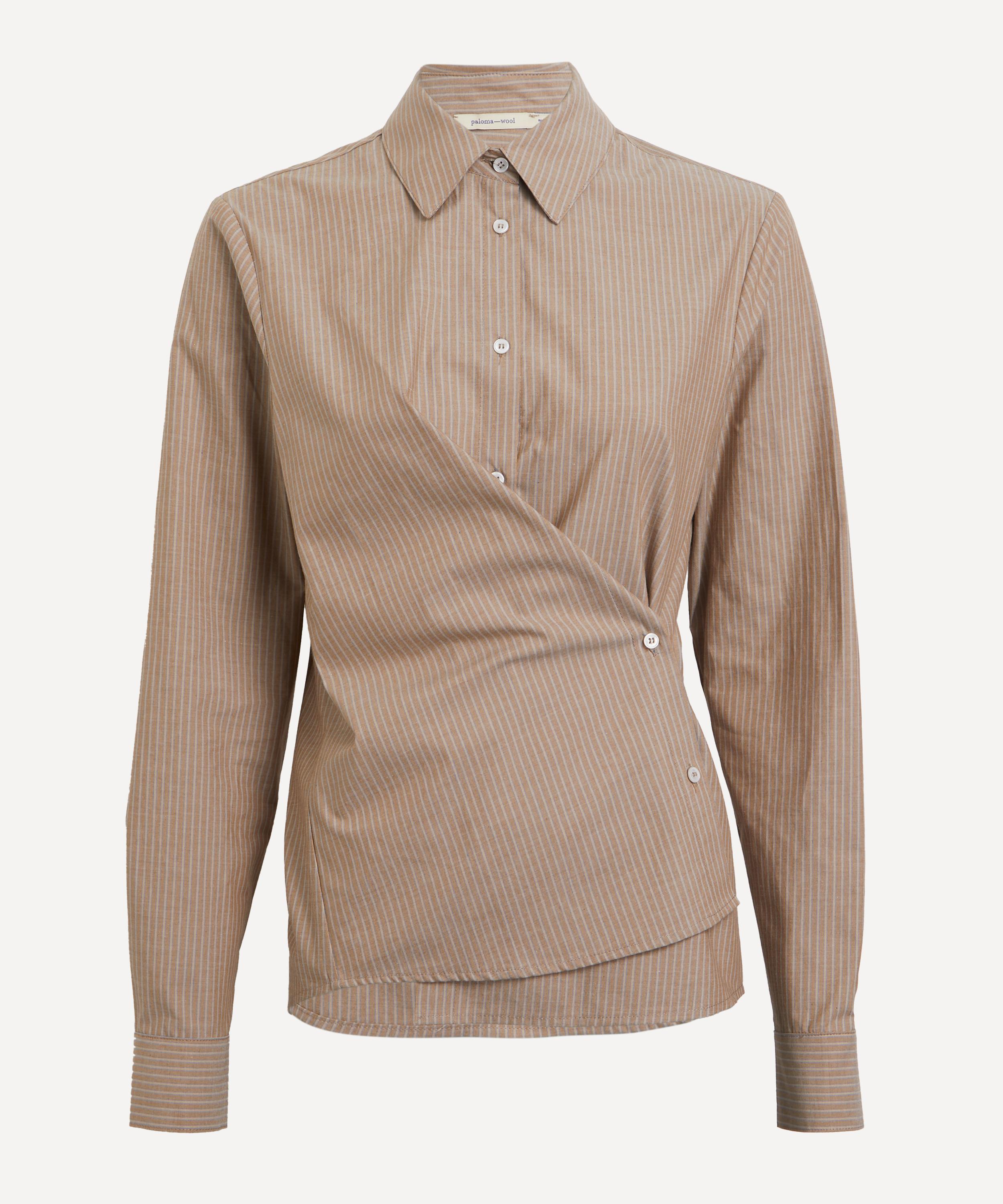Crafted in Portugal from a striped cotton fabric for a sculptural fit when buttoned to the side, or a classic silhouette when butted to the front, this effortlessly versatile shirt adds a contemporary edge to daily dressing.