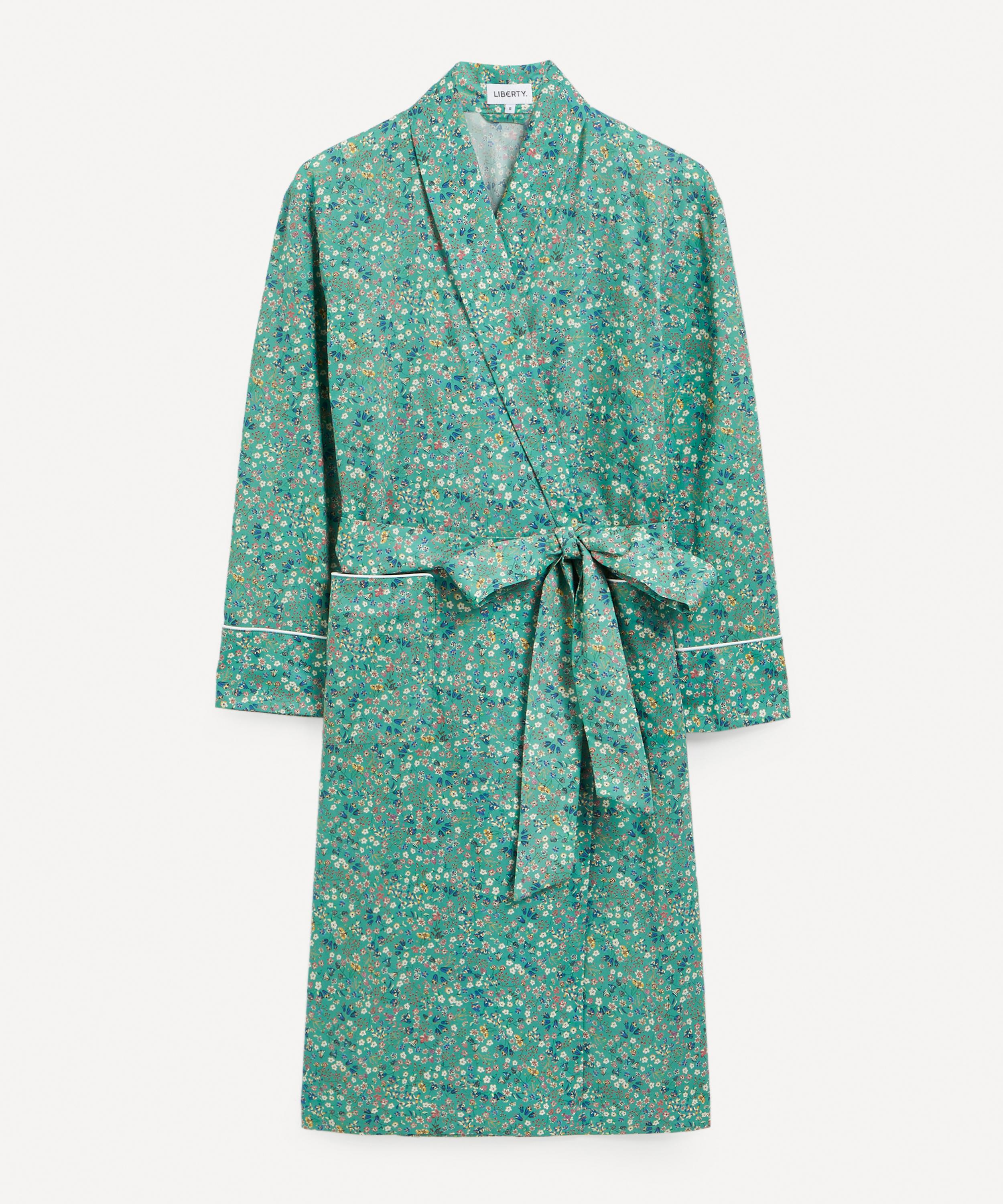 Tana is a true Liberty signature – a light, fluid revelation of a fabric that we’ve been perfecting for over a century, ultra-smooth to the touch and ideal for keeping cool at night. Finished with elegantly piped trims, two front patch pockets and a tie waist belt, this long women’s dressing gown robe spotlights our Donna Leigh print - inspired by a William Kilburn design dating from the late 1700s, it features hand-painted watercolour florals on a dark, rich ground.