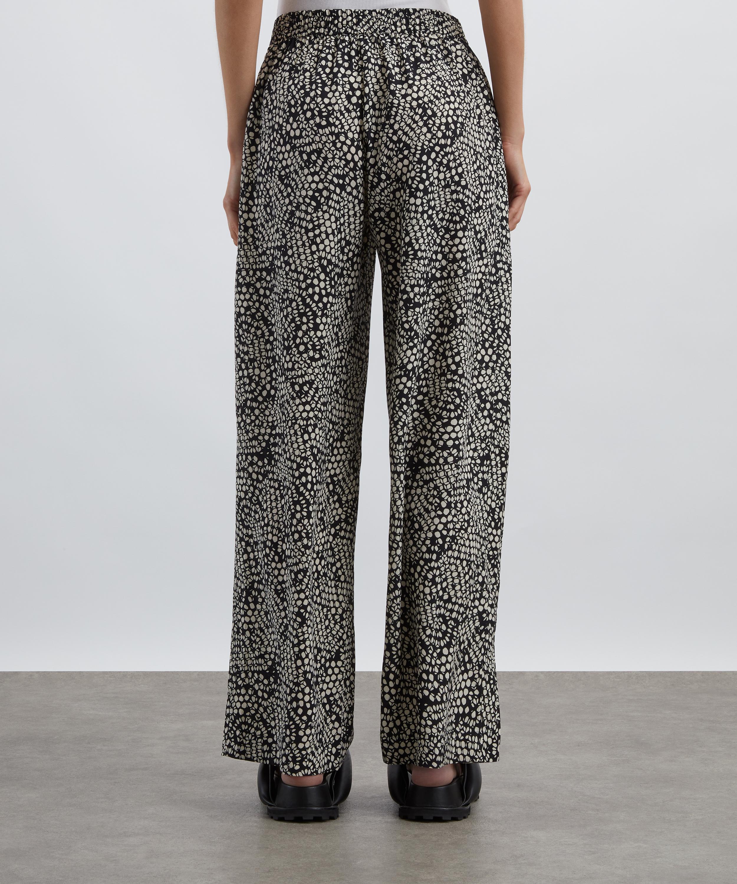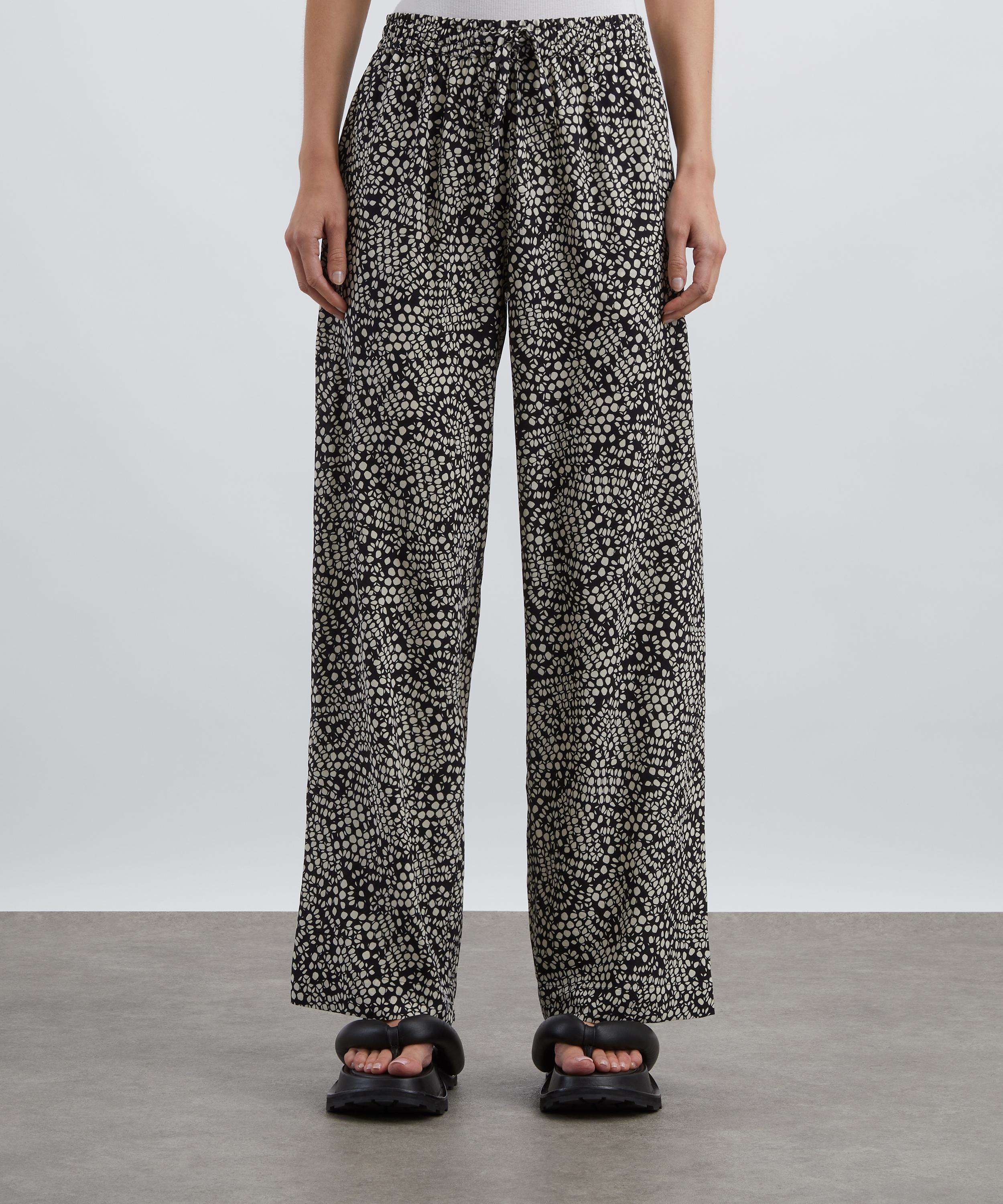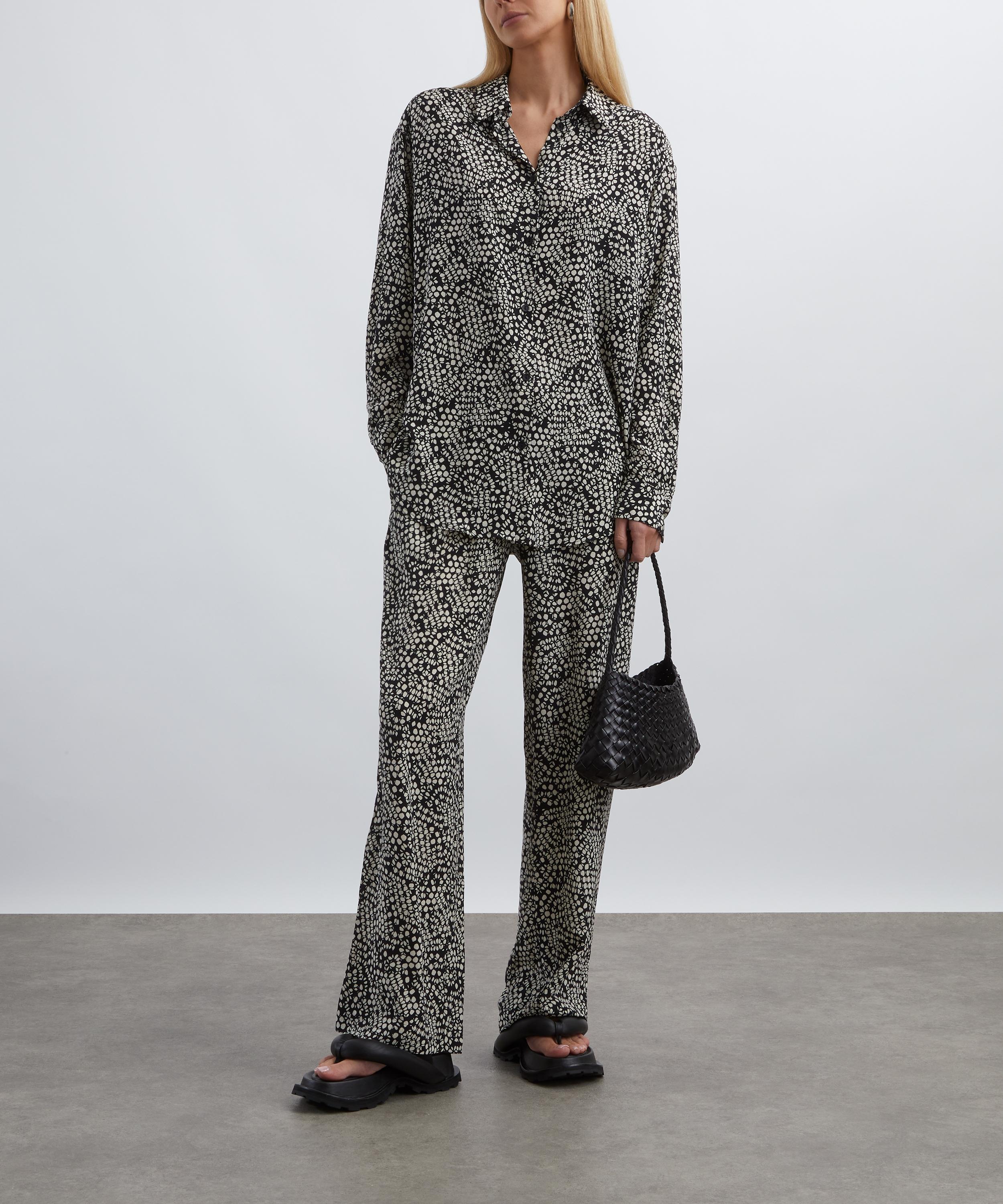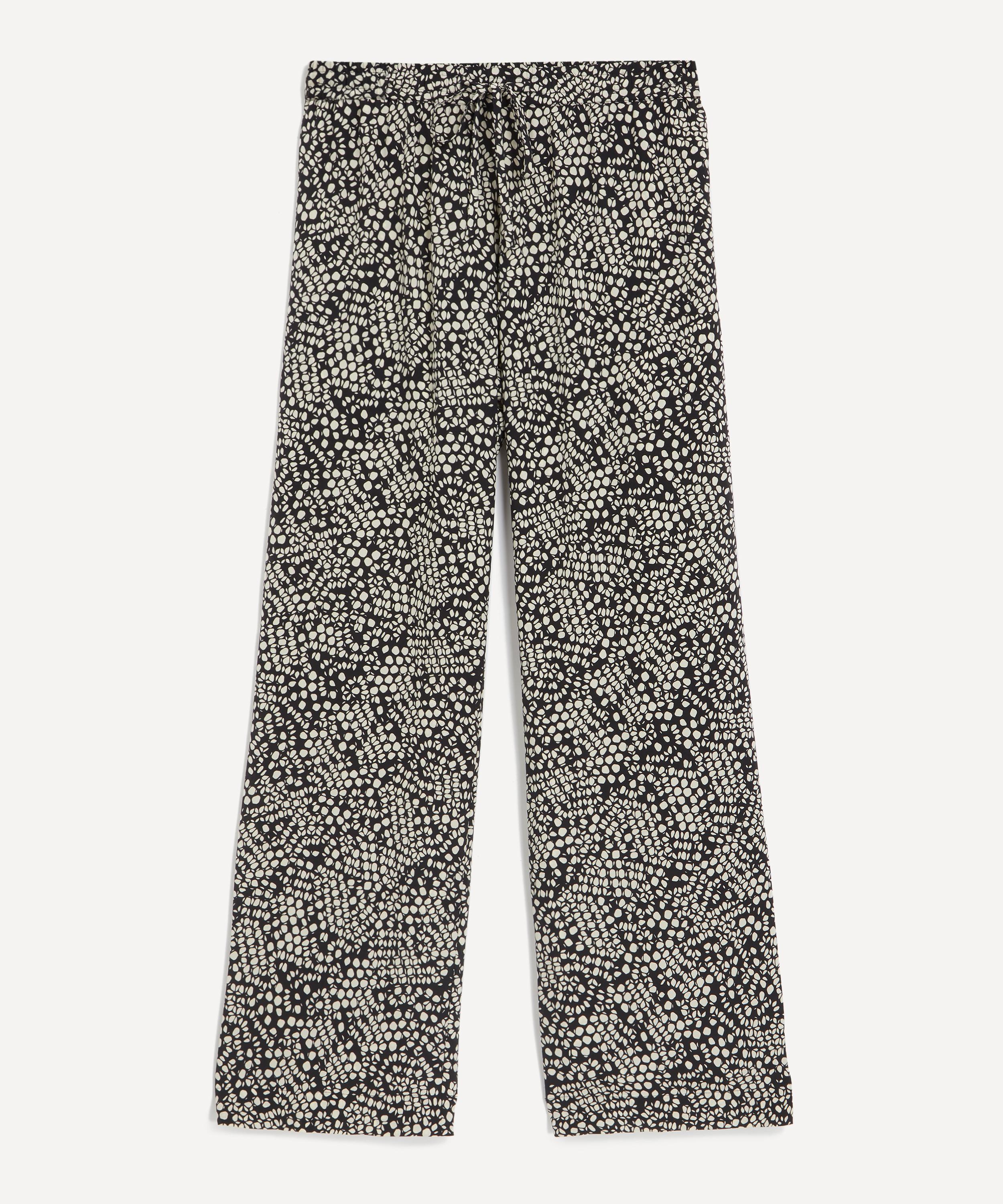 Crafted from lightweight silk crepe de chine adorned with a bold monochrome print, these relaxed, straight-leg trousers exude effortless refinement. Designed with an elasticated, drawstring waist and side pockets, they’re made to be paired with the matching Long Sleeve Silk Shirt for an elevated evening look.