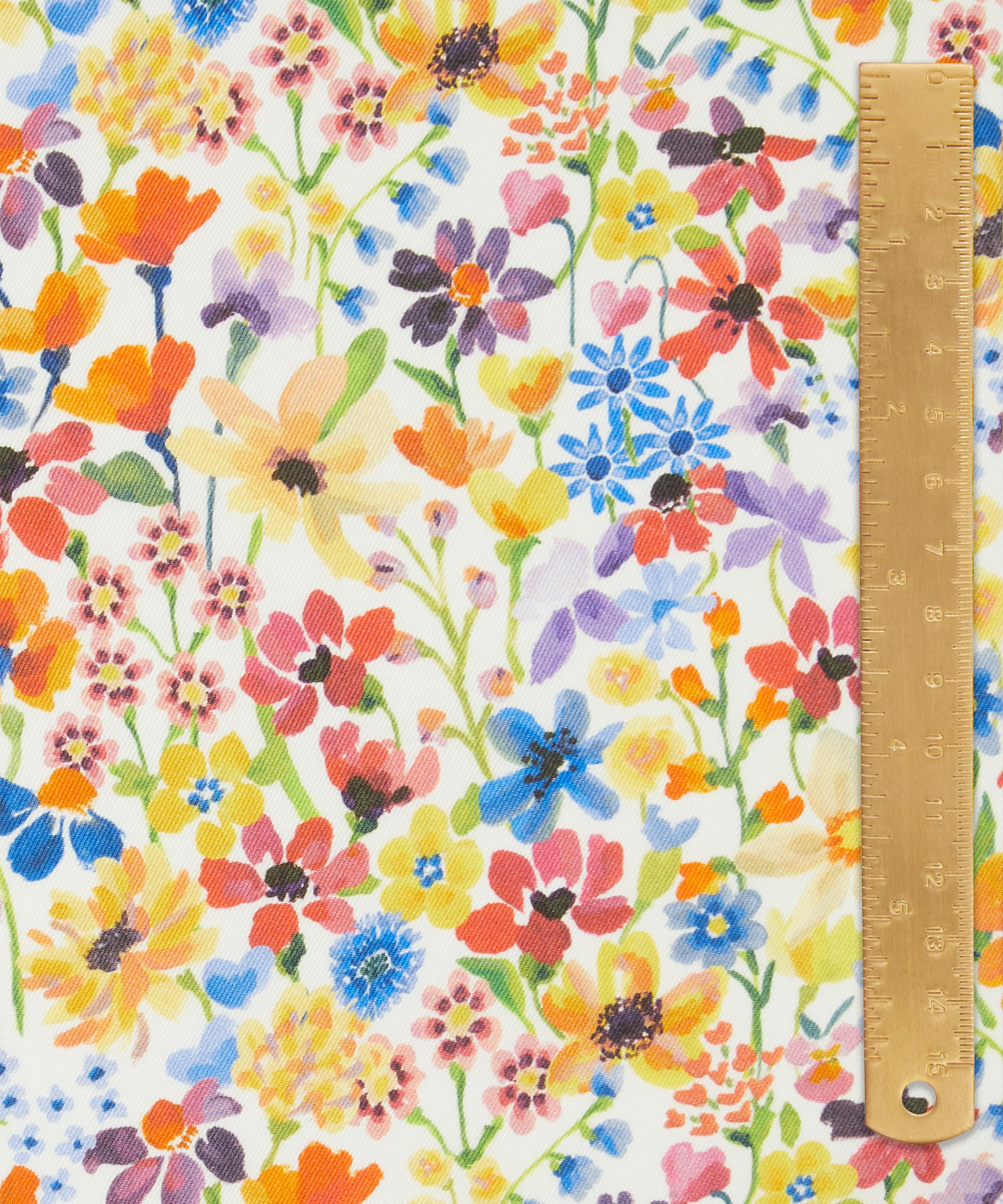 Painted in oils in the Liberty Fabrics studio in an Impressionistic style, Dreams of Summer is a magnificent display of high summer flowers, full of depth and texture. Blooming daisies, primroses, cornflowers, daffodils and forget-me-nots create a vibrant, multi-layered wild meadow.