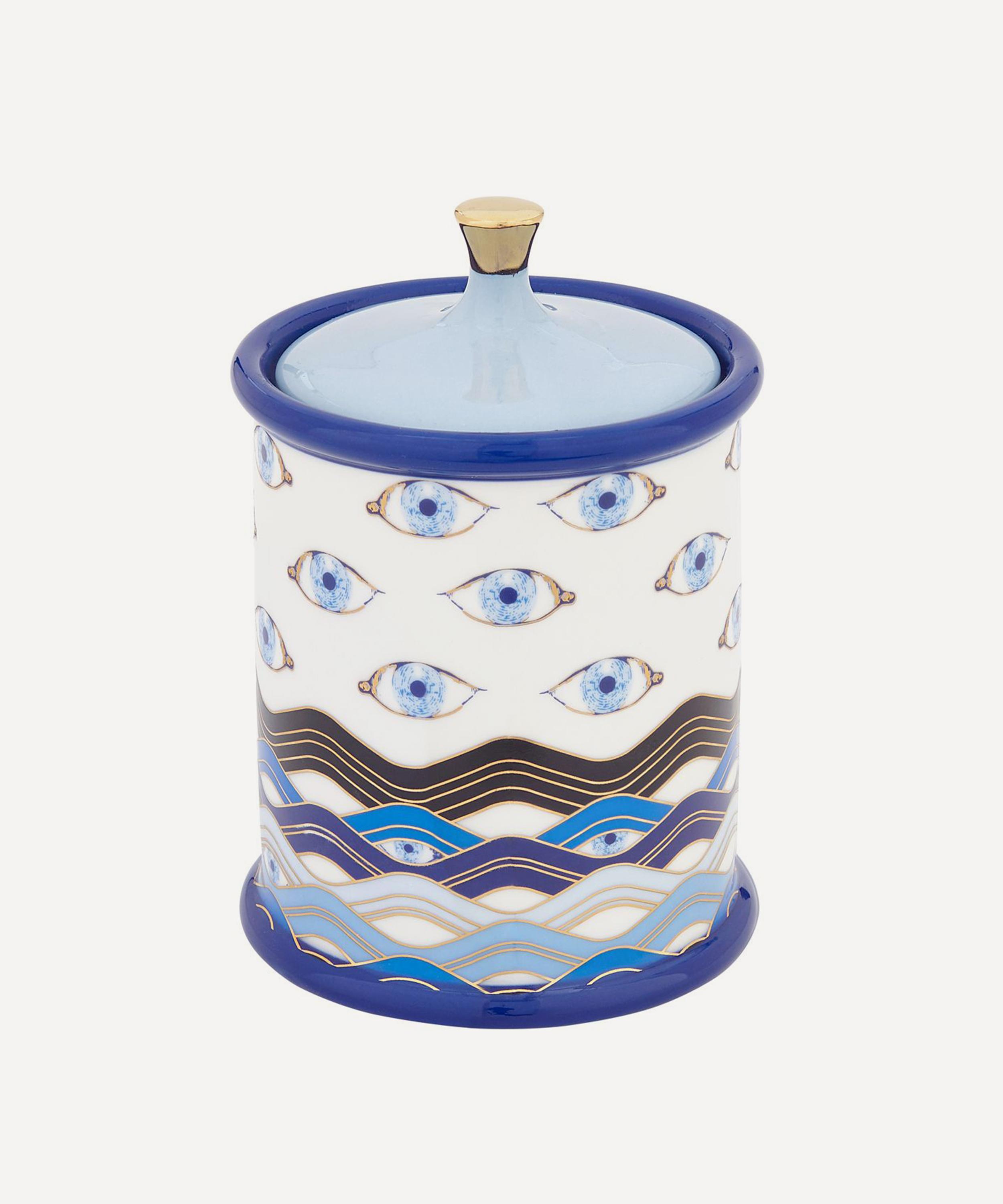 Presenting a mesmerising delft-toned dreamscape, this surreal candle features notes of jasmine, cardamom, fresh basil poured into a glossy porcelain votive finished with luxe gold accents. This head-turner makes a perfect hostess gift, or style on a bedside table for a wonderfully aromatic and delightfully artful accent to elevate interiors.