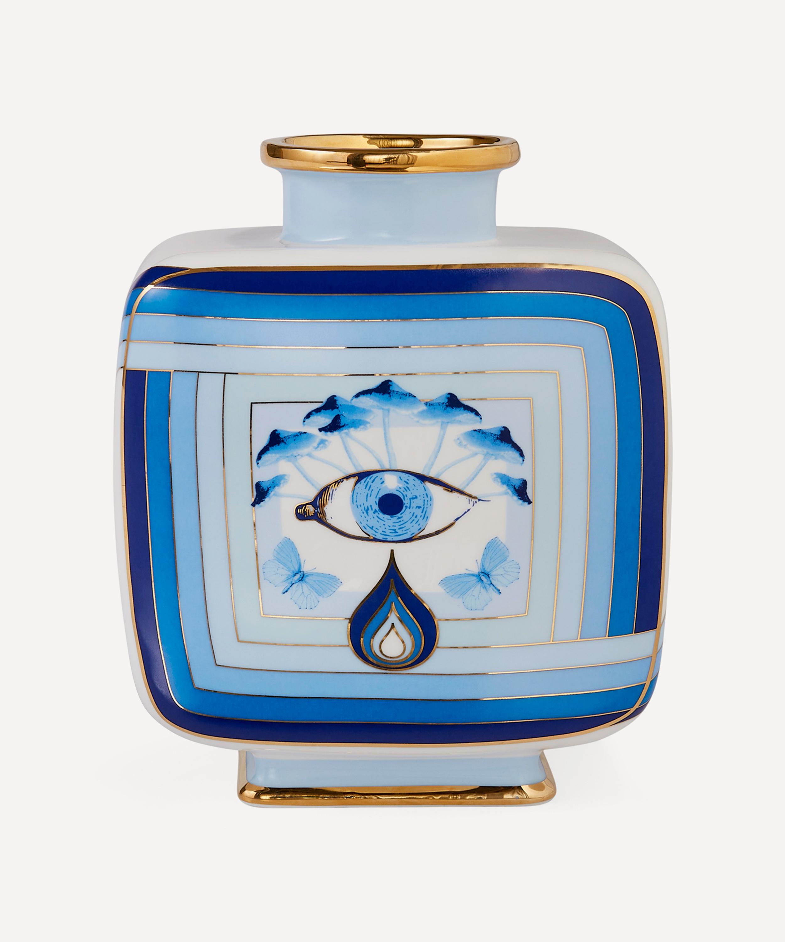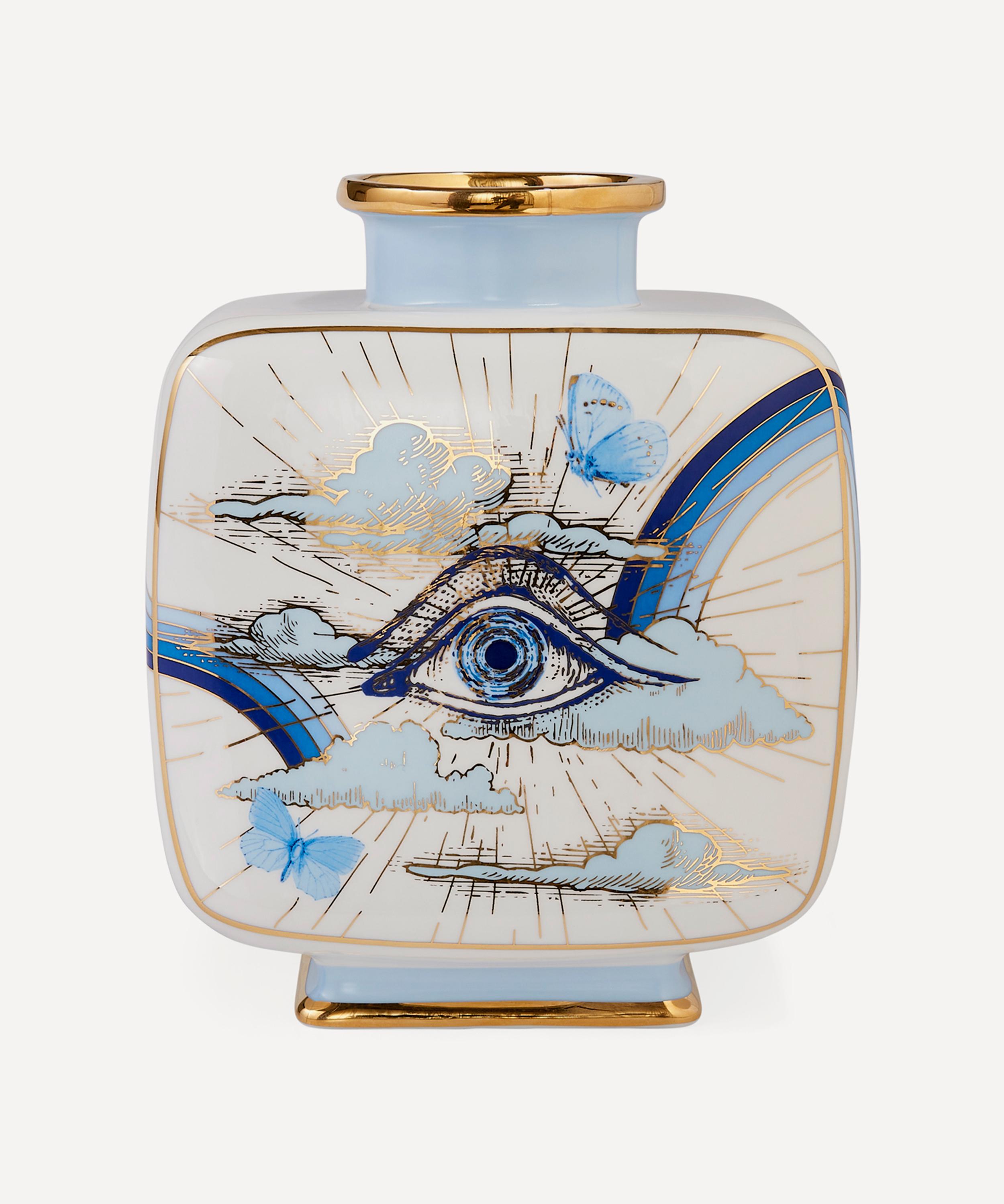 Presenting a mesmerising delft-toned dreamscape, this surreal vase is crafted from glossy porcelain and finished with luxe gold accents. This head-turner makes a perfect hostess gift, or fill with fresh blooms for a statement focal point to elevate somewhat ordinary interiors.
