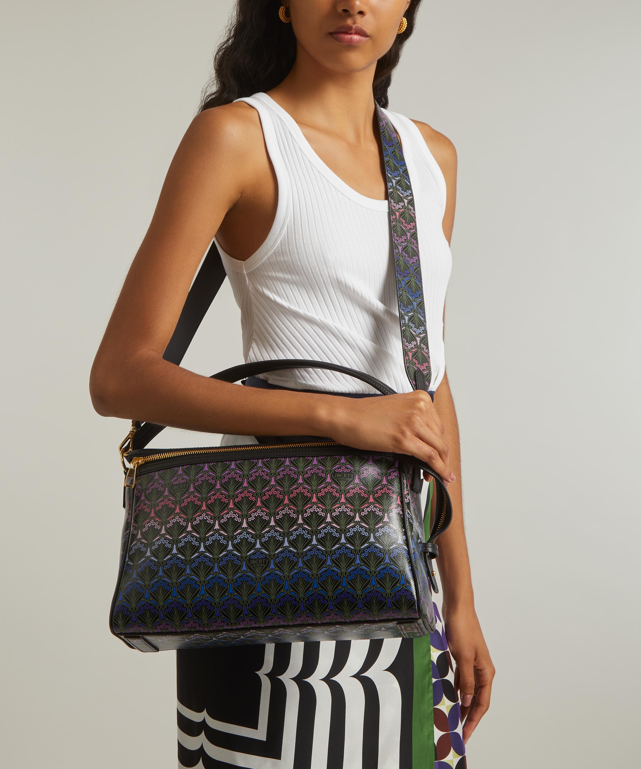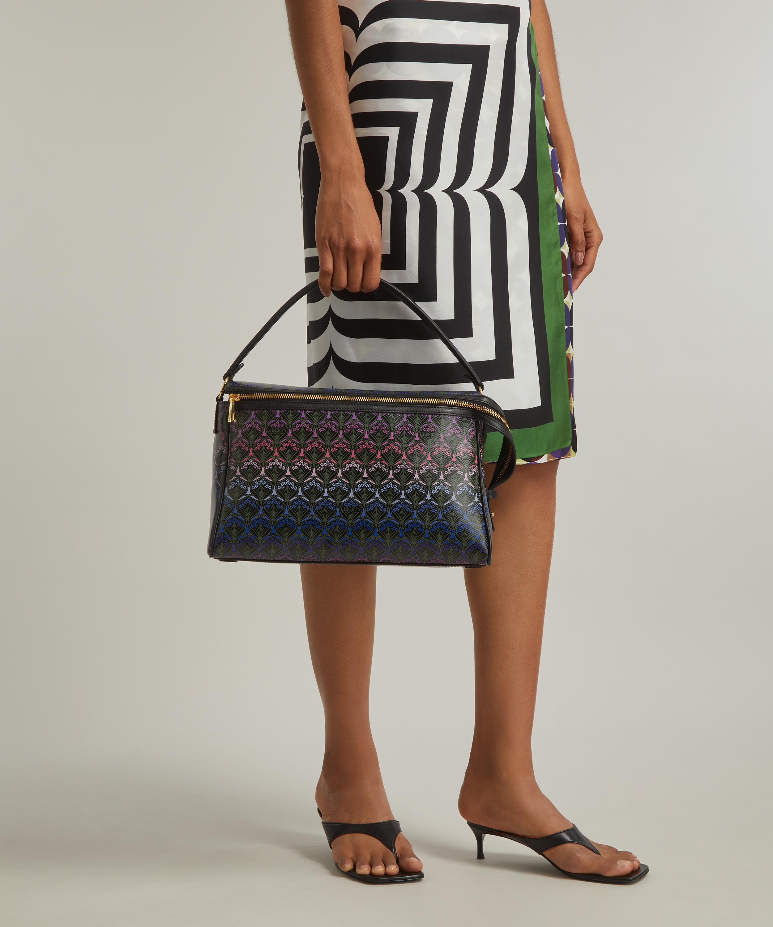 The Valise top handle bag is constructed in our signature screen-printed coated canvas – made to fit a 13” laptop or A4 notebook, with a top zip closing, closable slip pockets and a bold removable strap for heightened security and wearability. Named after the 17th century French word still in use today for a small travelling bag or suitcase, this zipped handbag is part of our Iphis family – the quintessential luxury accessory, designed to endure season after season. It displays Dusk’s glowing, multi-layered colourways with extraordinary impact. Wear it on the shoulder or carry it in one hand for an upscale, contemporary alternative to your usual work tote.