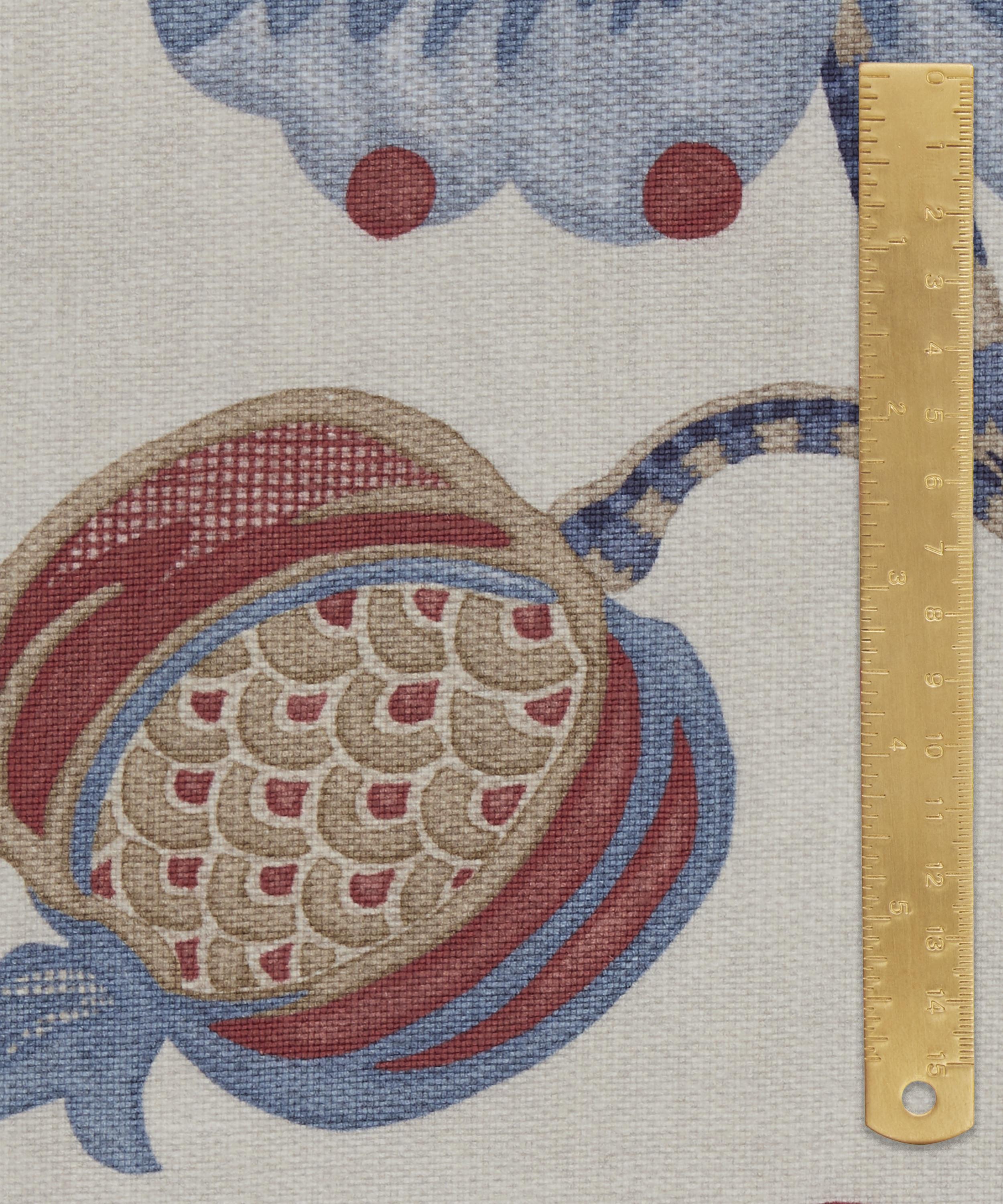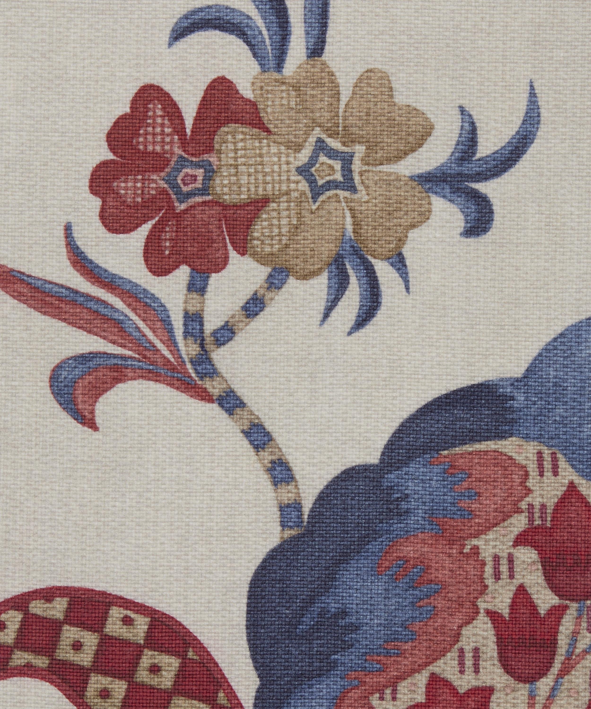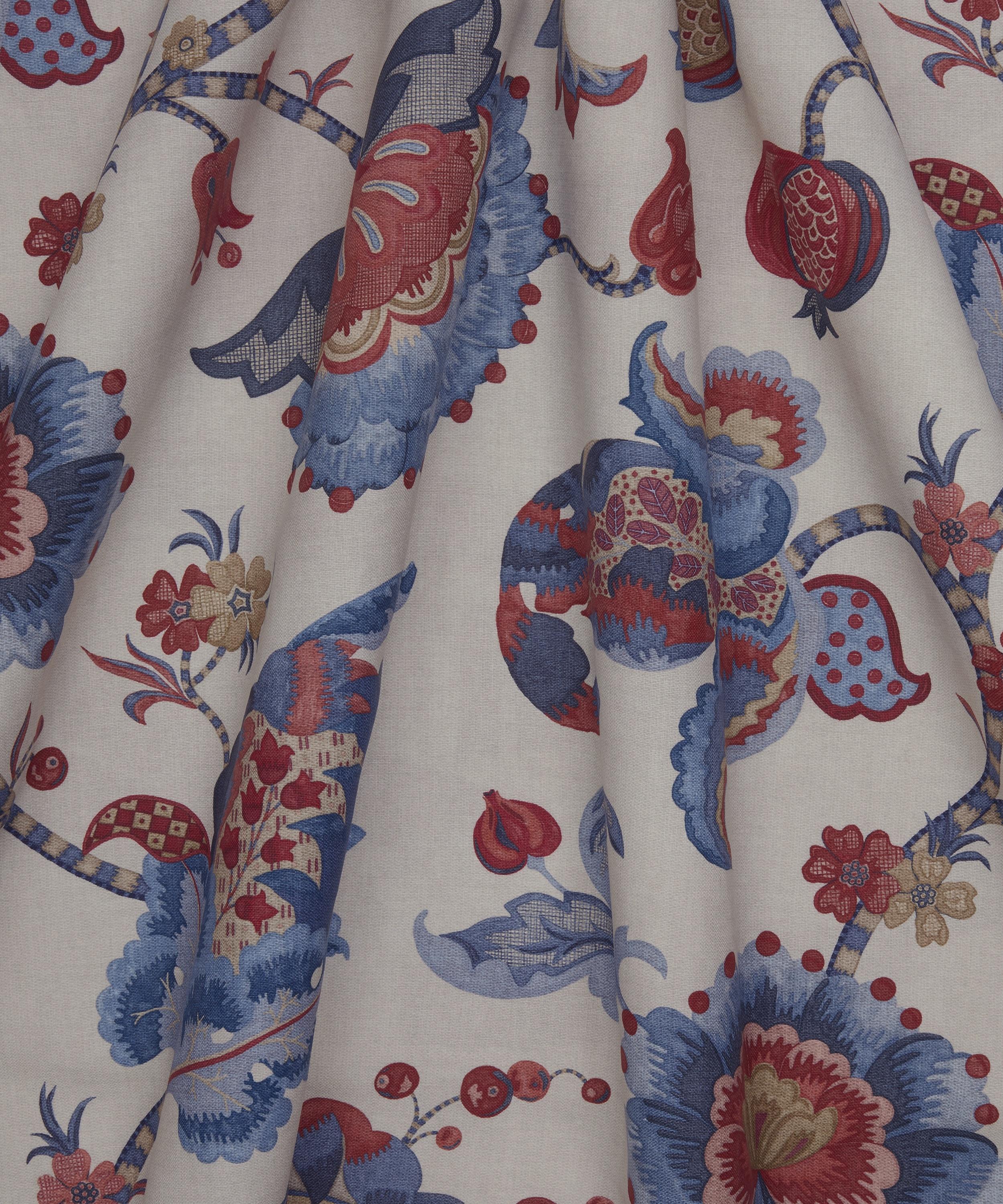 Drawing inspiration from a collection of Jacobean-style, hand-painted artworks discovered in the Liberty archive, this striking ornamental design showcases the grandeur of early 17th century textiles. Oversized flowers enveloped by lush foliage are depicted in refreshing hues and arranged in a trailing Tree of Life-style pattern, highlighting the richness of flow and form. Expertly printed in Italy onto a linen base with a heavy drape and soft tumbled finish, Eden Orchard is suitable for upholstery, drapery, cushions, and accessories.