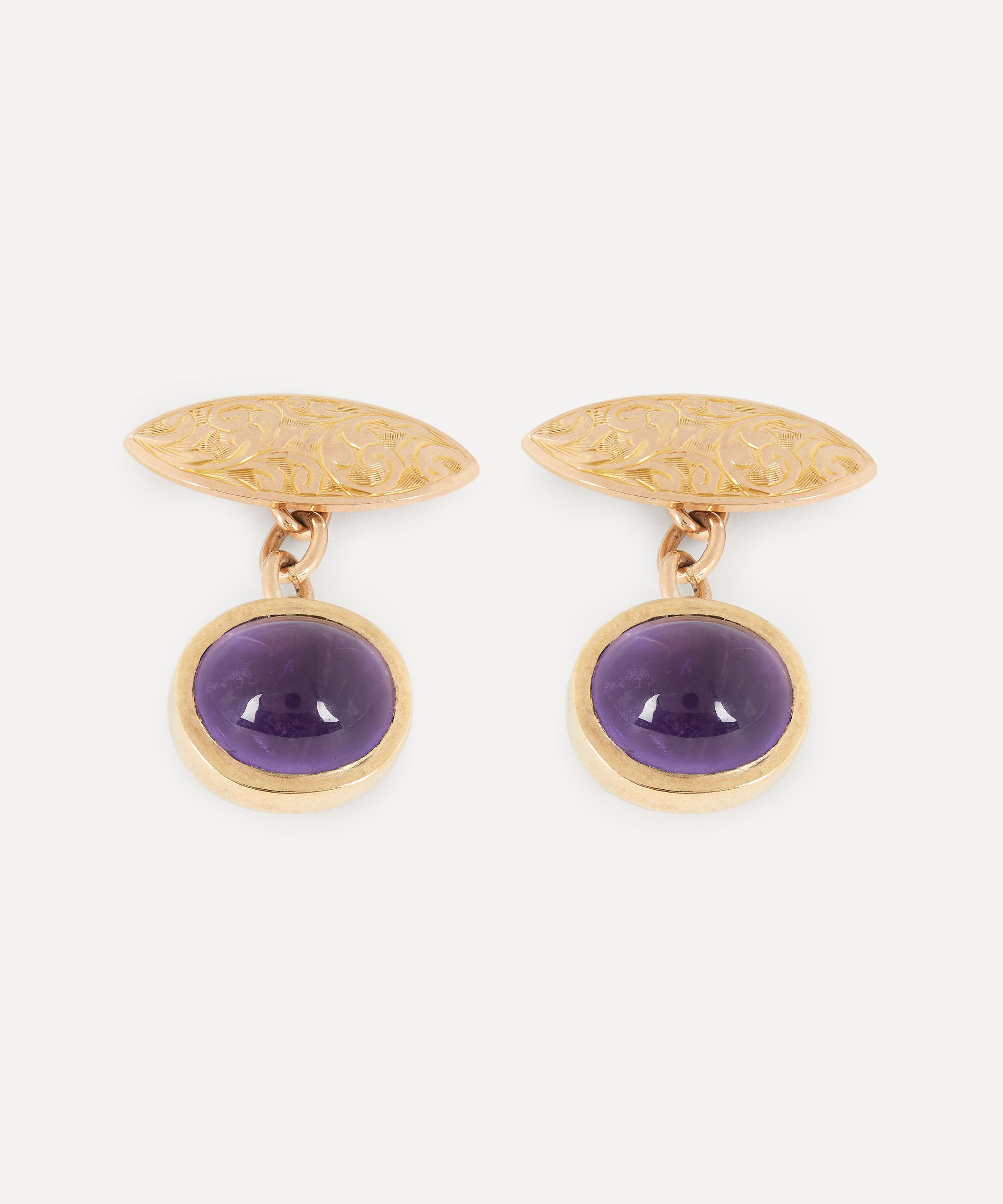 These Edwardian 9ct gold and amethyst cufflinks are a highly coveted pair hand-sourced by the accessories experts at Designer Vintage.