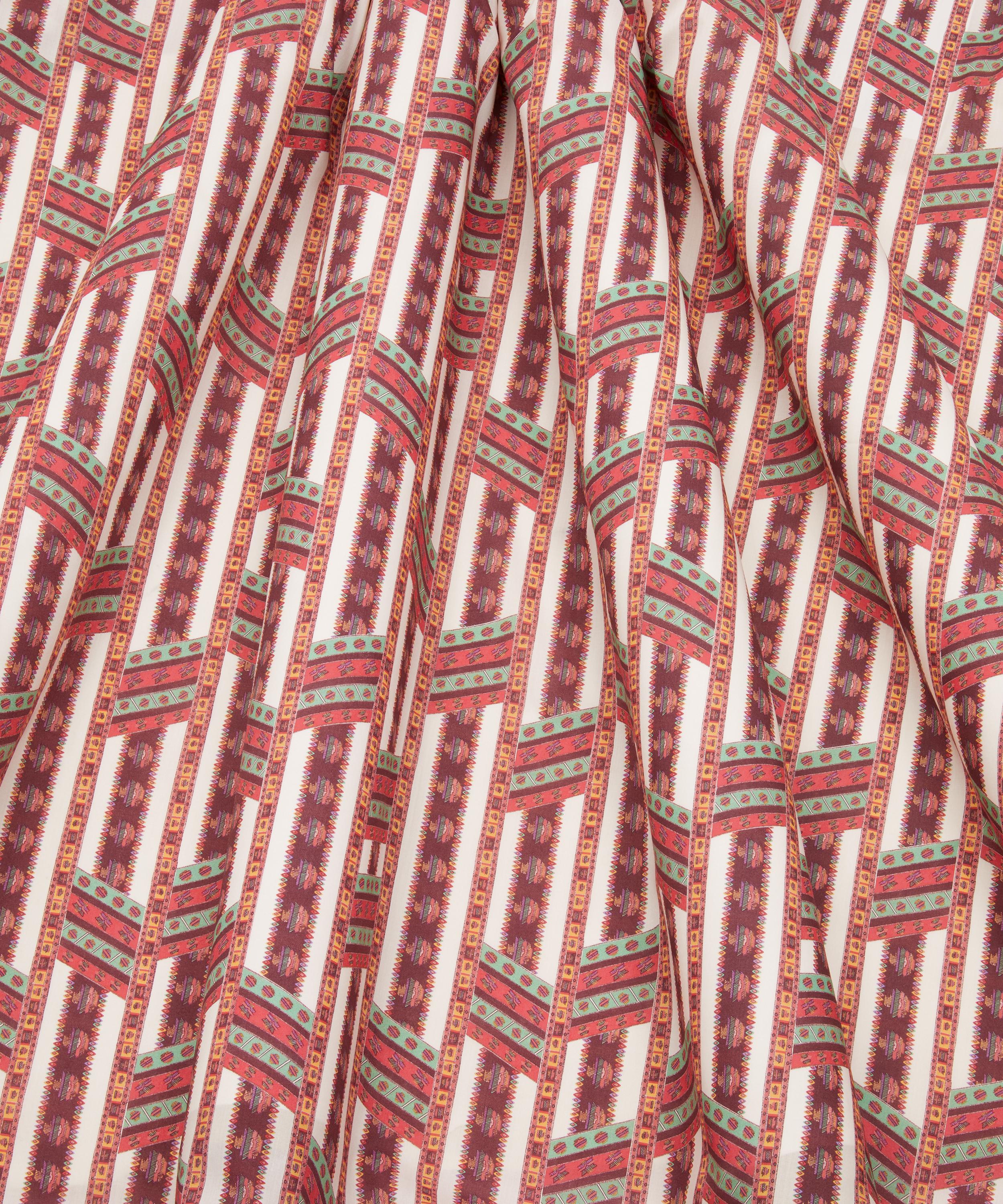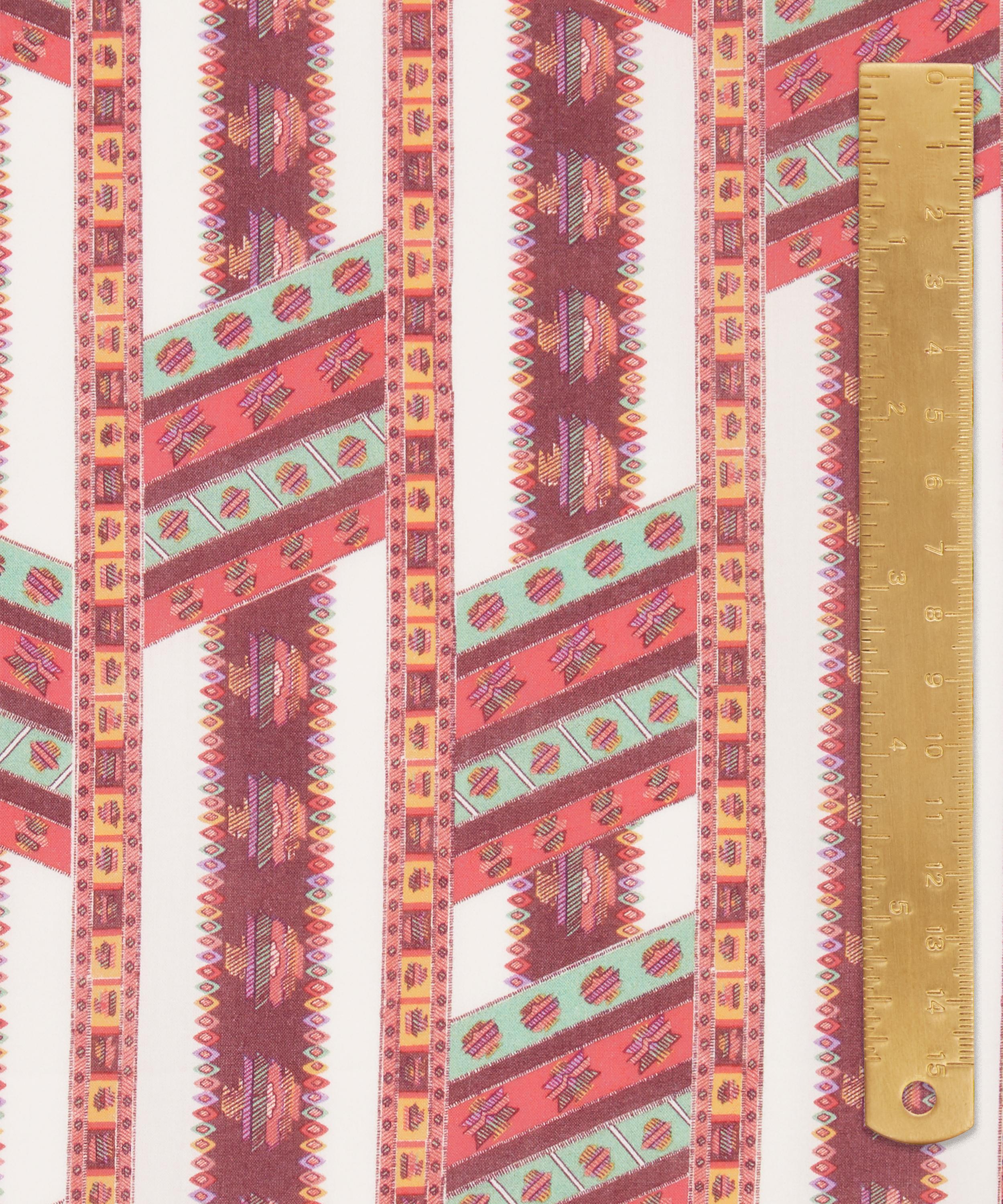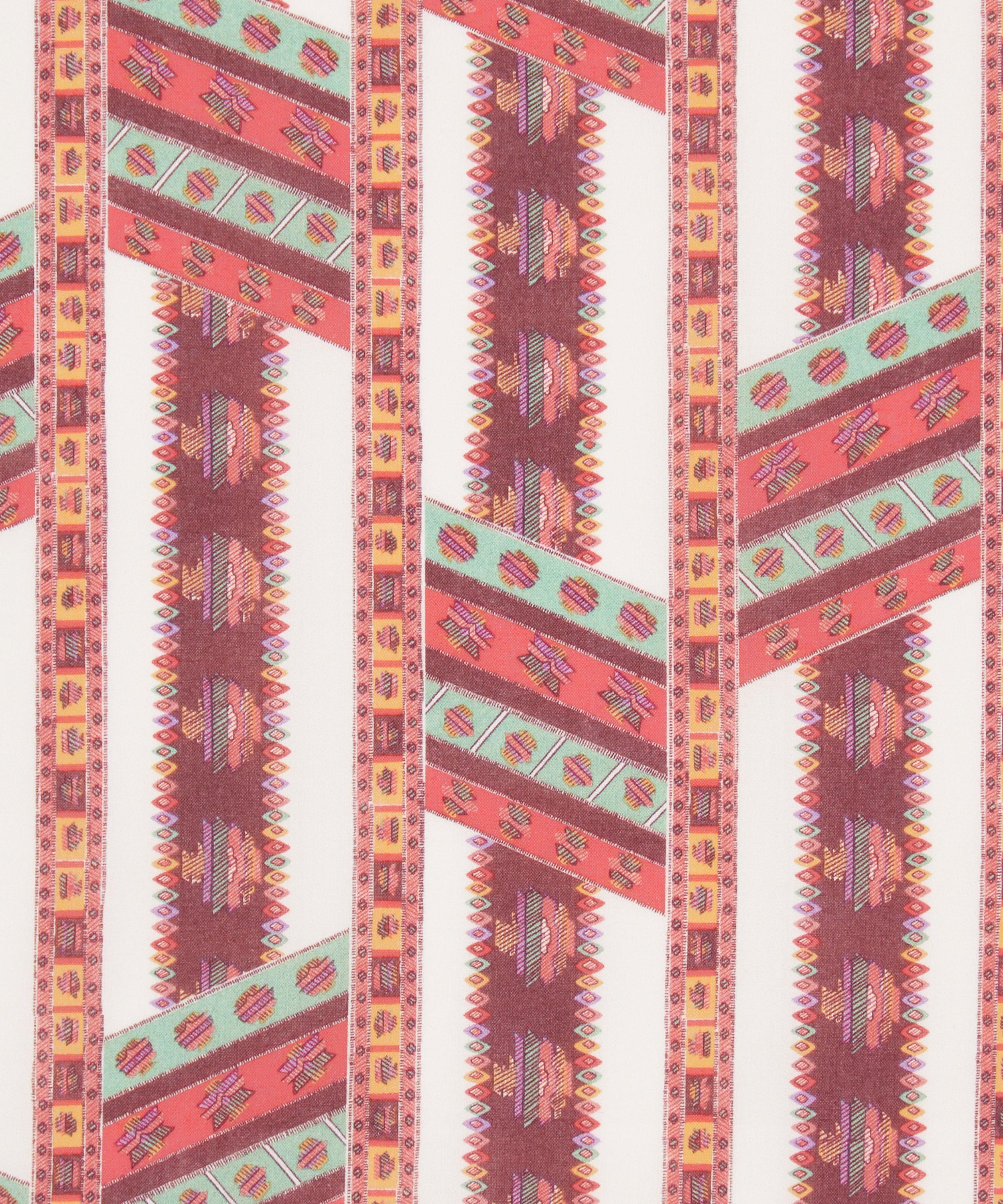 Inspired by an archive design originally printed in 1977, Eesaa is a refreshingly bohemian paisley, piecing together a variety of processes that pay tribute to the brand’s legacy. Intersecting stripes evoke the structure of woven ribbons, while traditional paisley motifs hark back to the exquisite block-printed Kashmir shawls of the Liberty emporium. This print is part of the Craftsmanship narrative of this collection, exploring the creative process from within the Liberty archive, from print impressions and embroidered studies, to ceramics, jewellery, and furniture. Uncover the origins of the designers’ musings through artworks inspired by their sketchbooks and prototypes.