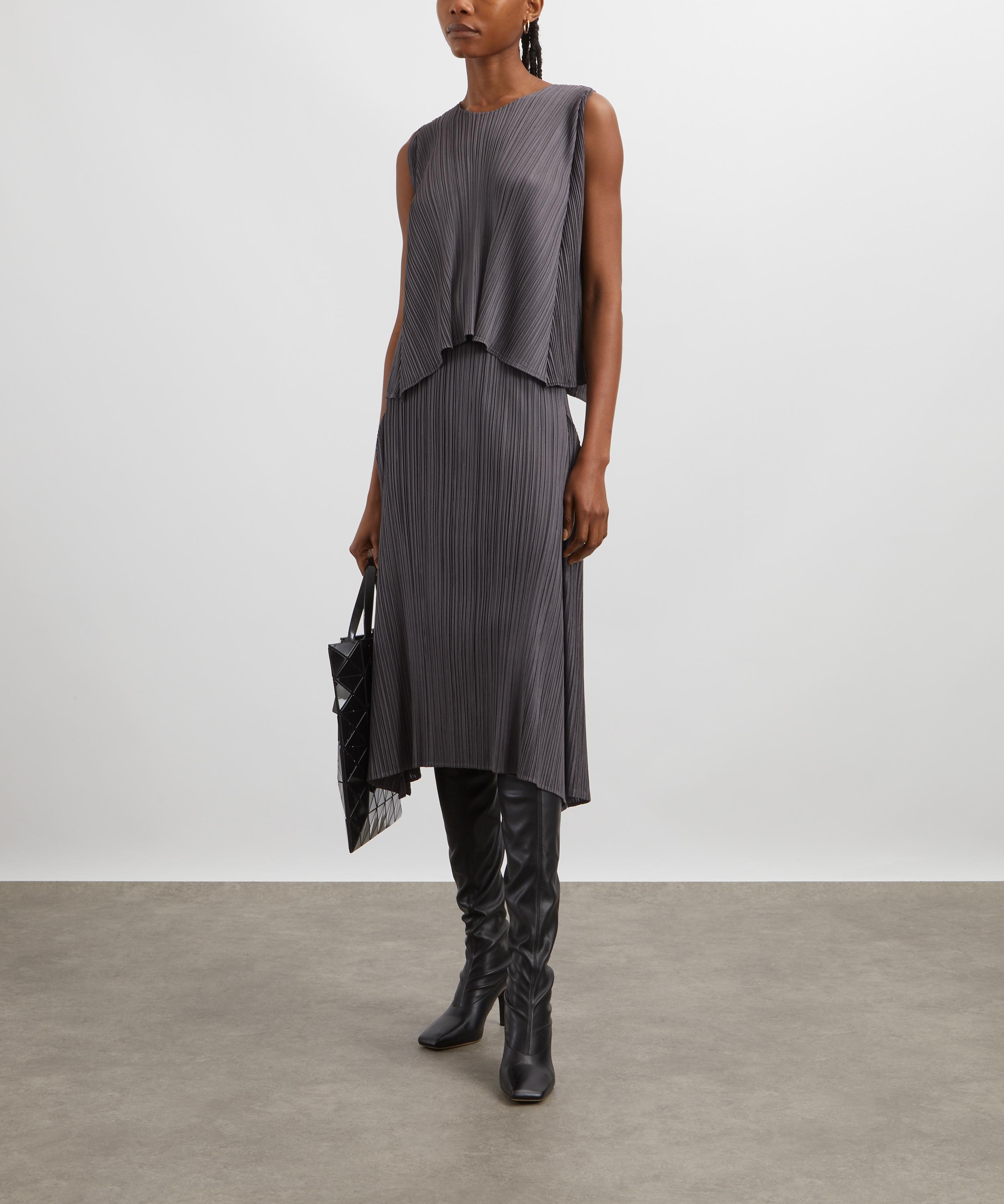 Japanese designer Issey Miyake founded the Miyake Design Studio in Tokyo in 1970. Miyake quickly became known for his groundbreaking pleating techniques; using heat to imbue fabric with a ‘memory’ that keeps pleats in place. Pleats Please launched in 1993 as a capsule collection of Miyake’s patented pleating and today incorporates sculptural dresses, jackets and separates.