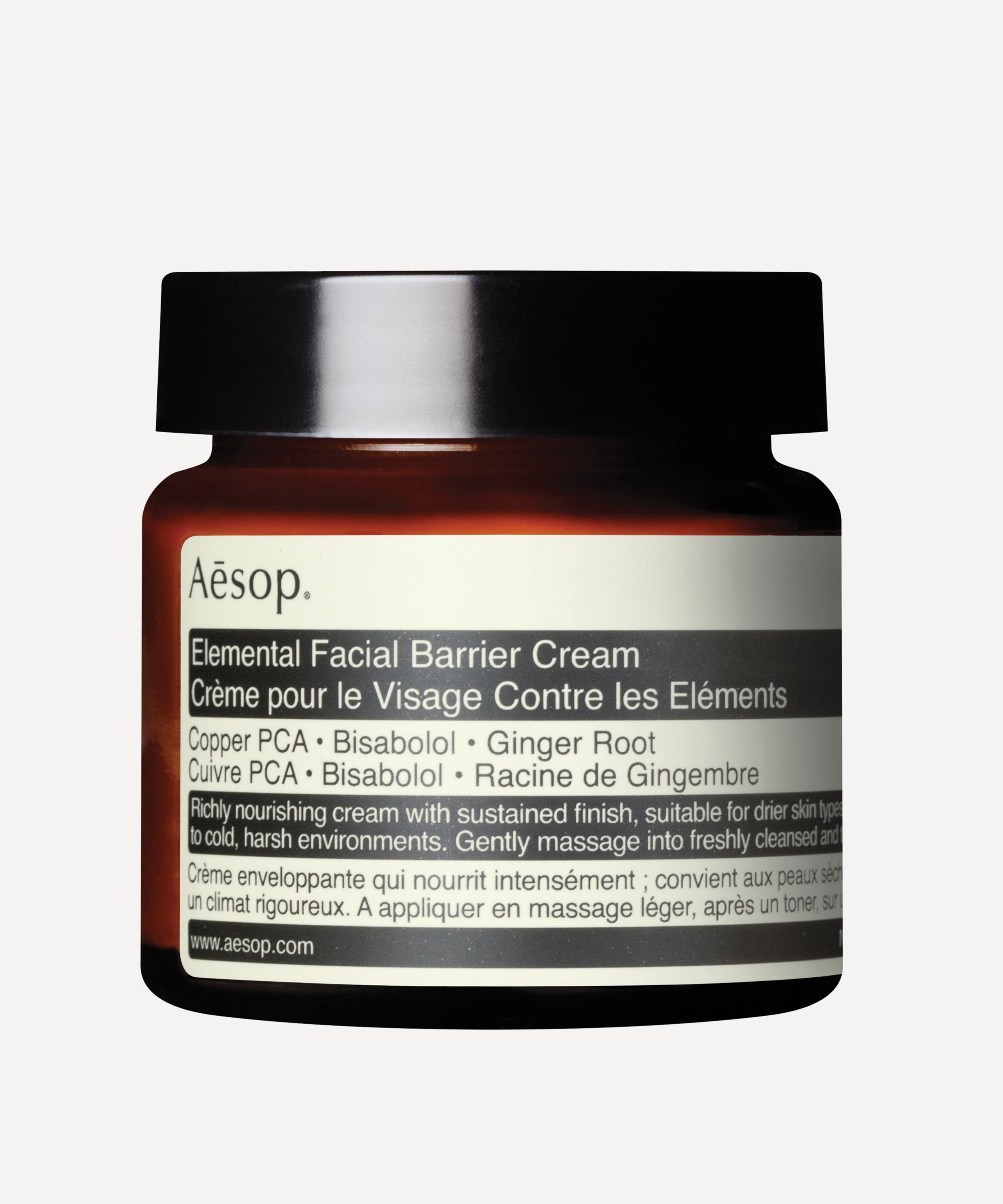 Aesop Elemental Facial Barrier Cream is a richly emollient facial moisturiser with a comfortingly warm, woody aroma.