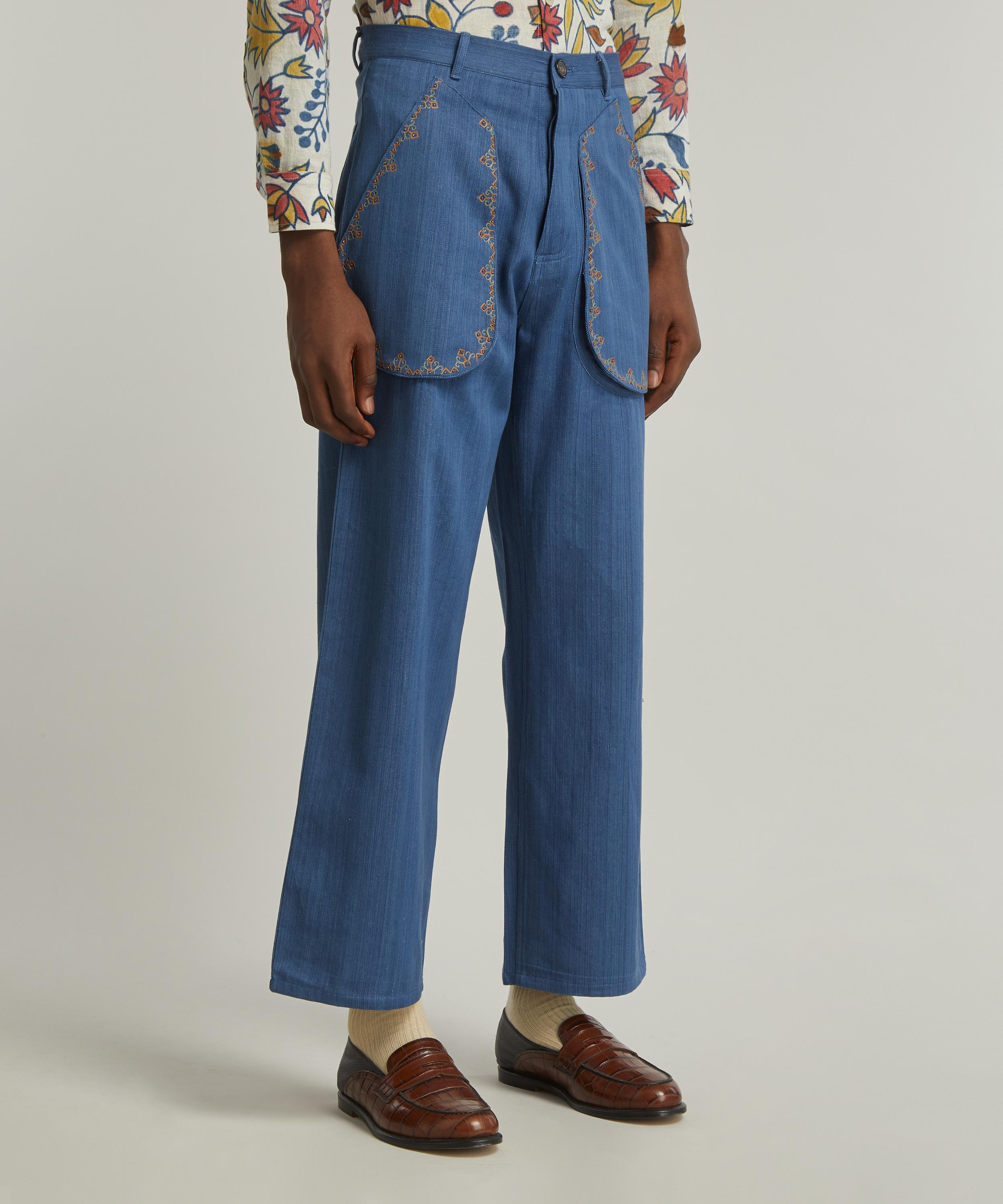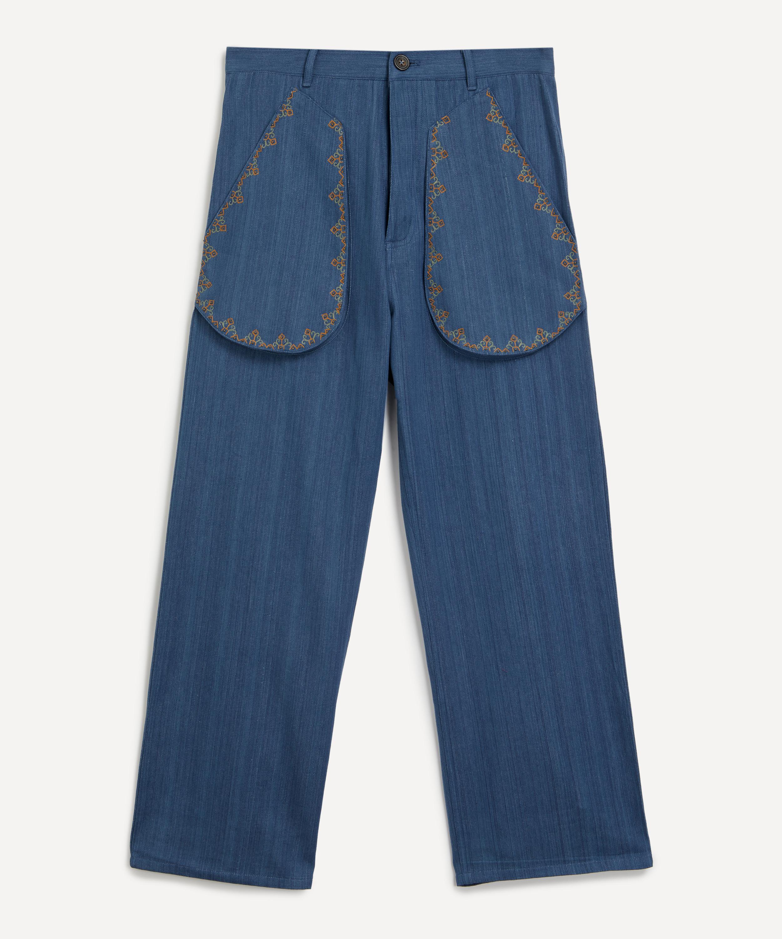 A celebration of craft and cultural heritage, Indian brand Kartik Research works closely with local artisans to create the Embroidered Cotton Cargo Trousers.