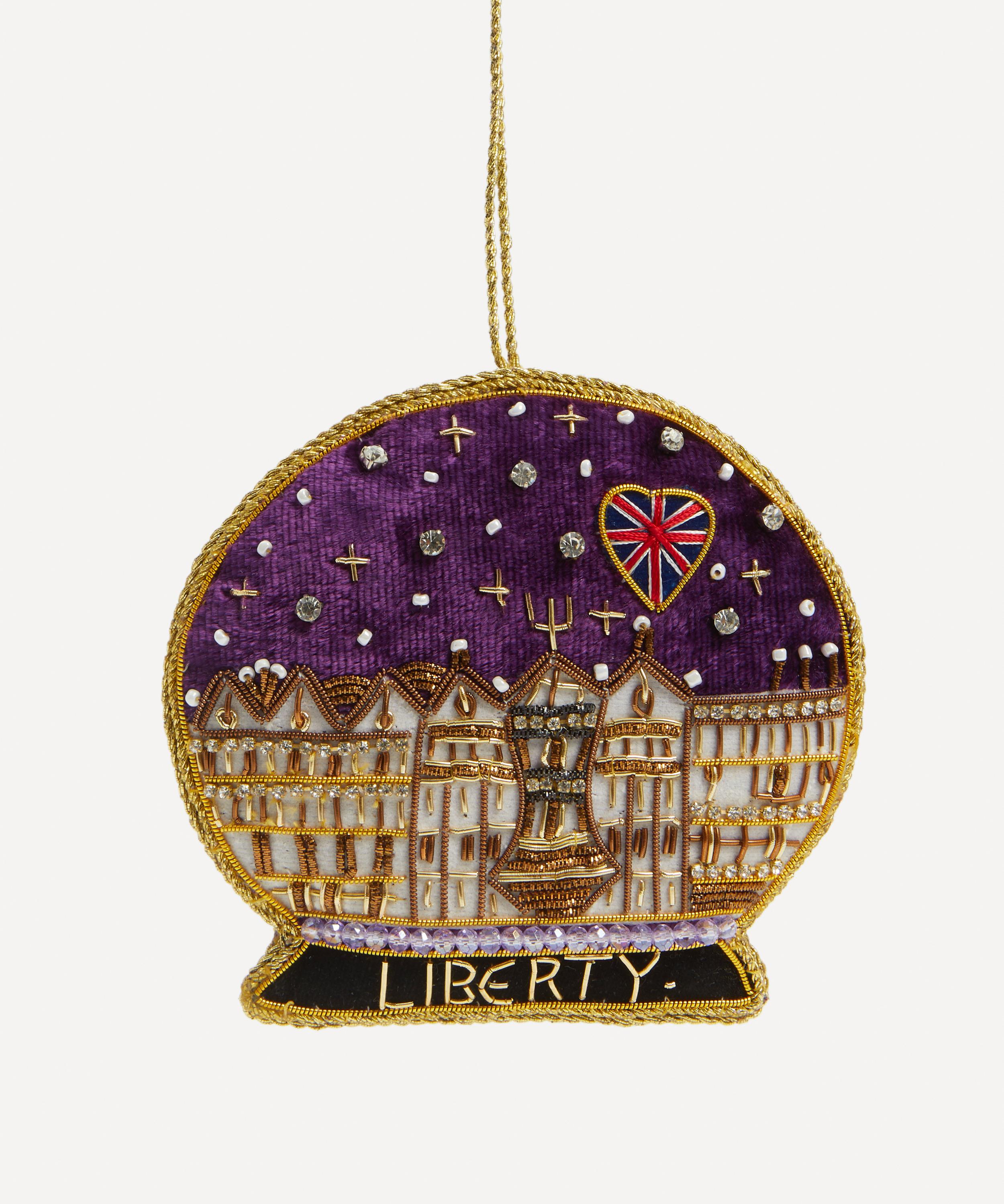 Bring a dash of Liberty styling to your festive decorations – designed in our signature shade of purple, this ornate snow globe is beautifully decked in glass beads, faux pearls, metal threads and purple velvet. The perfect addition to your tree, it is guaranteed to imbue your festive home décor with our iconic heritage.
