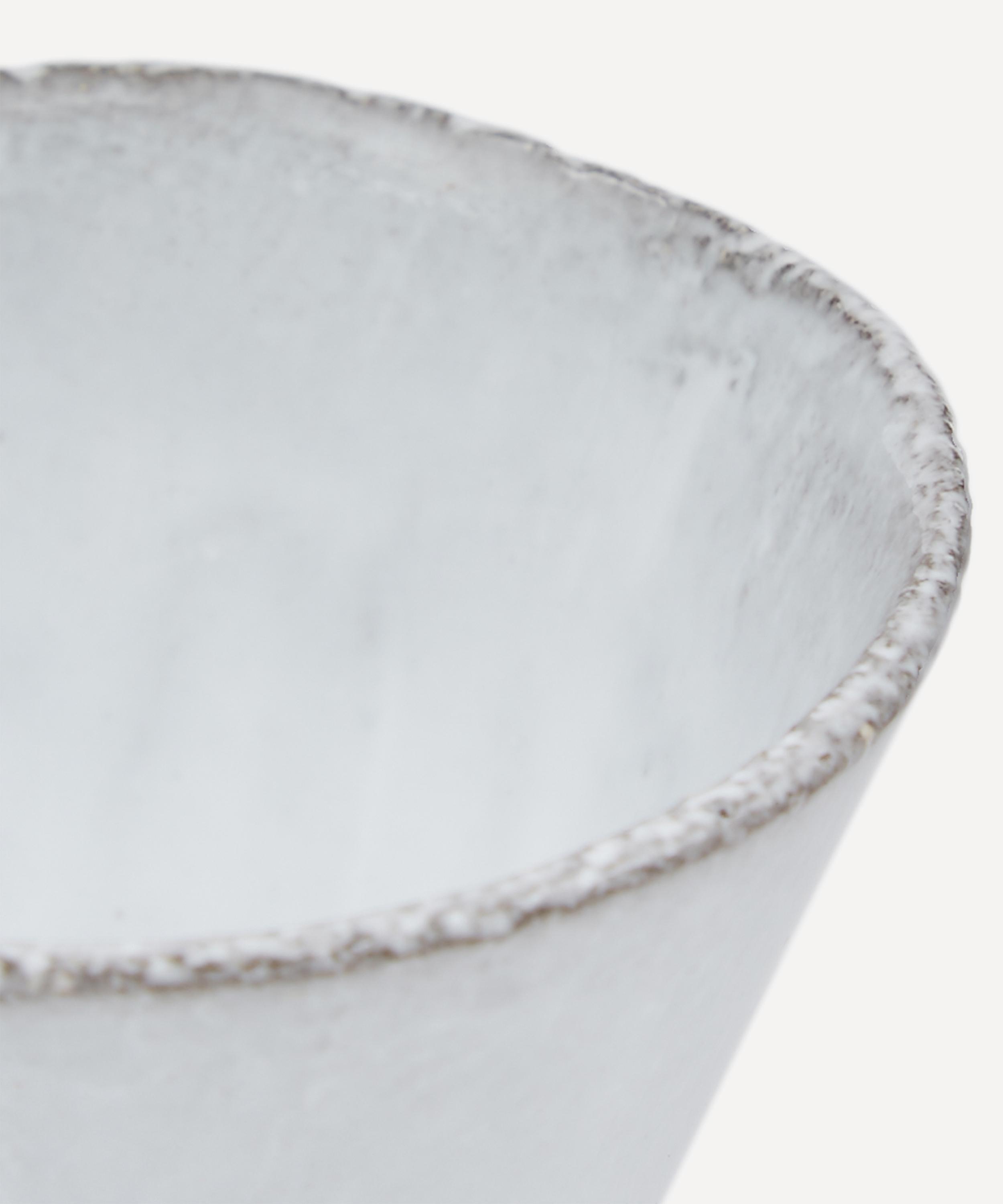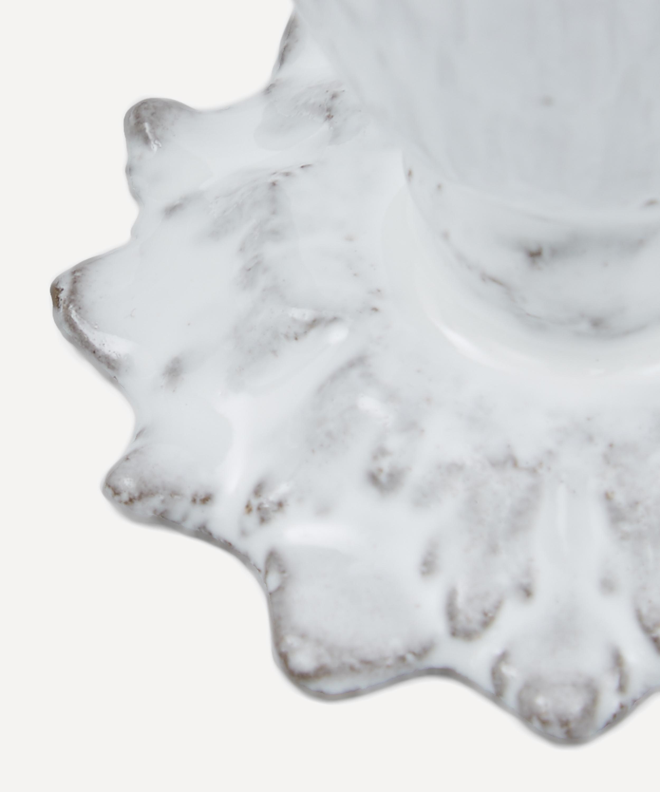 Votary of pre-industrial fabrication, Astier de Villatte is celebrated for being the one and only studio in Paris to hold and harbour the traditions of artisanal ceramic production. Restoring the ancestral systems of moulding and stamping, the egg cup is made using handcrafting techniques from the Middle Ages which involve moulding a handmade sheet of clay, double firing the ‘biscuit’ piece and glazing the product in white enamel – a lengthy process that requires a drying time of up to one month. Characterised by exposed clay accents and a patterned base, the egg cup is engraved with the brand’s signature crest - depicting an interlacing A & V - alongside the initials of one of the 40 master artisans who created it. Each handmade piece tells a beautiful story, it romances and imparts a sense of nostalgia into its owner. Arrange with other egg cups in the collection to breathe an air of authenticity into your breakfast setting.