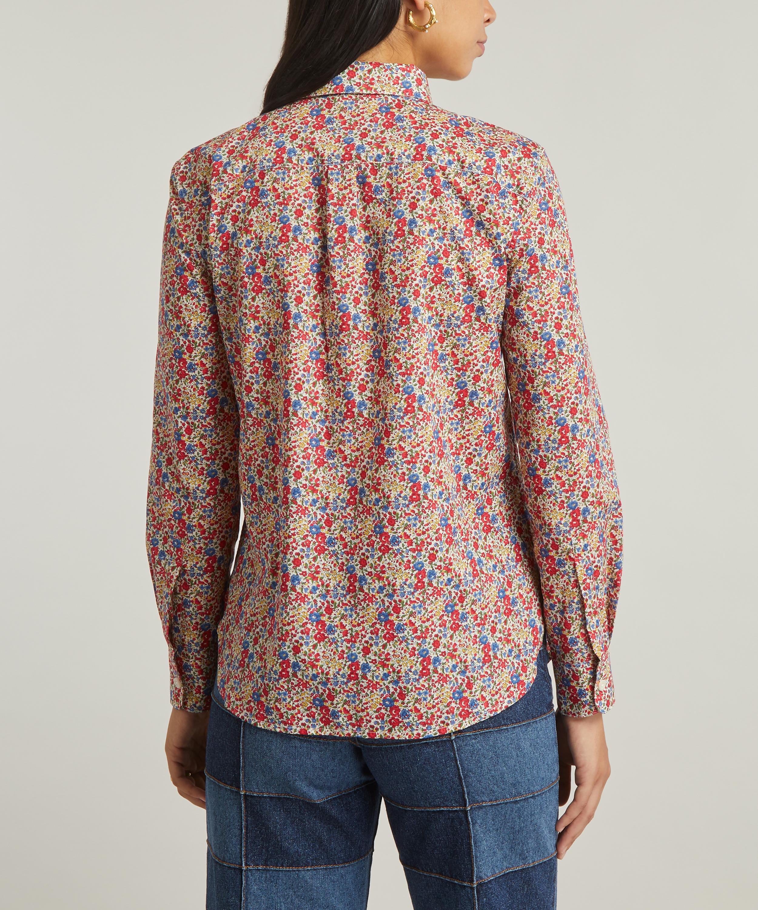 Modern and refined, our fitted shirt is constructed from Tana Lawn™ cotton which provides a colour-rich surface and smoothly soft hand-feel, perfect for wearing directly against the skin. Shaped with chest darts for a flattering fit, this shirt features a patch pocket at the chest and is adorned all-over in our Emma and Georgina print – inspired by Liberty Fabrics' large collection of Victorian pattern books, the Emma and Georgina fabric design is based on two tiny, dense floral prints. Emma was first produced on Tana in the 1970s; Georgina was launched in 2000.