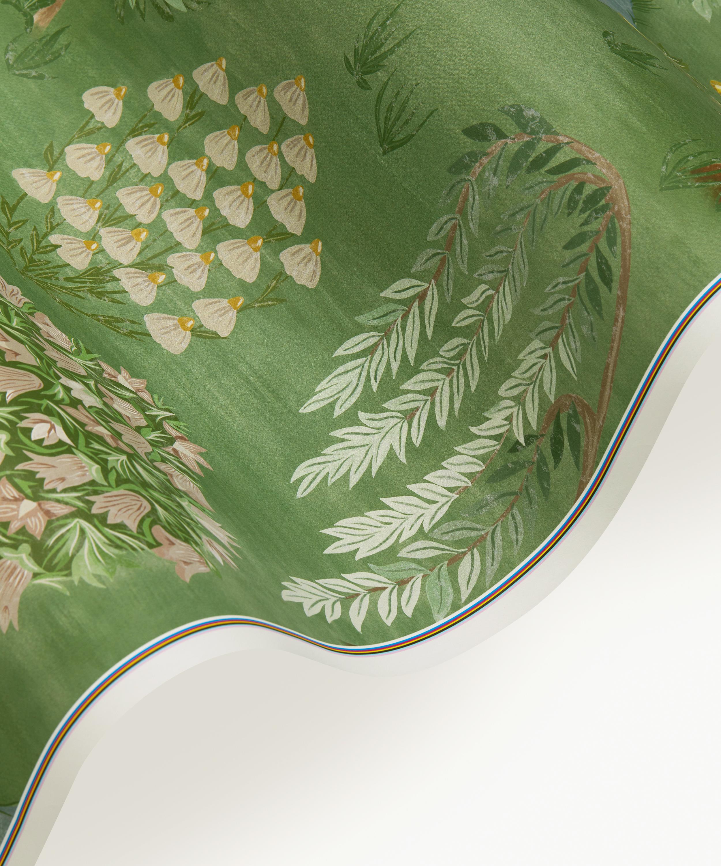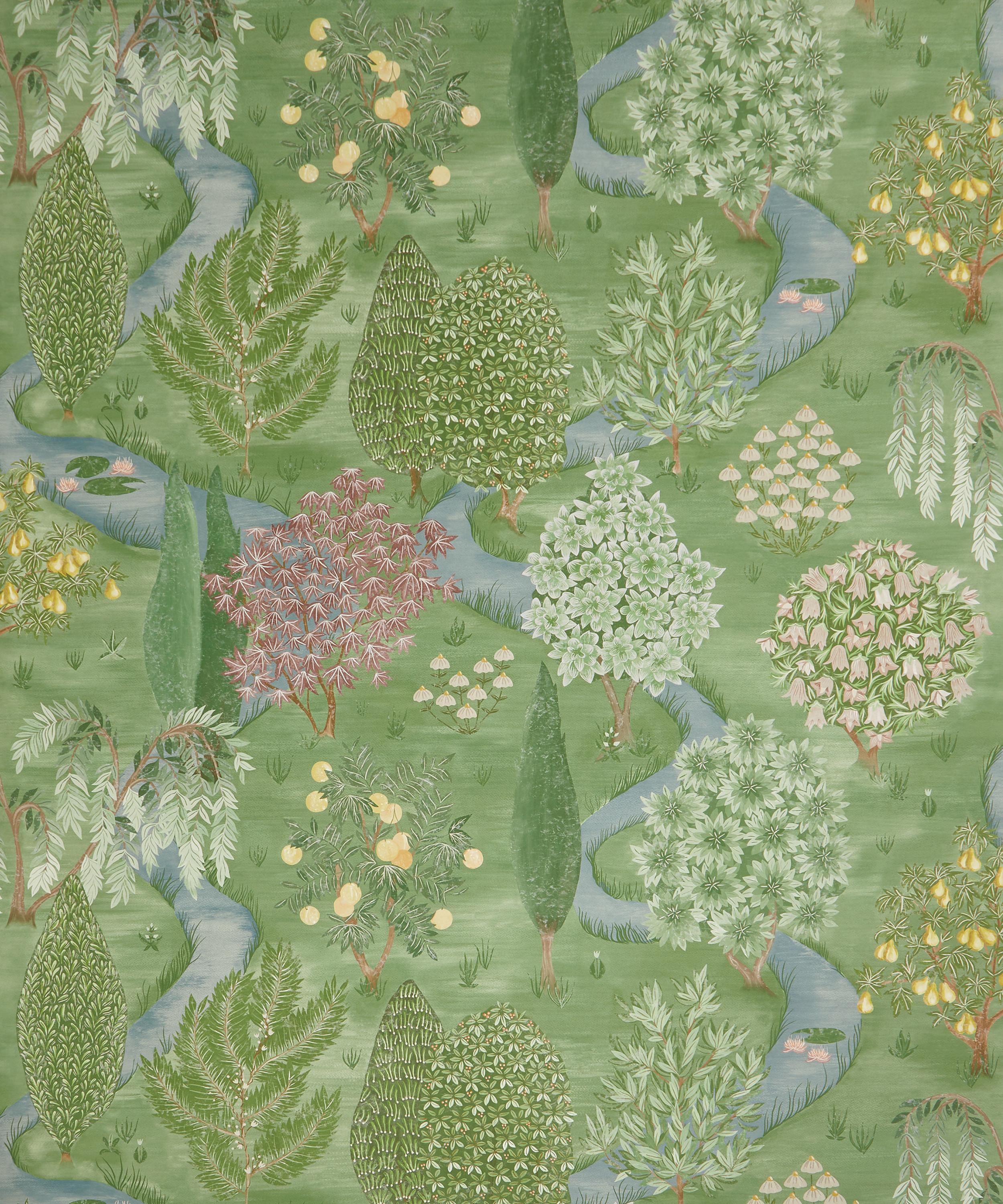 This captivating print is inspired by the book ‘Around the World in 80 Trees’ by Jonathan Drori – featuring a panoramic landscape of stylised trees from all over the world. Designed in a painting style, inspired by Indian garden paintings, it’s further characterised by meandering streams, delicate grass and imagined Liberty floral tree.