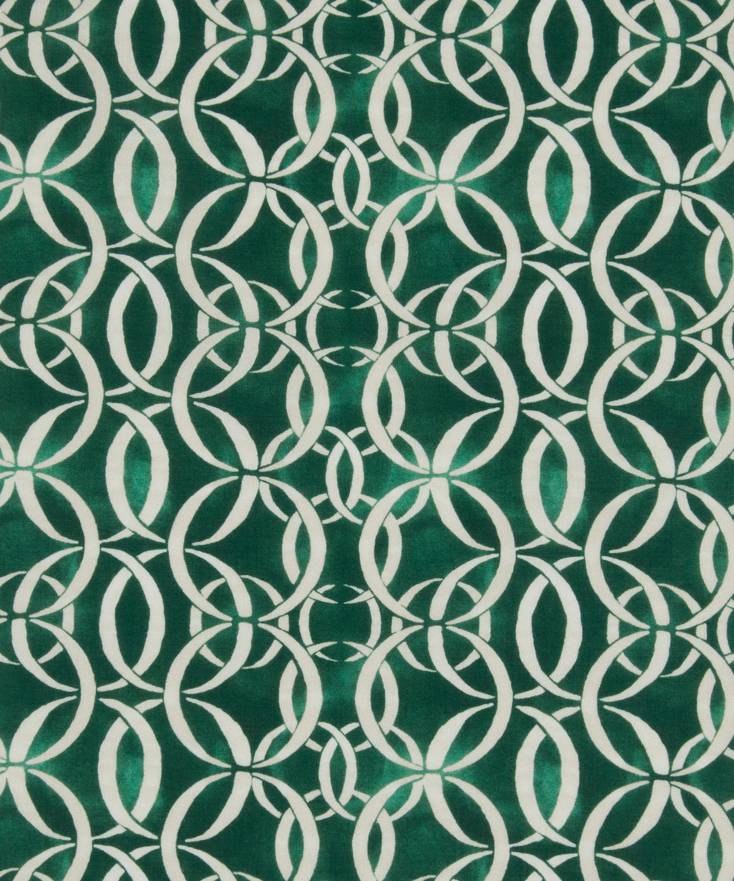 Endless was designed by the Liberty Design Studio for the FuturLiberty Collection. Using watered-down gouache, the designers created a softly textured background, that forms the base for boundless circular forms that link together to create a dynamic, infinite pattern.