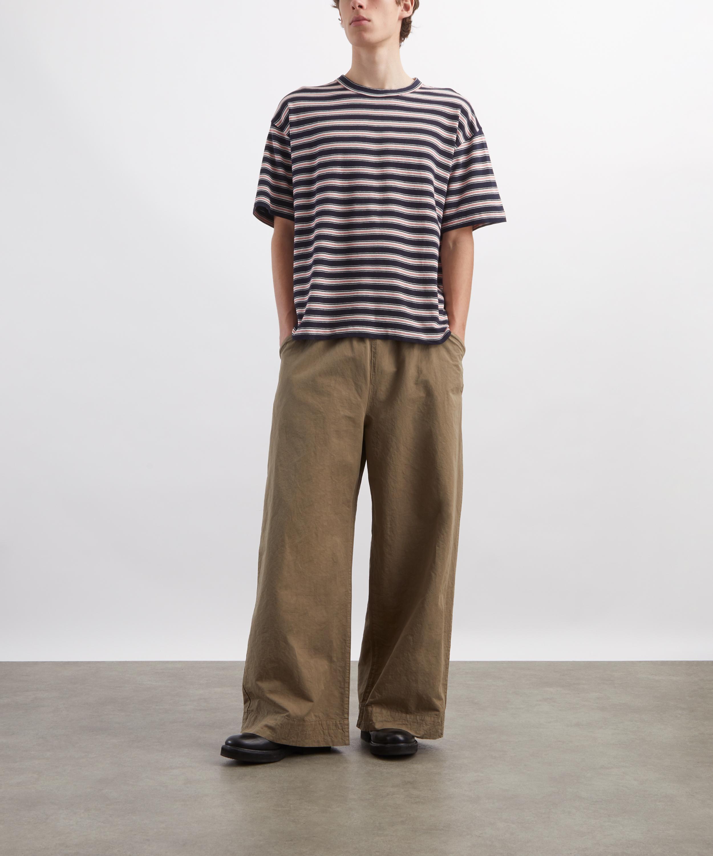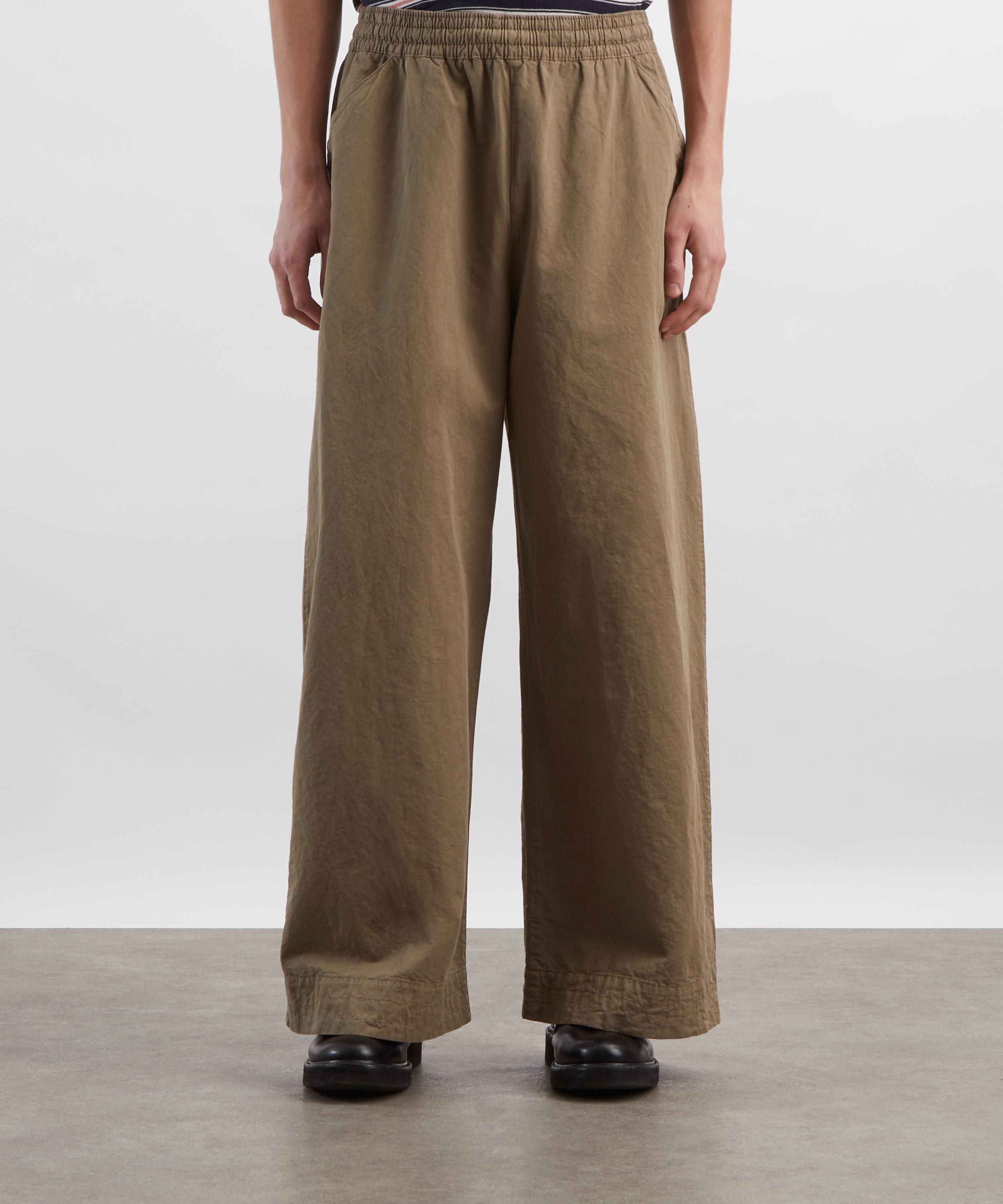 Crafted from a cotton and linen blend that’s garment-dyed for a low-key, lived-in feel, the trousers feature a comfortable elasticated waist and a relaxed, wide-leg silhouette. They’re finished with slant pockets, and a deep hem that leans into the label’s tailoring influences.