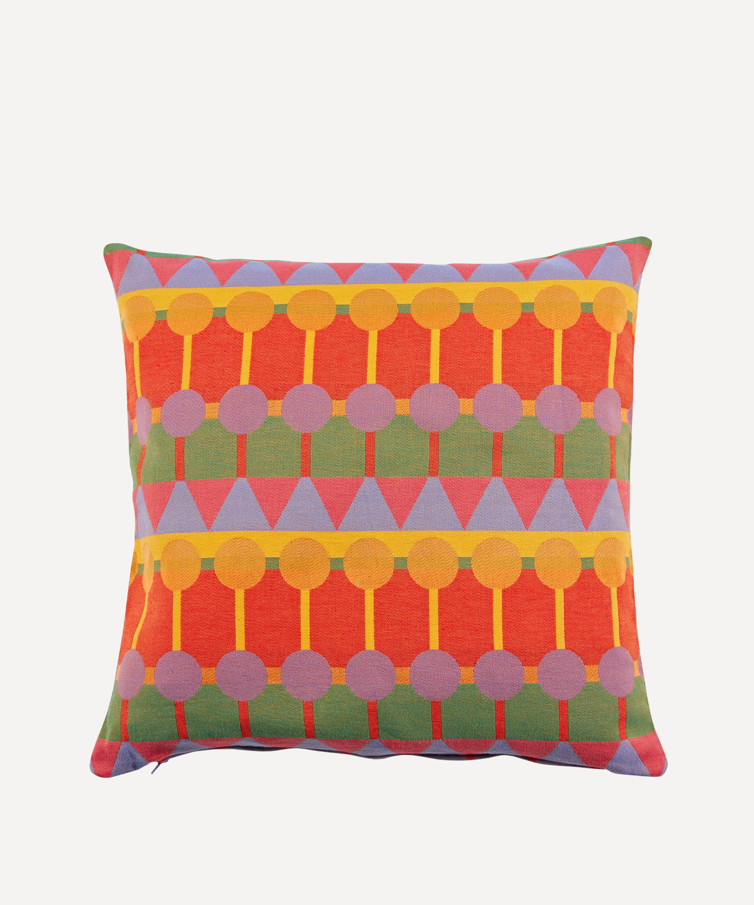 Presenting a lively pattern of serotonin-boosting, saturated hues, this cushion is inspired by the word “ere” which means “play” in Yoruba. Crafted in Portugal in a meticulously woven jacquard, arrange in multiples, or mix and match with other cushions from the brand for a brilliantly bold infusion of colour and print.About Yinka Ilori Objects