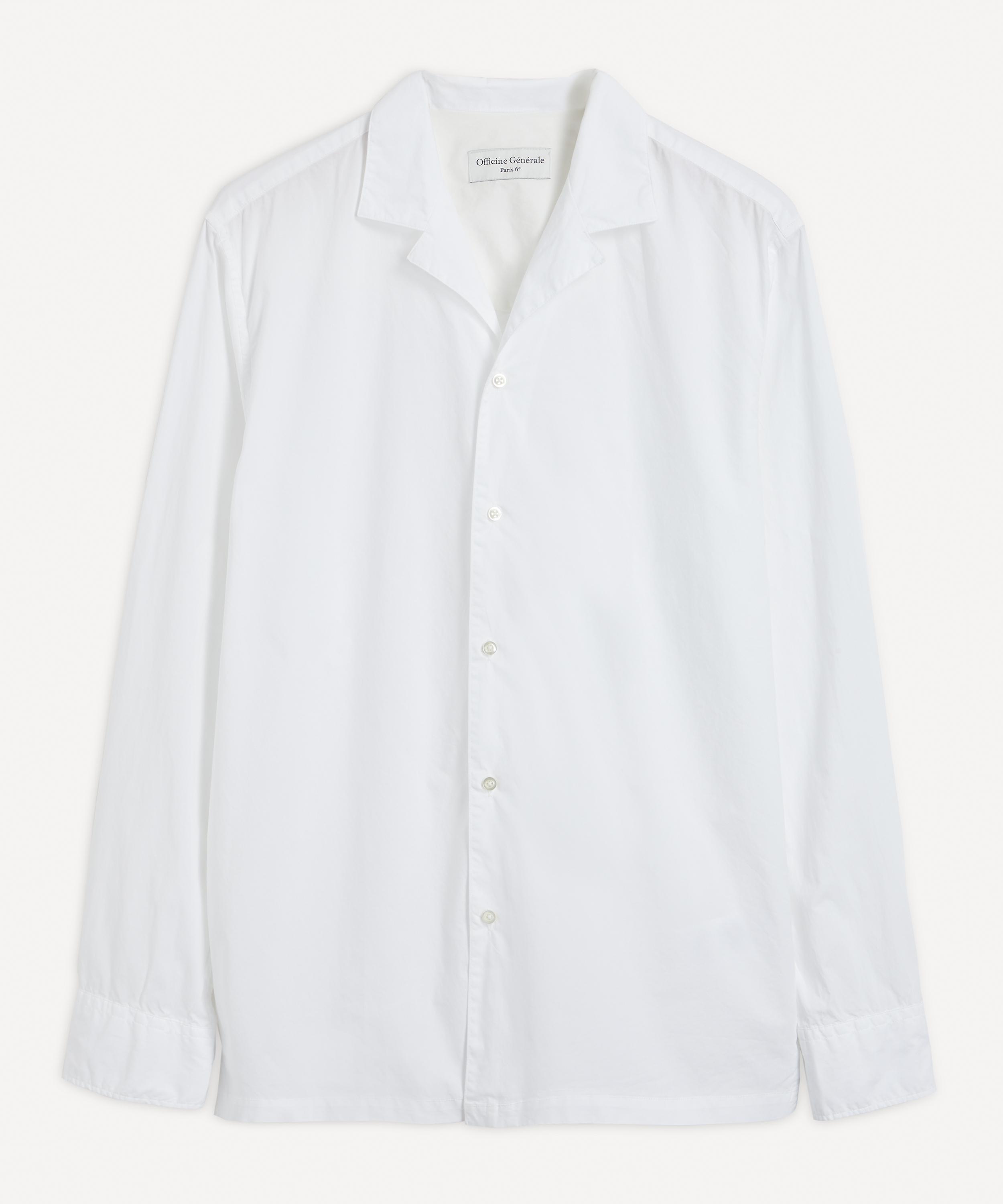 French label Officine Générale imbues that distinctly continental simple luxury into every garment. This crisp white shirt is crafted from cotton poplin and expertly tailored to a regular fit with a straight hem and side-slits. A relaxed interpretation of the classic white shirt, it has a camp collar, complete with a button-down placket and long cuffed sleeves. A timeless and versatile style fit for work and weekends, team it with anything from chinos to denim jeans.