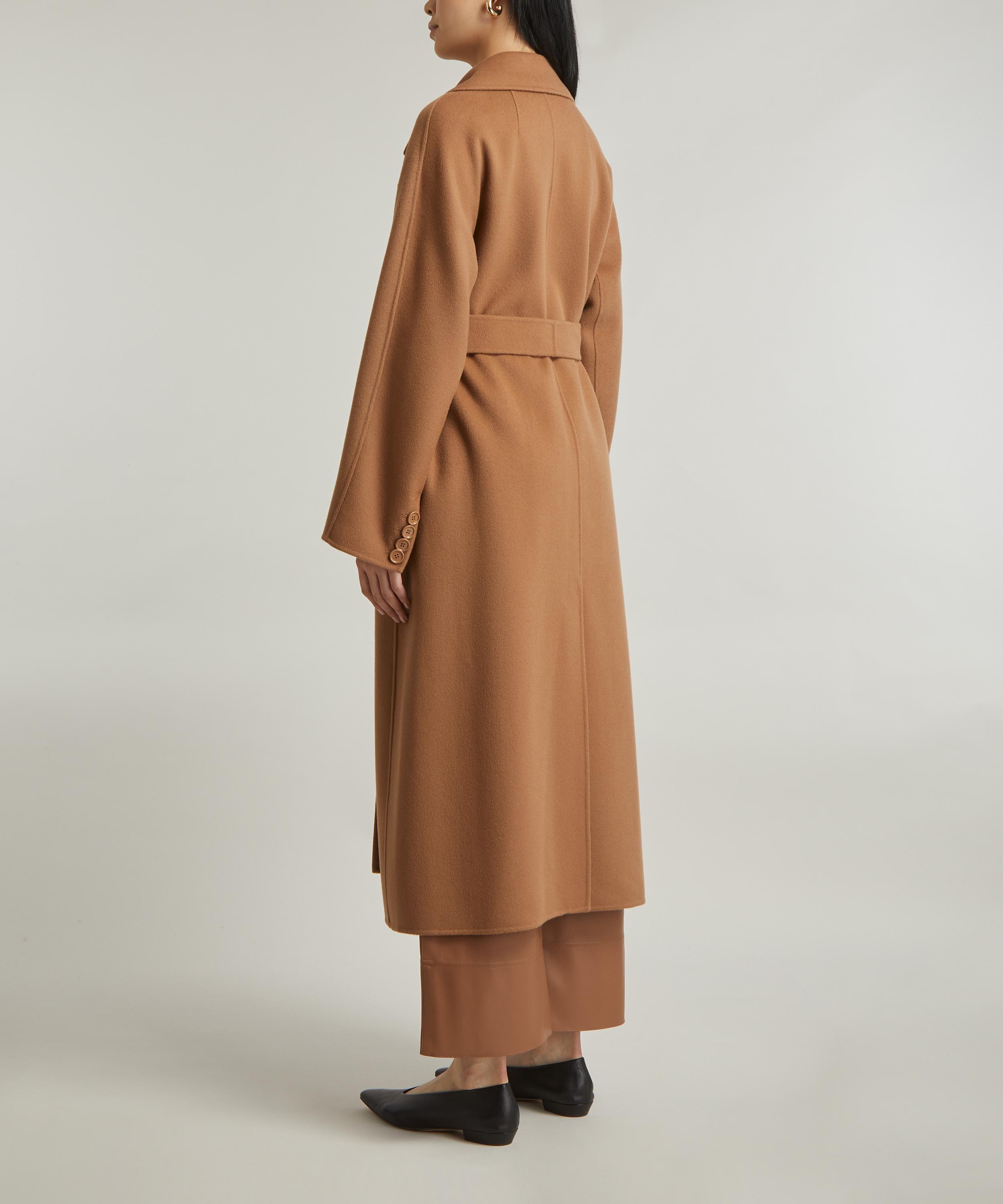 Imbued with the brand’s signature refinement and meticulous eye for craftsmanship, this essential wardrobe staple is crafted from virgin wool. Cut to a long, regular fit with a double-breasted silhouette, it features a lapel collar, long kimono sleeves, and a matching buckle belt at the waist.