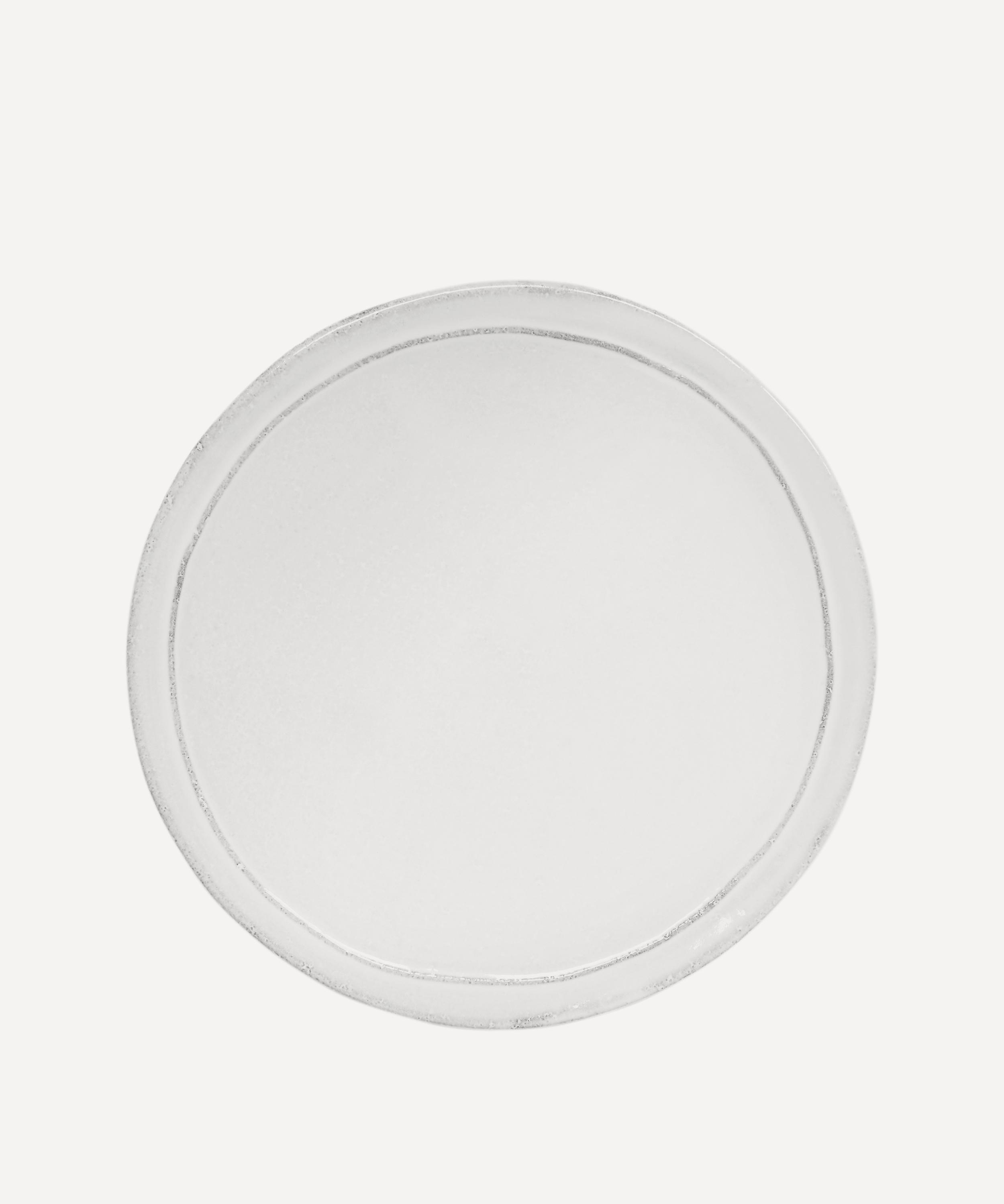 Votary of pre-industrial fabrication, Astier de Villatte is celebrated for being the one and only studio in Paris to hold and harbour the traditions of artisanal ceramic production. Restoring the ancestral systems of moulding and stamping, this saucer is made using handcrafting techniques from the Middle Ages which involve moulding a handmade sheet of clay, double firing the ‘biscuit’ piece and glazing the product in white enamel – a lengthy process that involves a drying time of up to one month. Characterised by a chic minimalist silhouette, this saucer is engraved with the brand’s signature crest - depicting an interlacing A & V - alongside the initials of one of the 40 master artisans who created it. Each handmade piece tells a beautiful story, it romances and imparts a sense of nostalgia into its owner. Arrange alongside glazed bowls and plates in the collection to breathe an air of authenticity into your table setting.