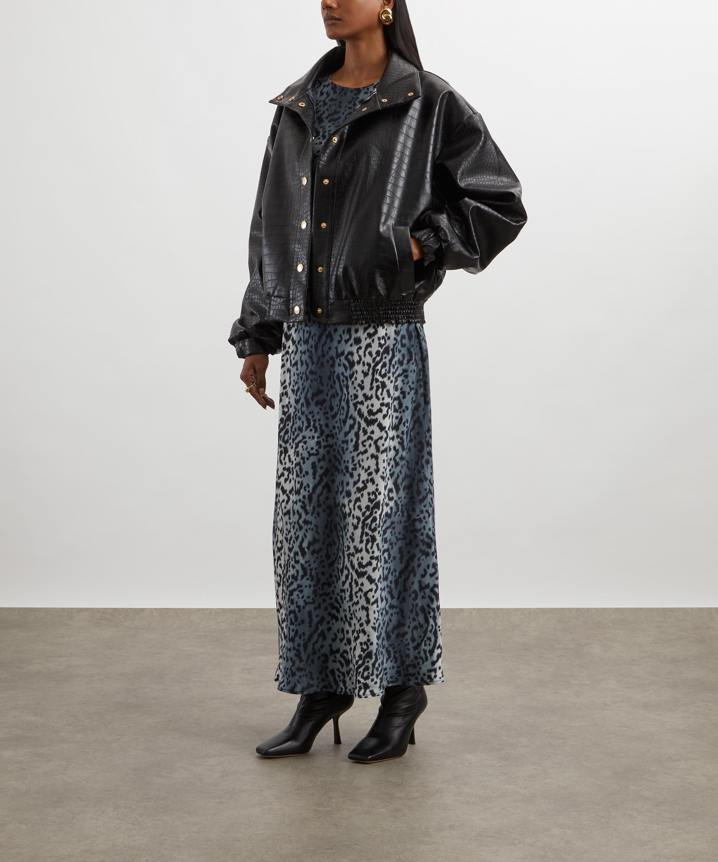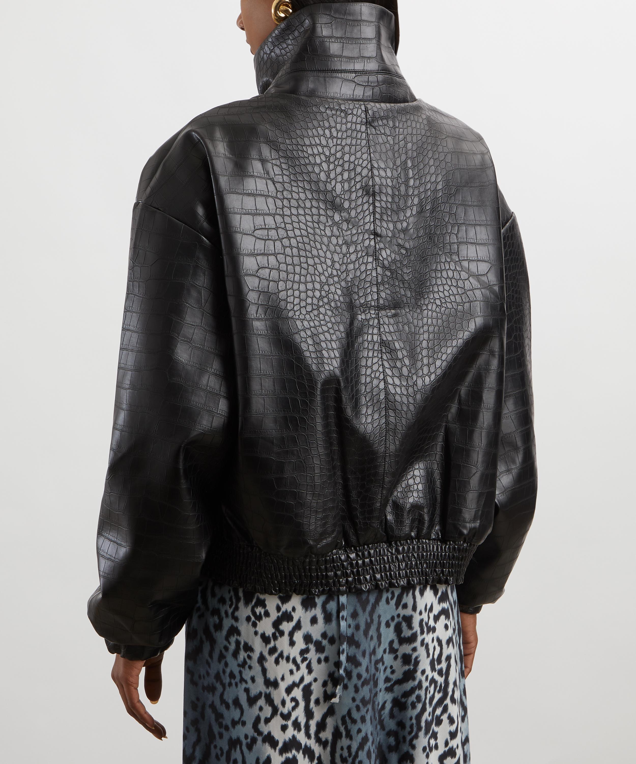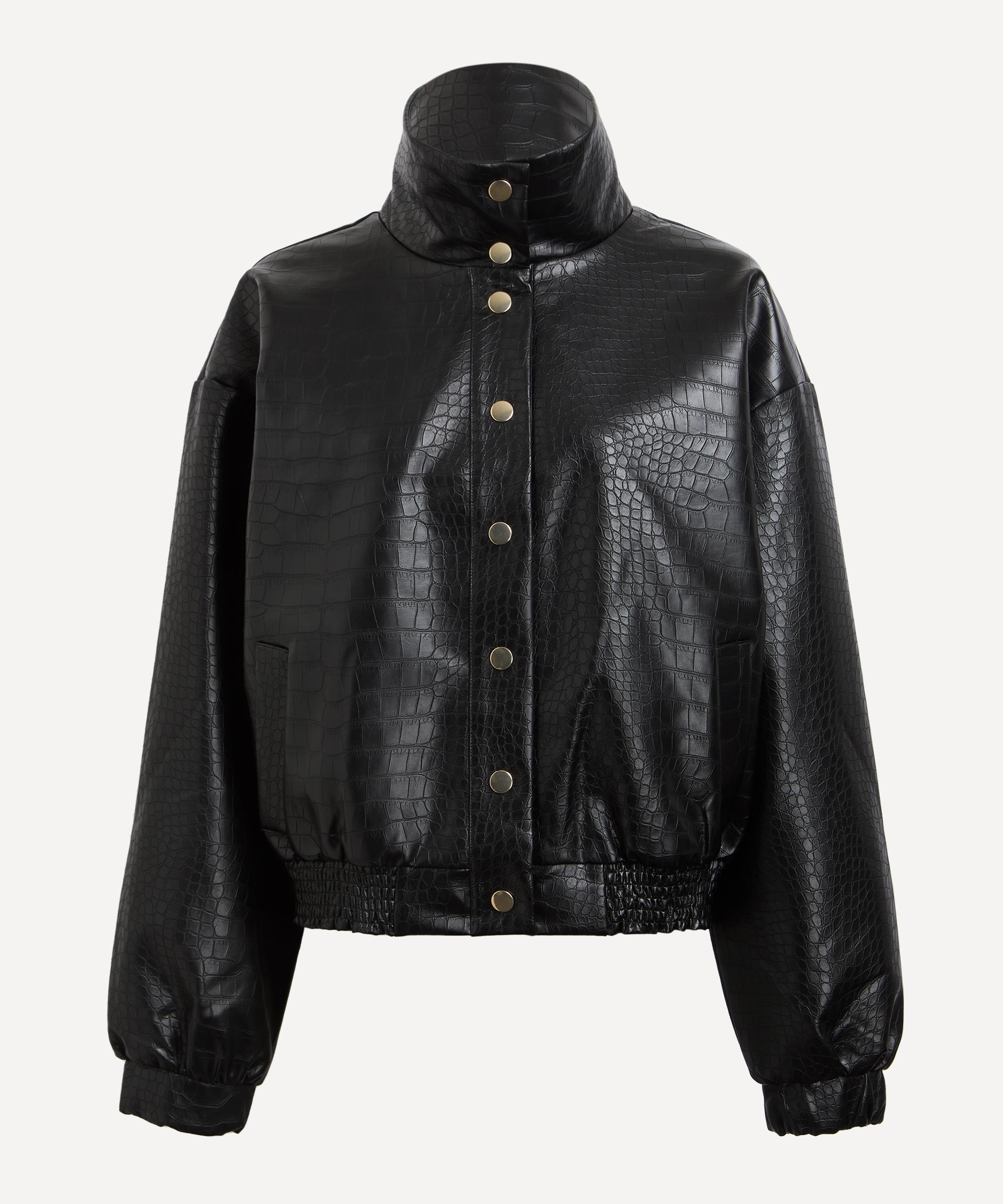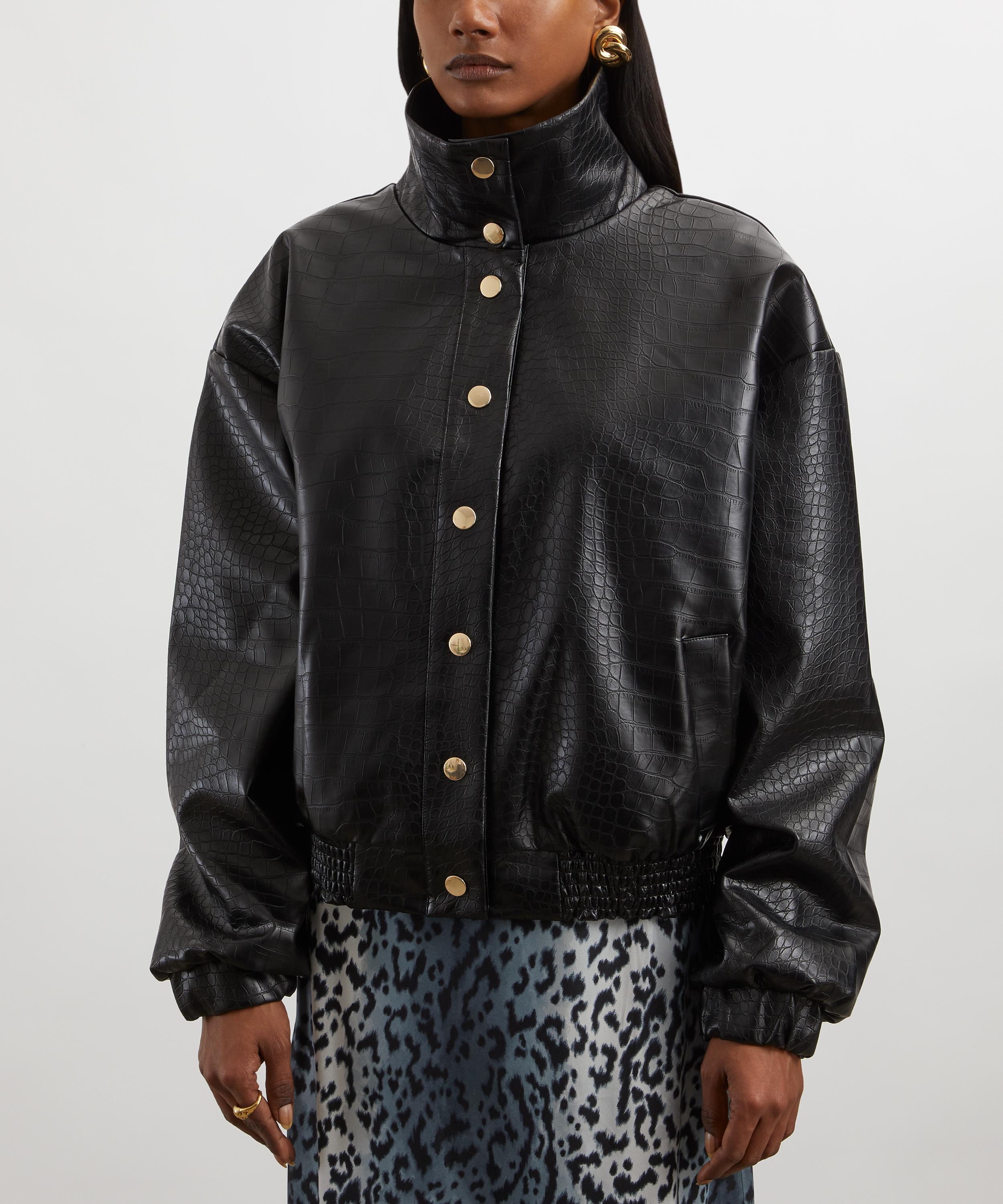 Estelle Black Faux Croc Oversized Bomber Jacket