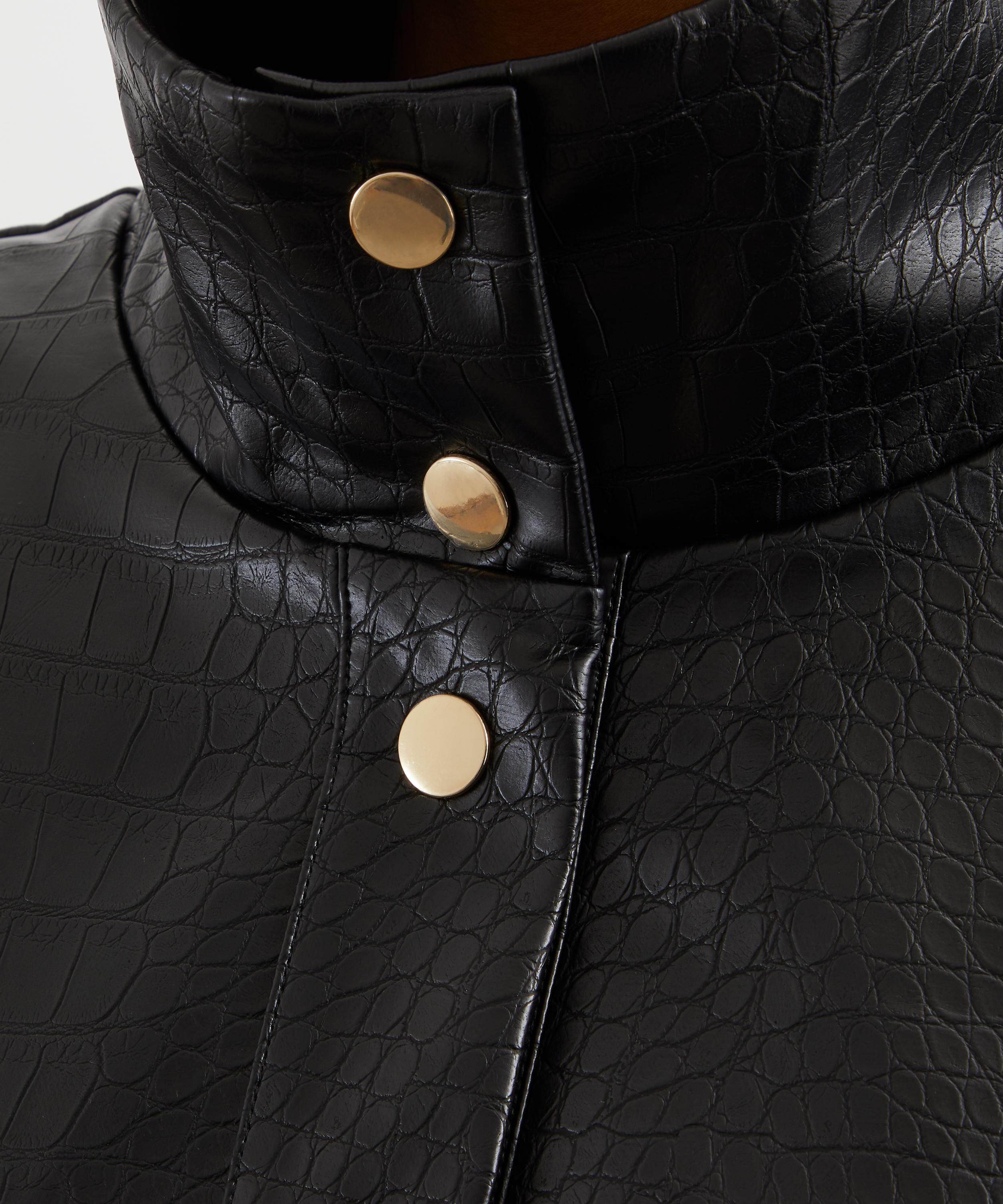 Timeless yet trendy, the Estelle jacket is this season's must-have piece. Featuring a relaxed fit, this contemporary piece is crafted from matte, faux croc vinyl designed with a funnel neck, a gold metal popper fastening, elasticated hem detailing and two welt pockets.