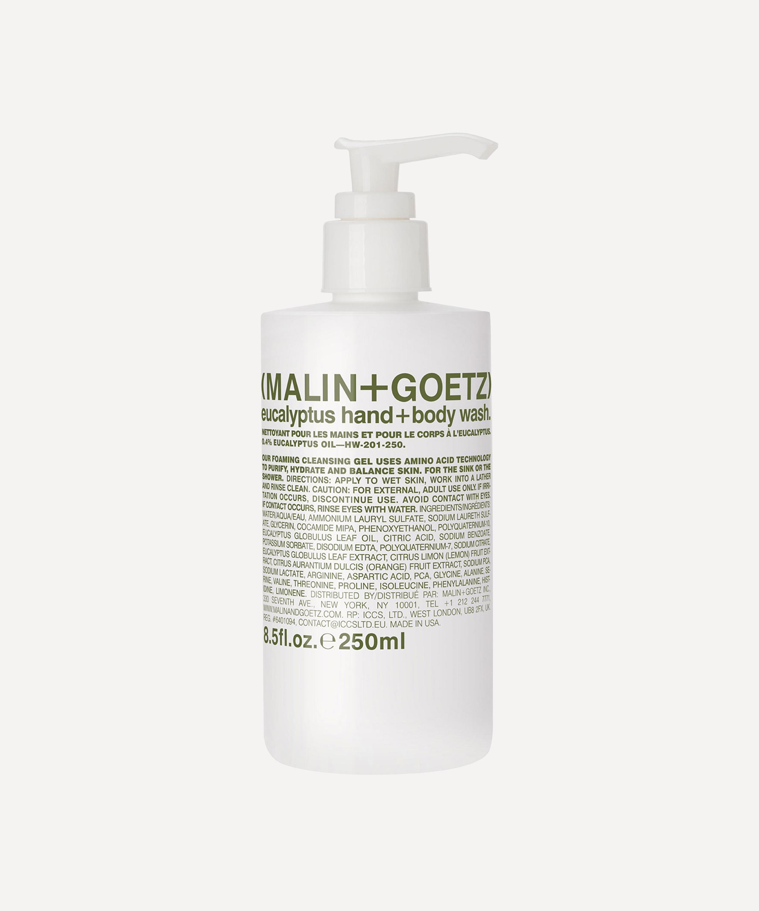 The Eucalyptus Hand and Body Wash from (MALIN+GOETZ) is a two-in-one cleanser that can be used all over the body or as an everyday hand wash.