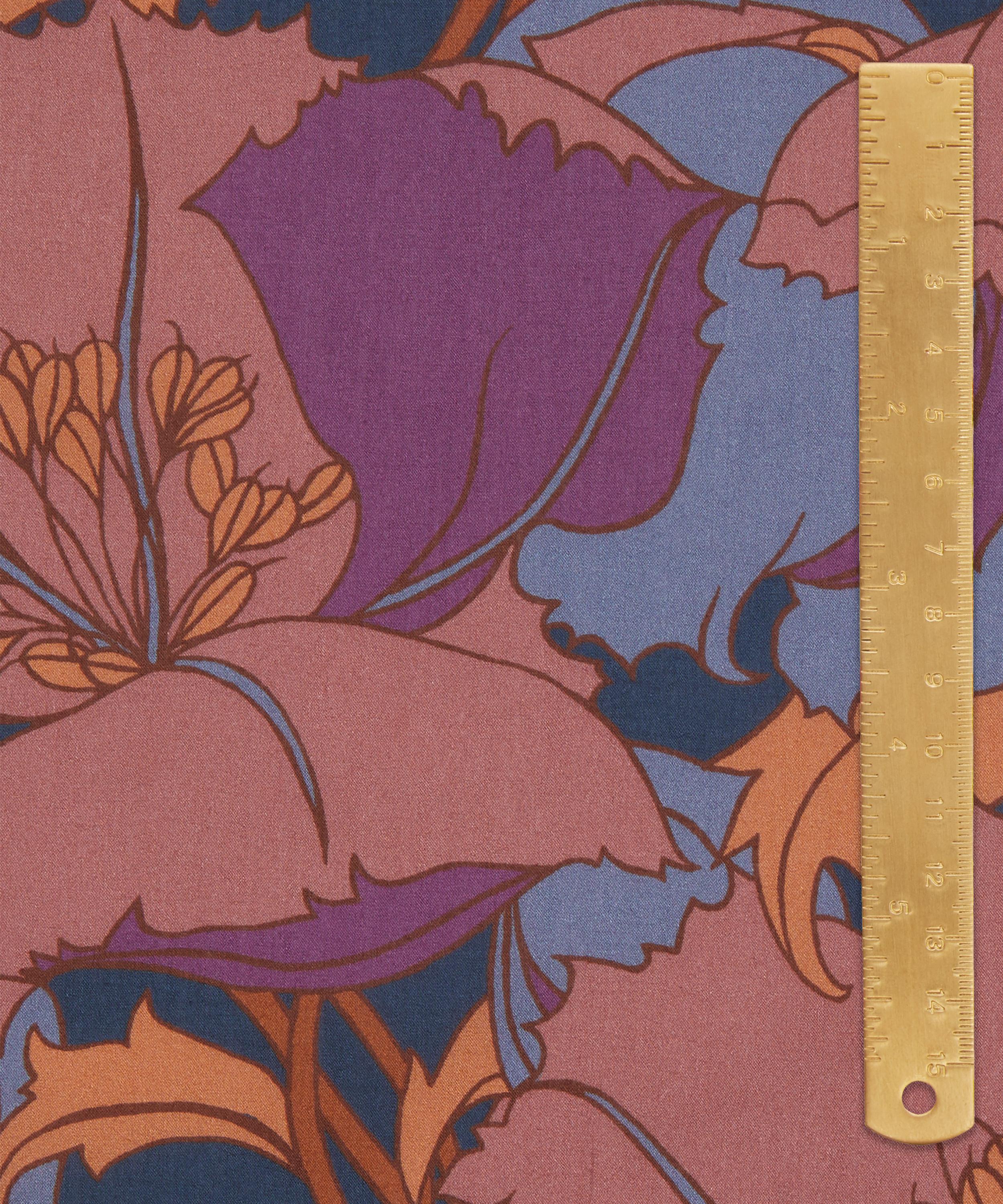 Eustacia is a quintessential Art Nouveau botanical, first printed in 1960 as part of Liberty’s trendsetting ‘Lotus’ fabric collections. With a flowing arrangement of curling petals, decorative foliage and sculptural stems, its exaggerated tulip shapes lend a sense of graceful movement and tranquil rhythm. Crisp, confident outlines frame flat planes of colour, striking a balance between softness and structure.