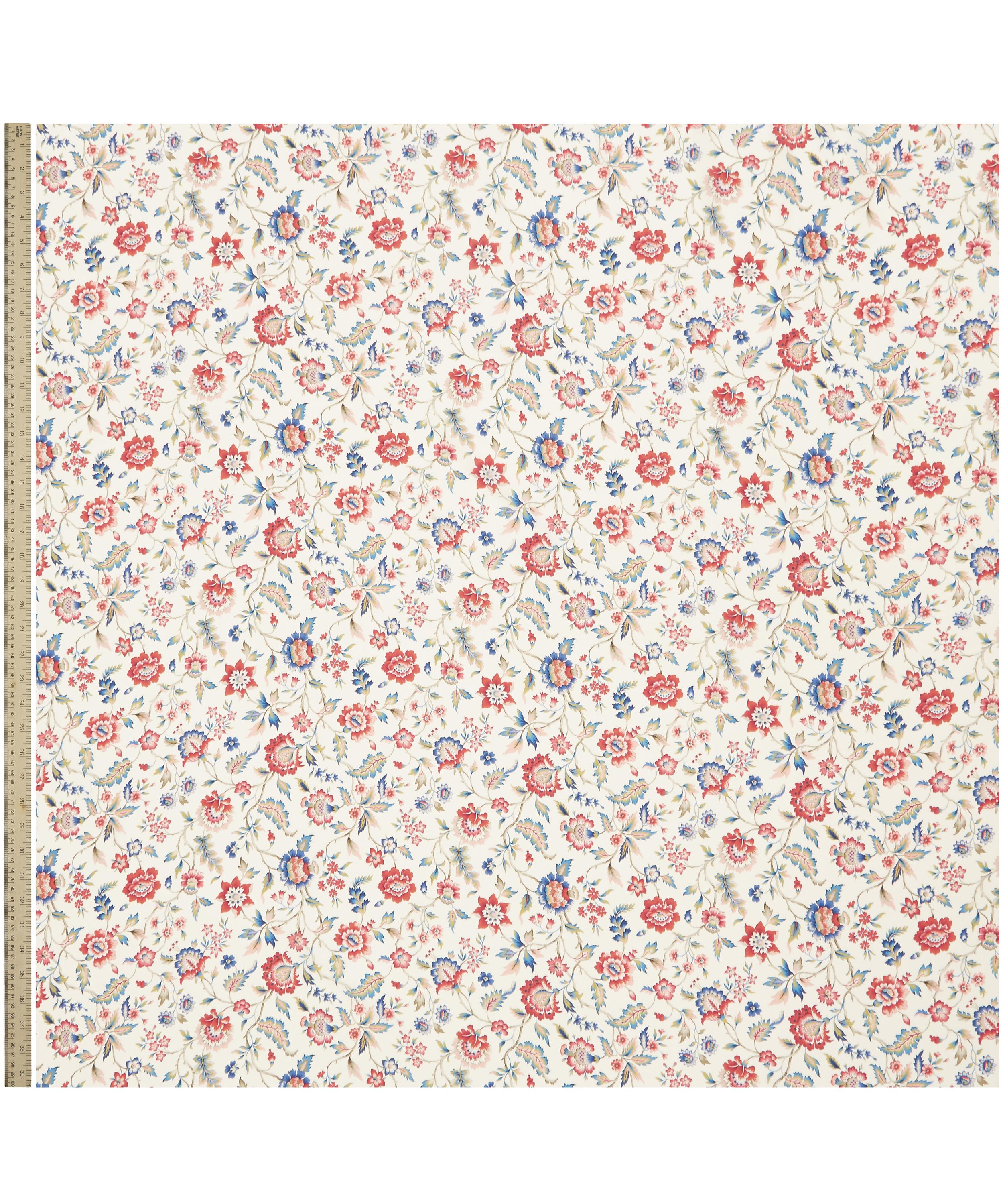 Eva Belle is inspired by a design from the Liberty archive, originally created between the 1910s and 1930s in Jacobean needlework style. A Tree of Life arrangement, it features stylised florals with winding leaves and intricately shaded petals in soft jewel-tone colourways.