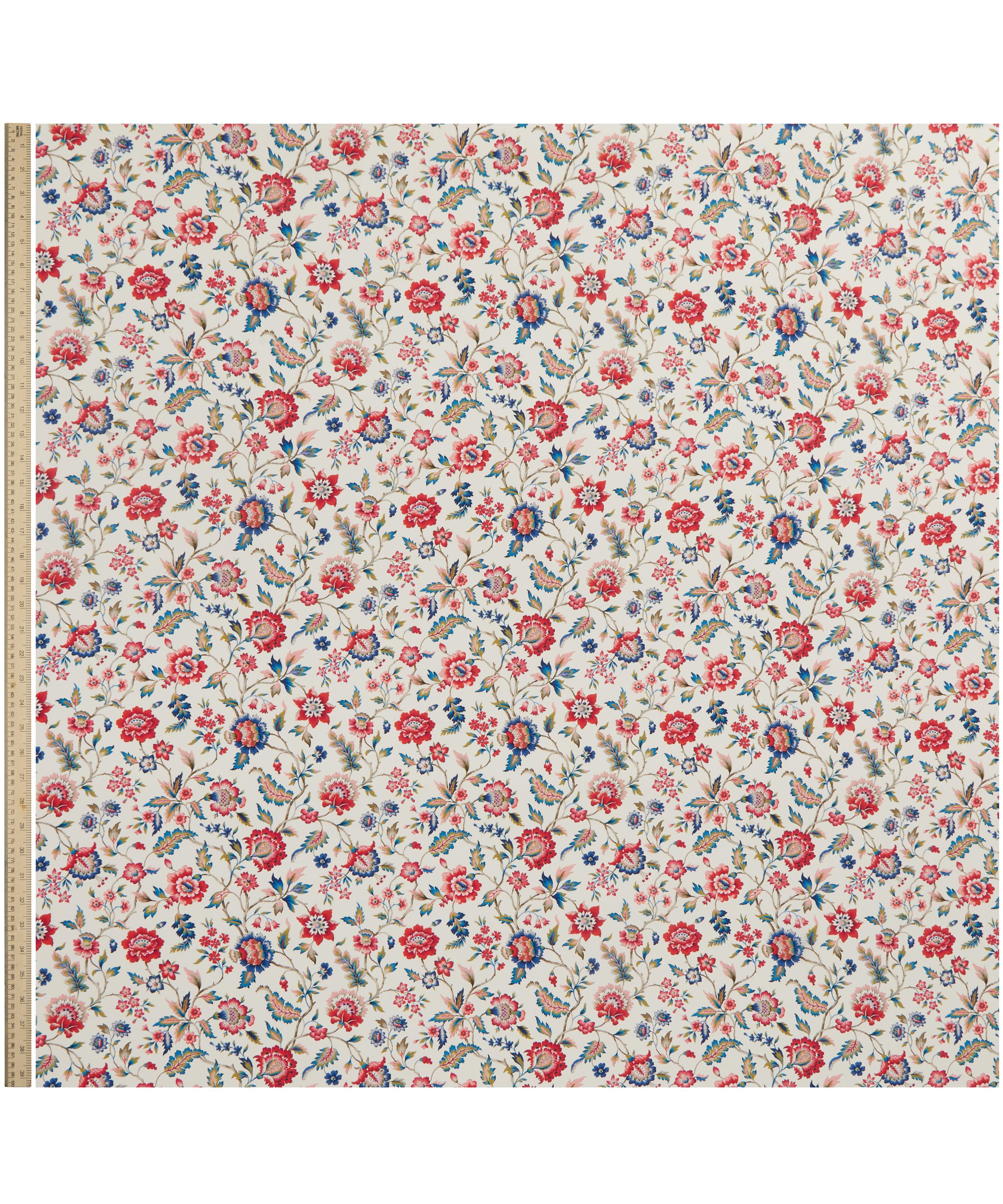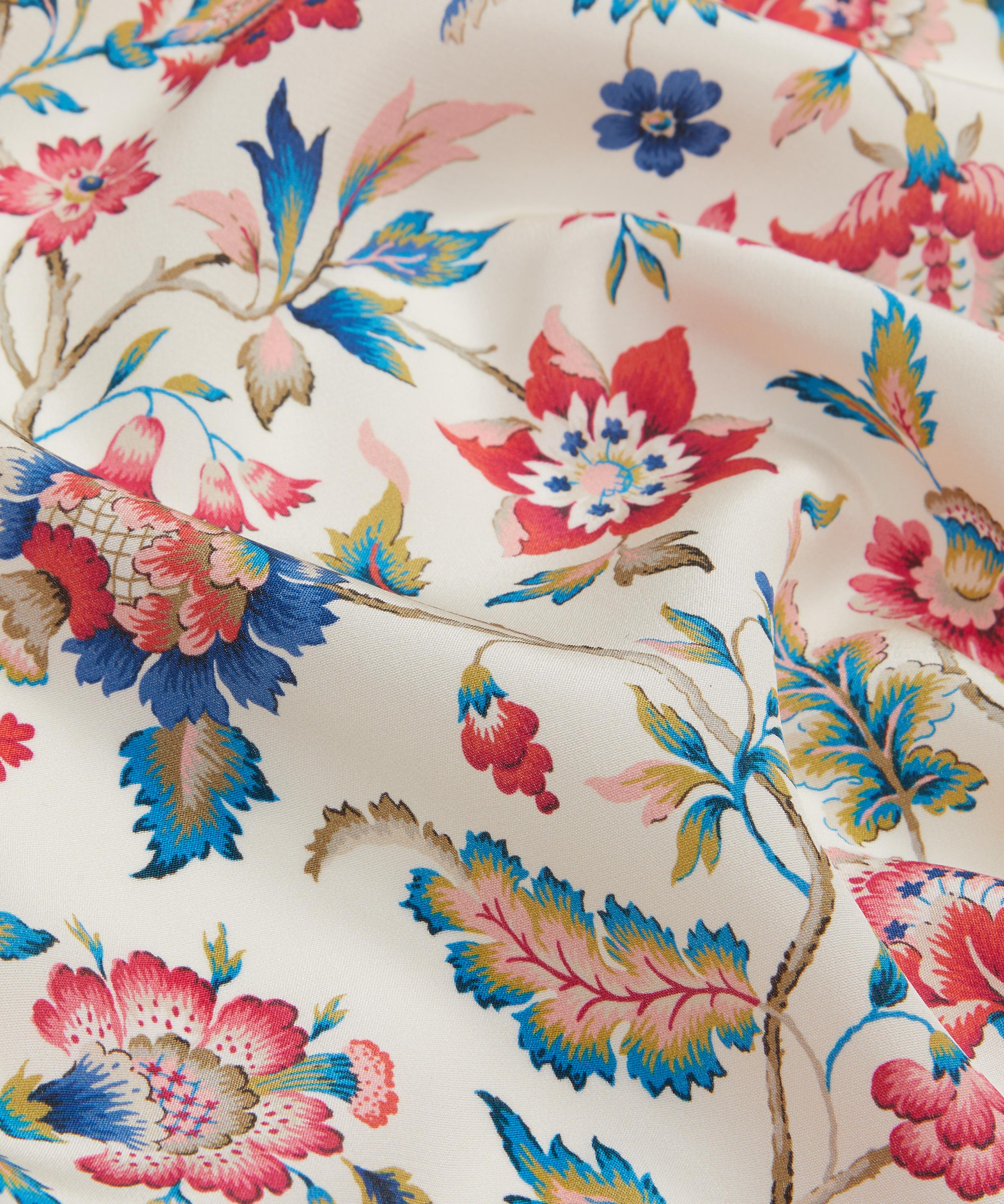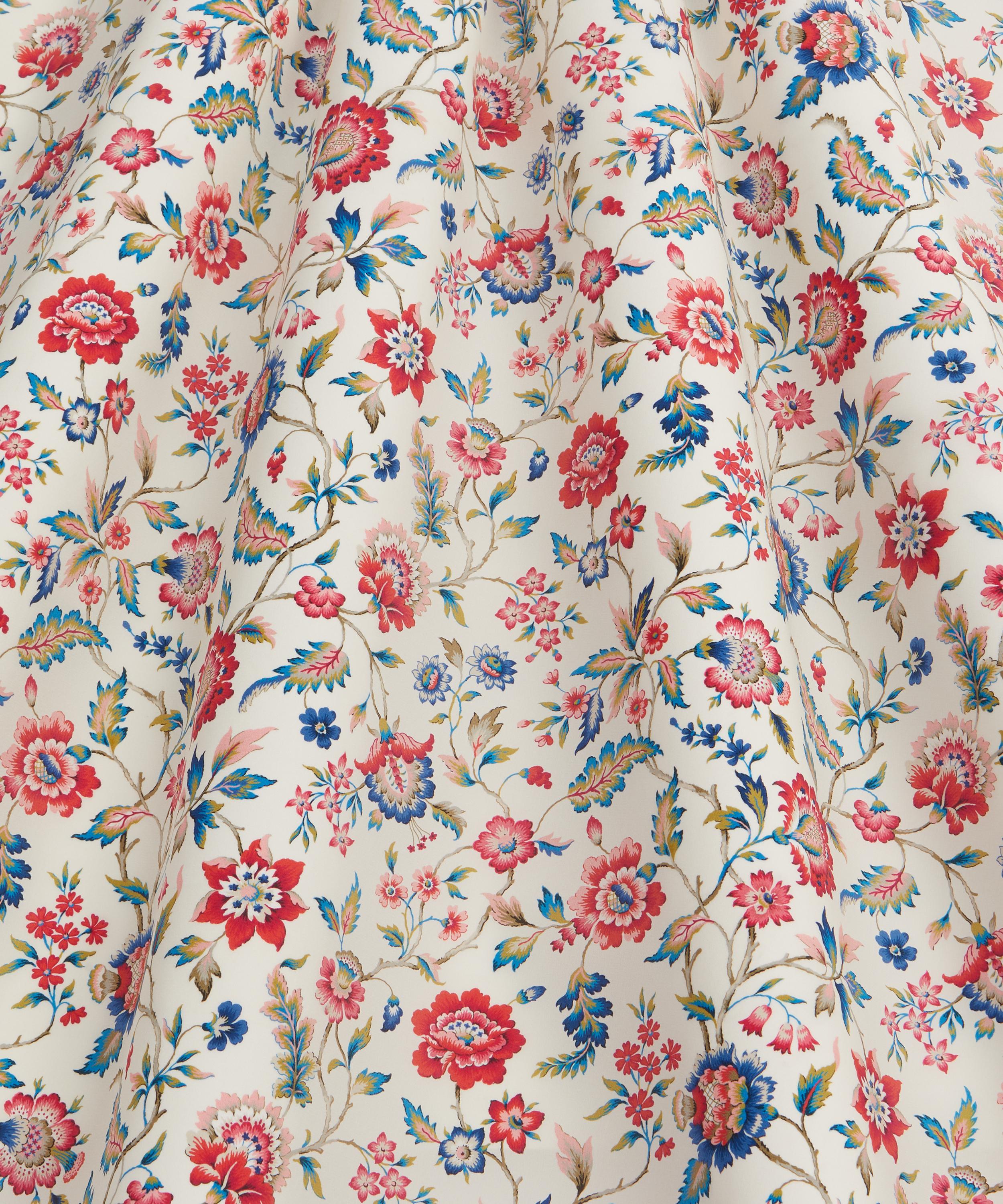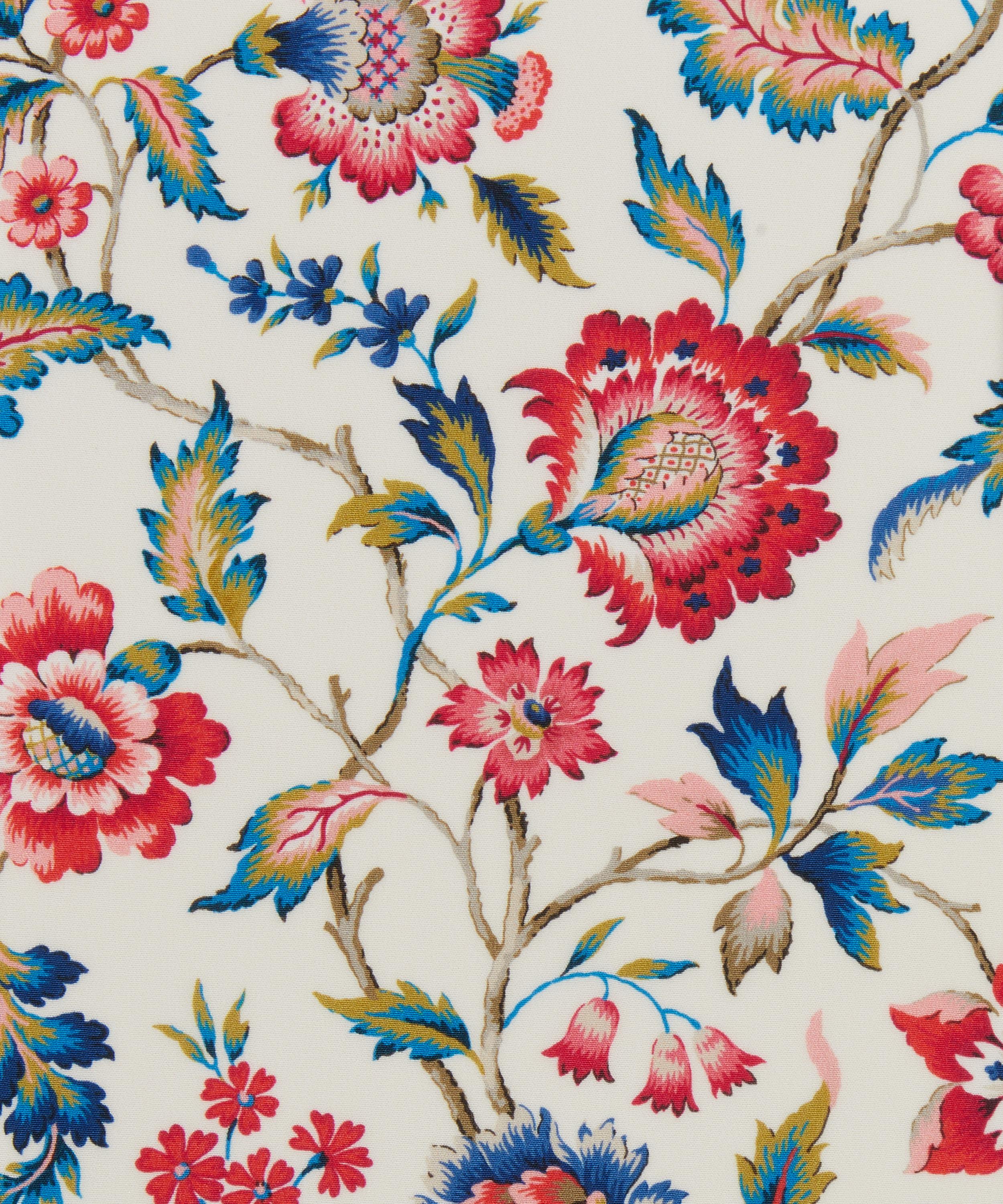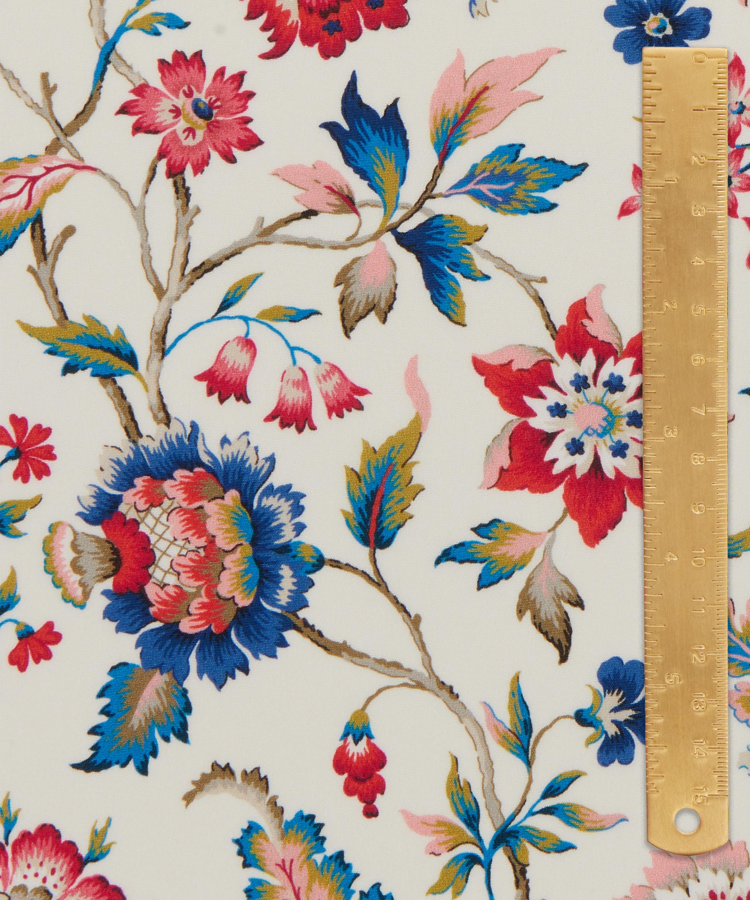 Our Eva Belle print is inspired by a design from the Liberty Fabrics archive, originally created between the 1910s and 1930s in Jacobean needlework style. A Tree of Life arrangement, it features stylised florals with winding leaves and intricately shaded petals in soft jewel-tone colourways.