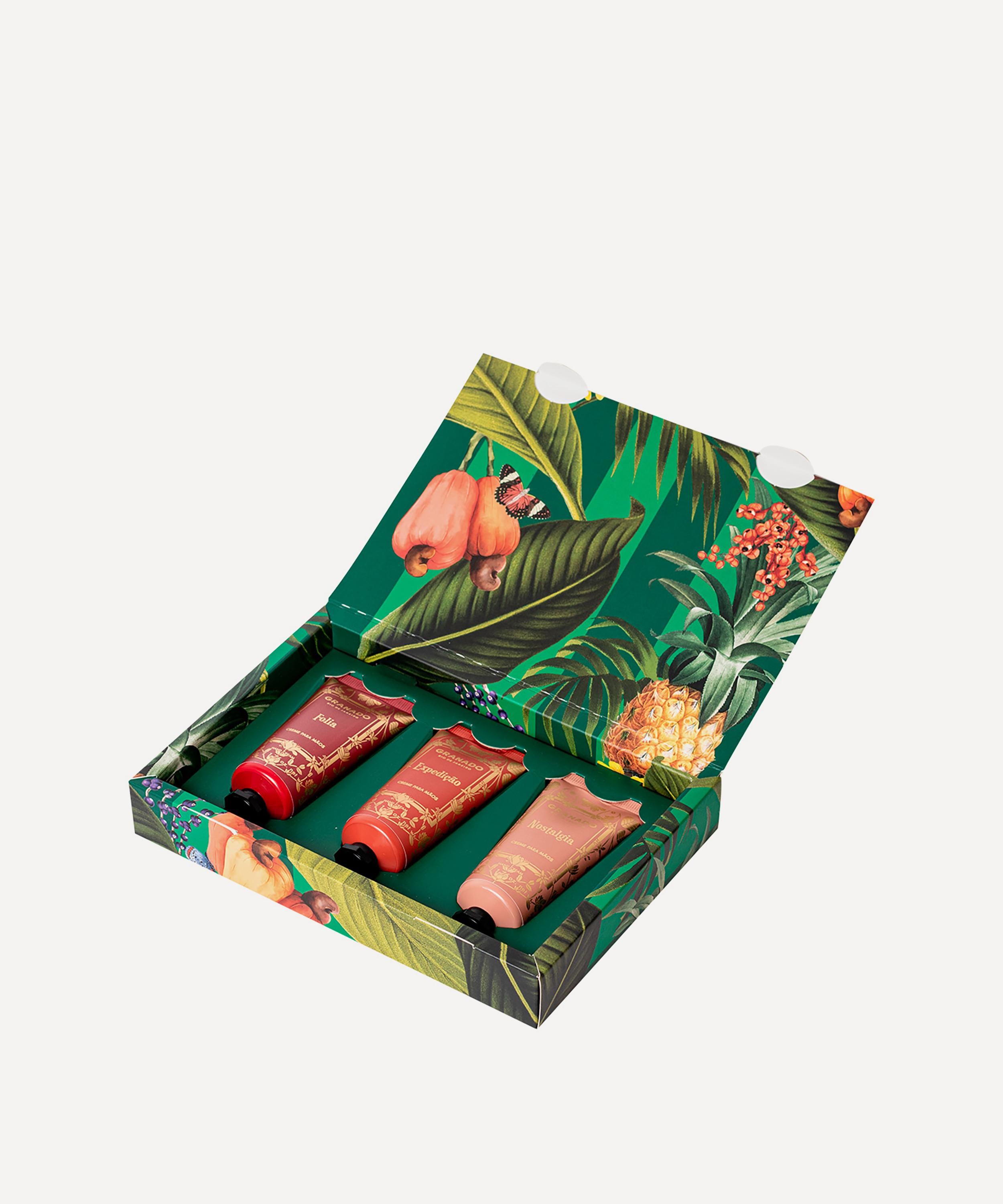 Granado's Expedição Hand Cream Trio brings intoxicating aromas of Rio de Janeiro to your everyday regime, while hydrating and nourishing skin.