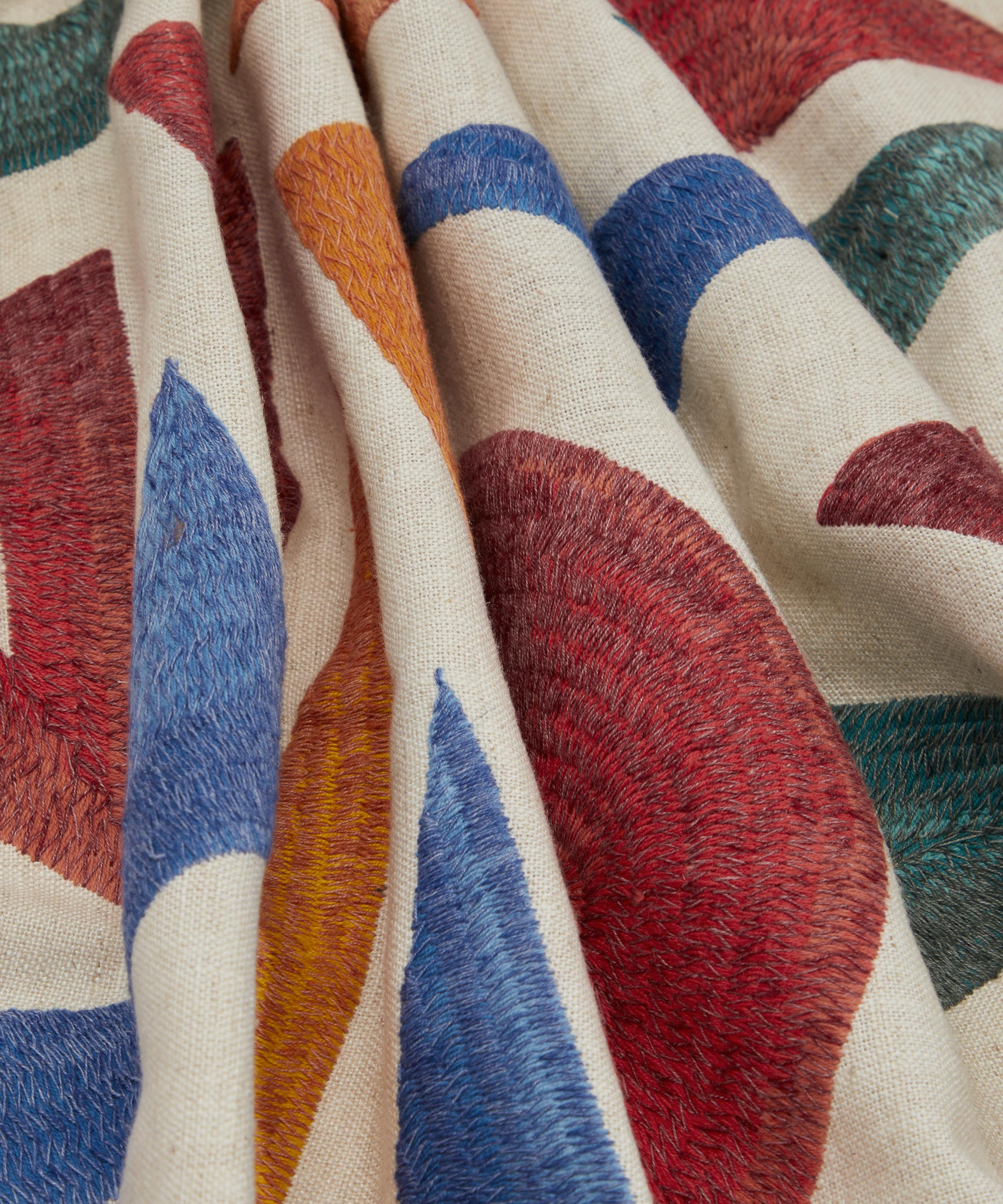 A playful embroidered design, Explosion features a layered yarn which simulates a painterly ombre effect, mimicking brush strokes on a canvas – ideal for drapery and decorative accessories such as cushions.