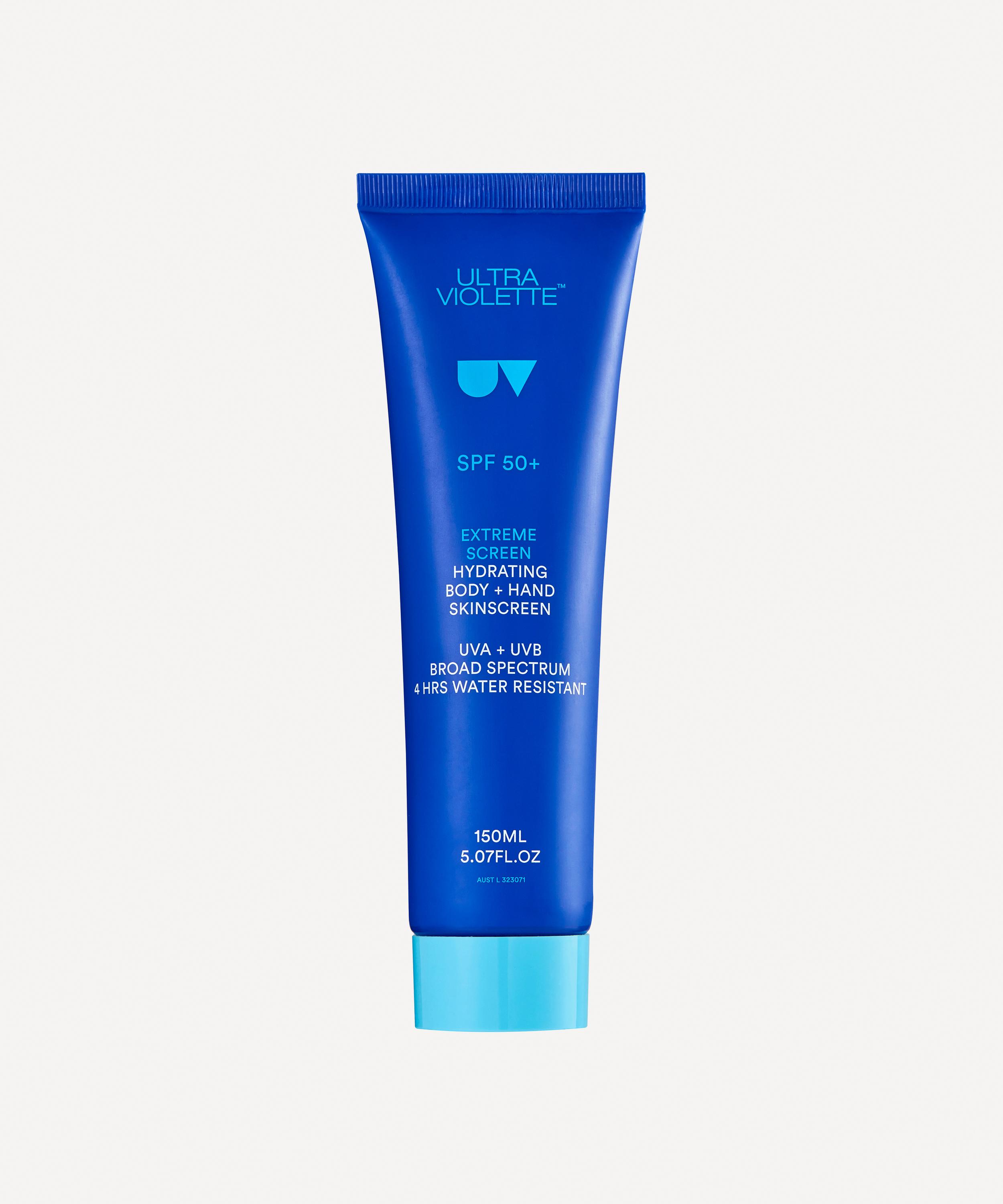 Extreme Screen SPF 50+ Hydrating Body & Hand SKINSCREEN™ from Ultra Violette is an ultralightweight chemical sunscreen that acts as a protective replacement to your regular moisturiser, while imparting a shimmering, dewy glow.
