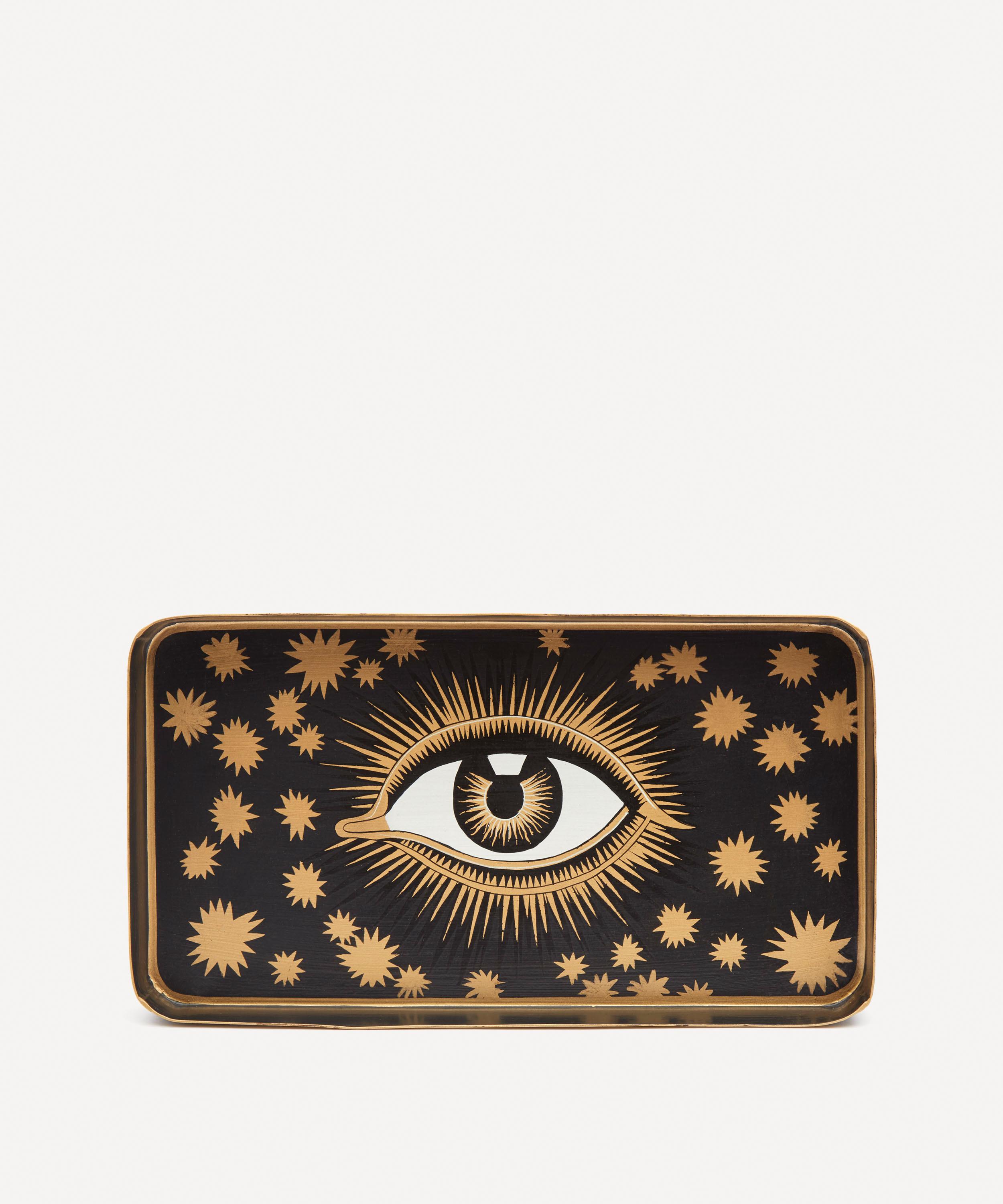 An eclectic homeware offering, this hand-painted tray is inspired by founder Bertrando di Renzo’s extensive travels. It’s made from iron with a raised gold rim and hand-painted with a mystical eye motif in the centre, surrounded by a celestial starburst. Use the tray for serving drinks and snacks or set it on a tabletop to display decorative candles and ornaments.
