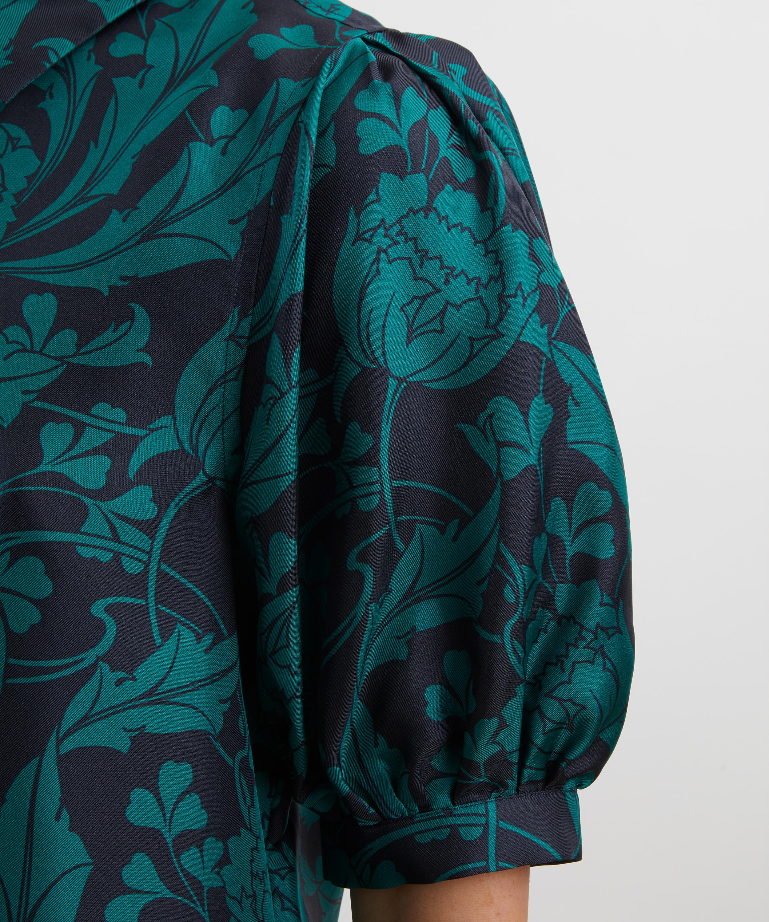 Featuring a classic point collar, regular fit, and front button fastening, this elegant shirt is elevated by pleated puff sleeves – bringing an effortlessly refined, chic touch to everyday dressing.