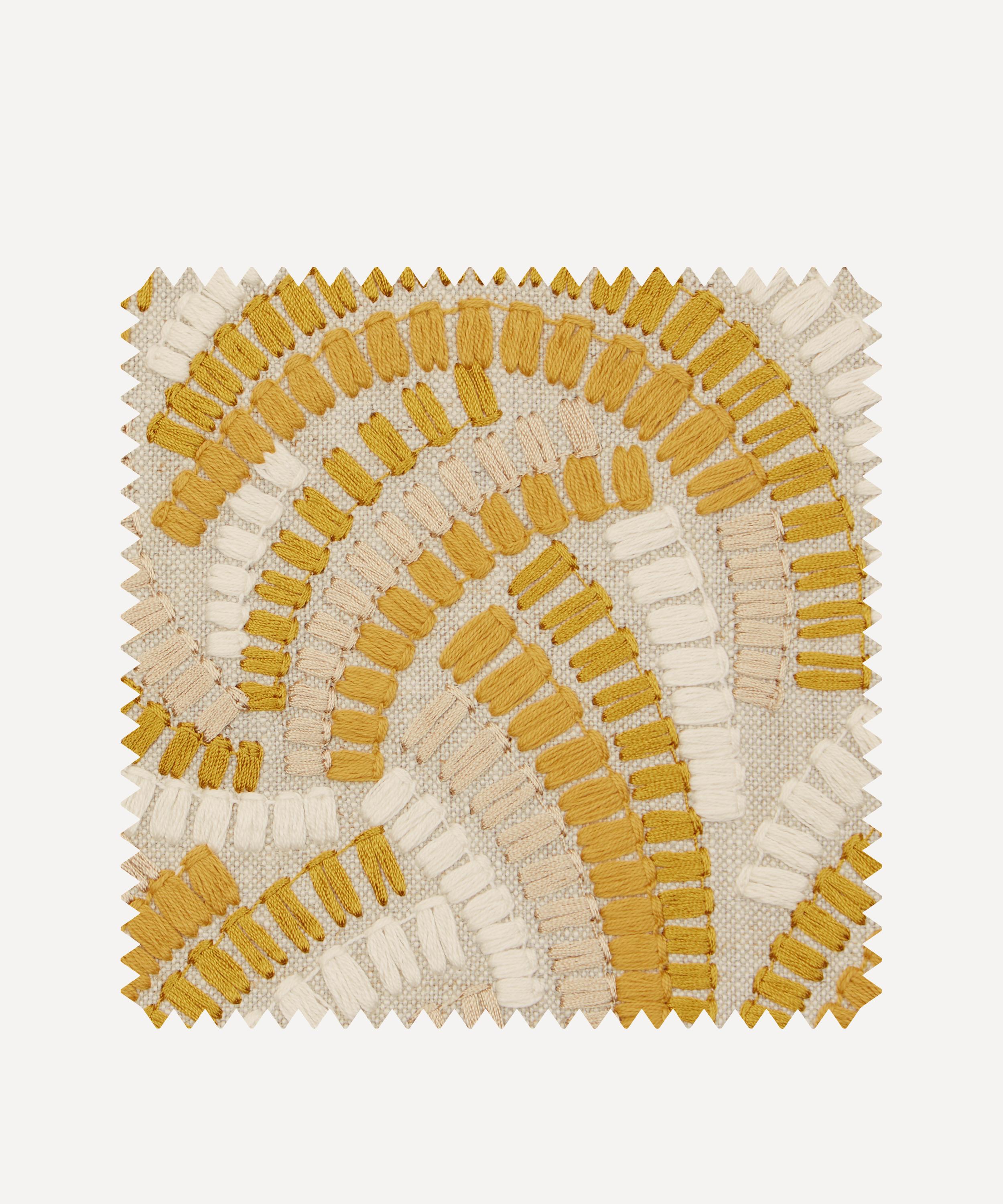 Beautifully illustrated with dynamic geometry and delicate precision, this wonderfully kinetic pattern’s rhythmic curves display an endless optical illusion of mesmerising movement. Embroidered in India with harmonious tonal colours, Kimono Knot is suitable for drapery, cushions, and accessories.