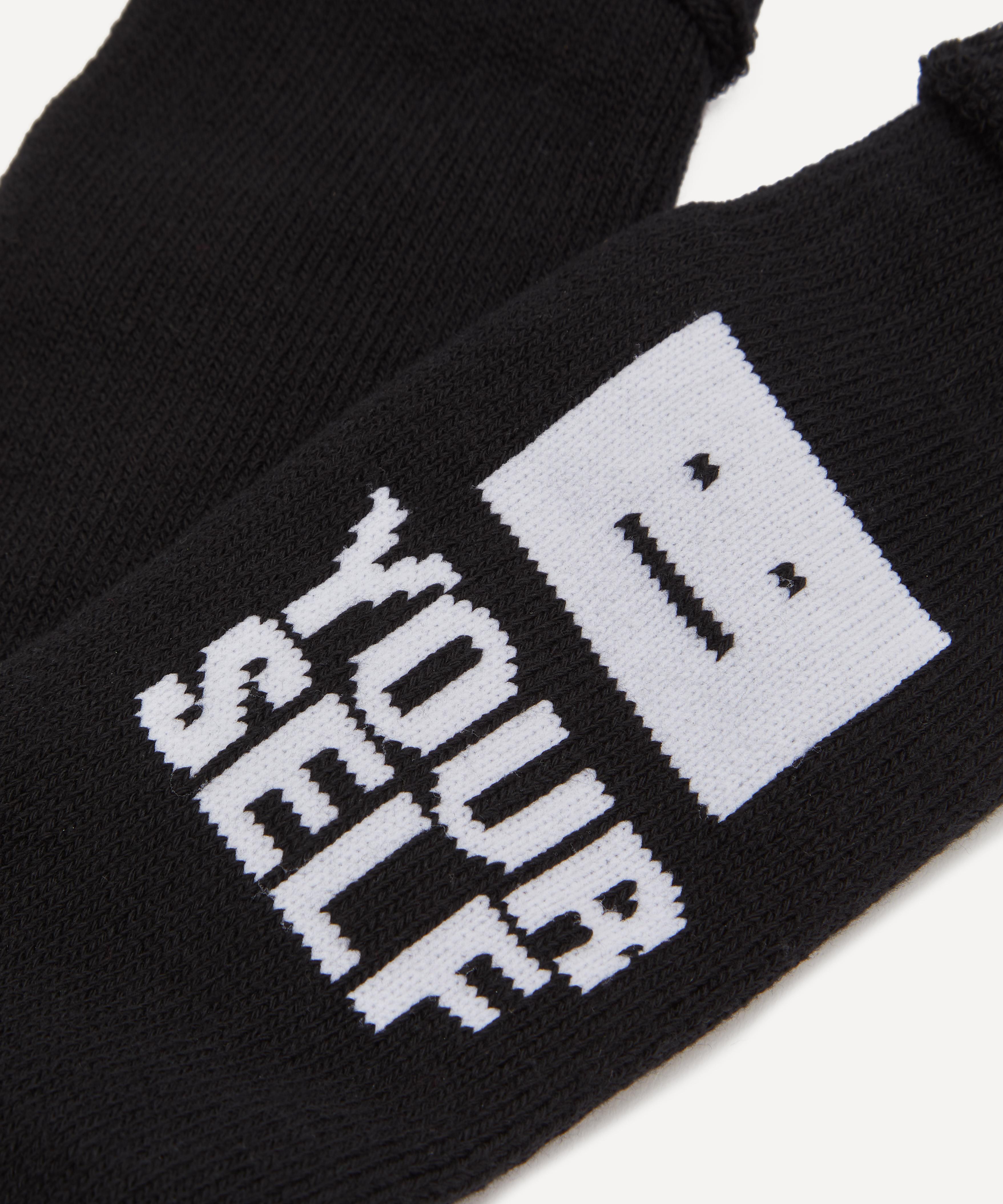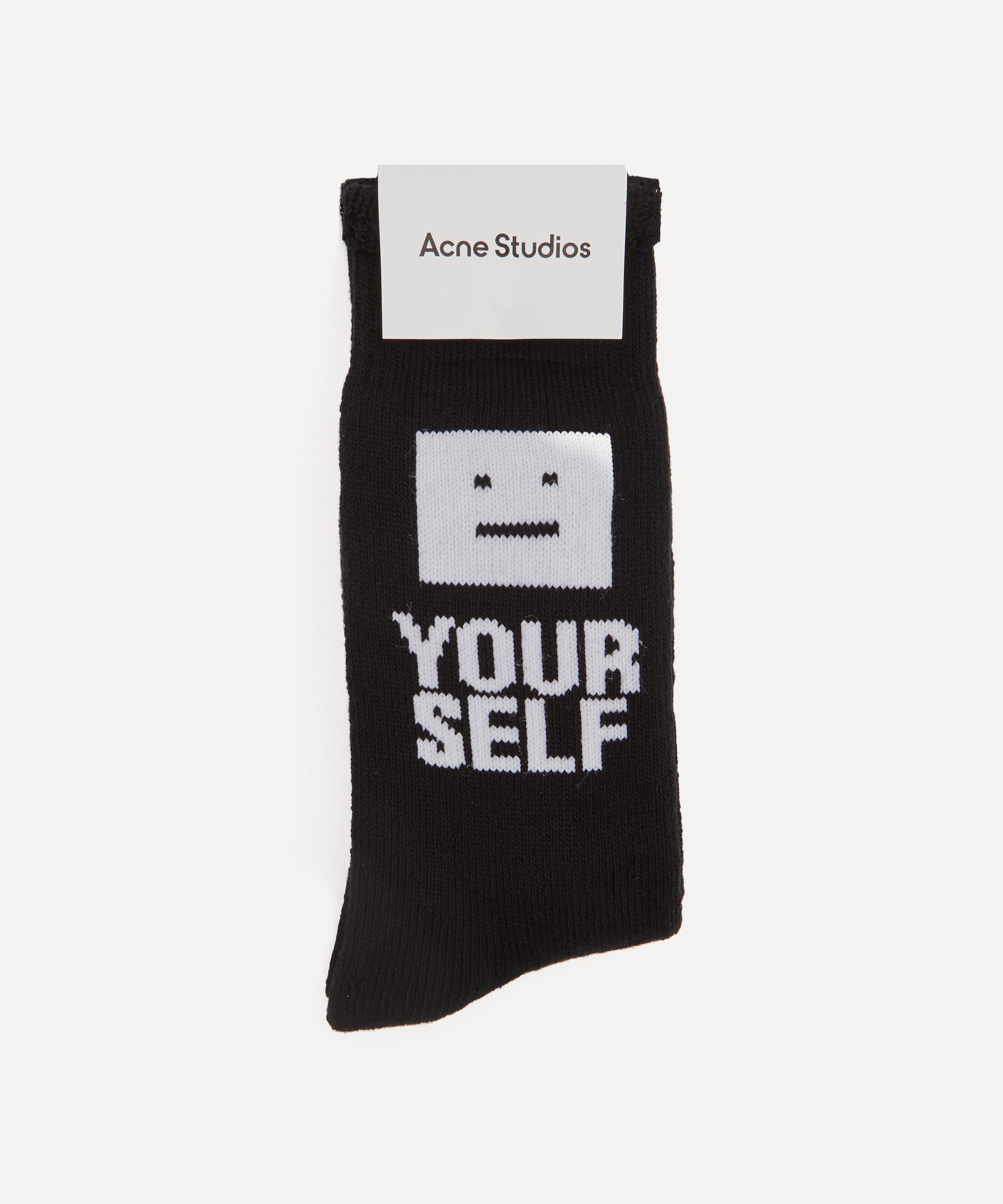 A premium take on an everyday style essential, Stockholm-based fashion house Acne Studios presents these black socks featuring the iconic Face logo for the new season.