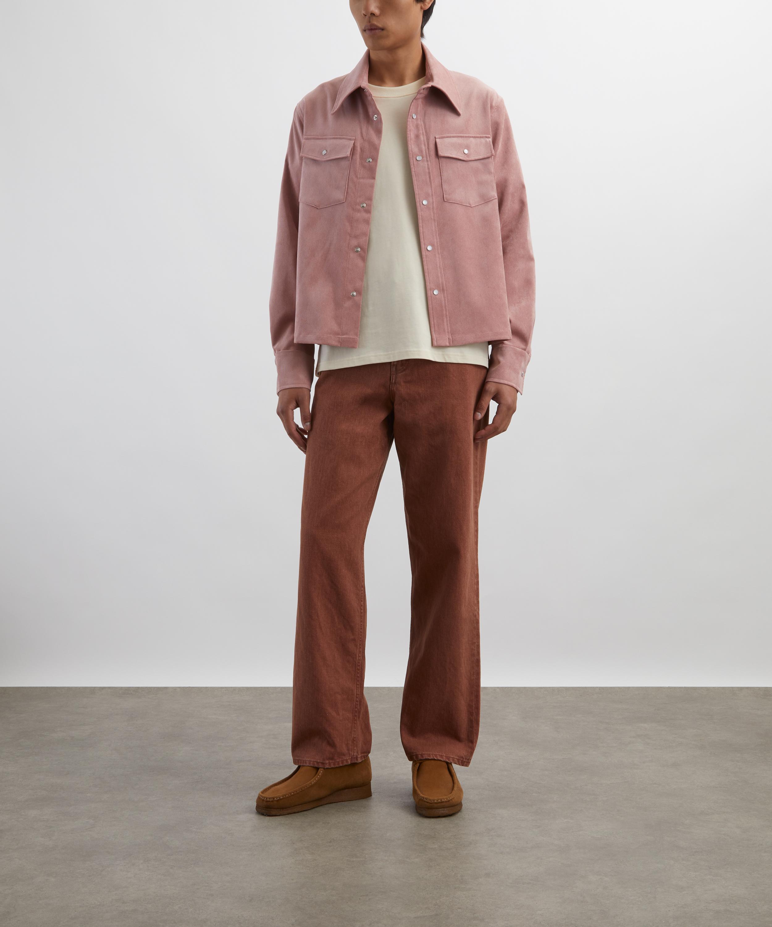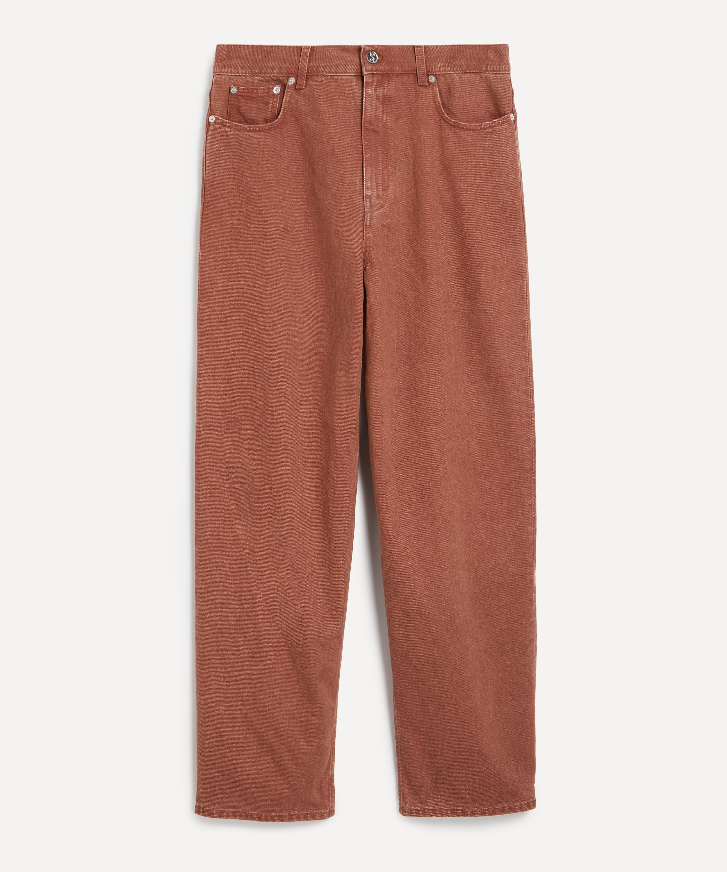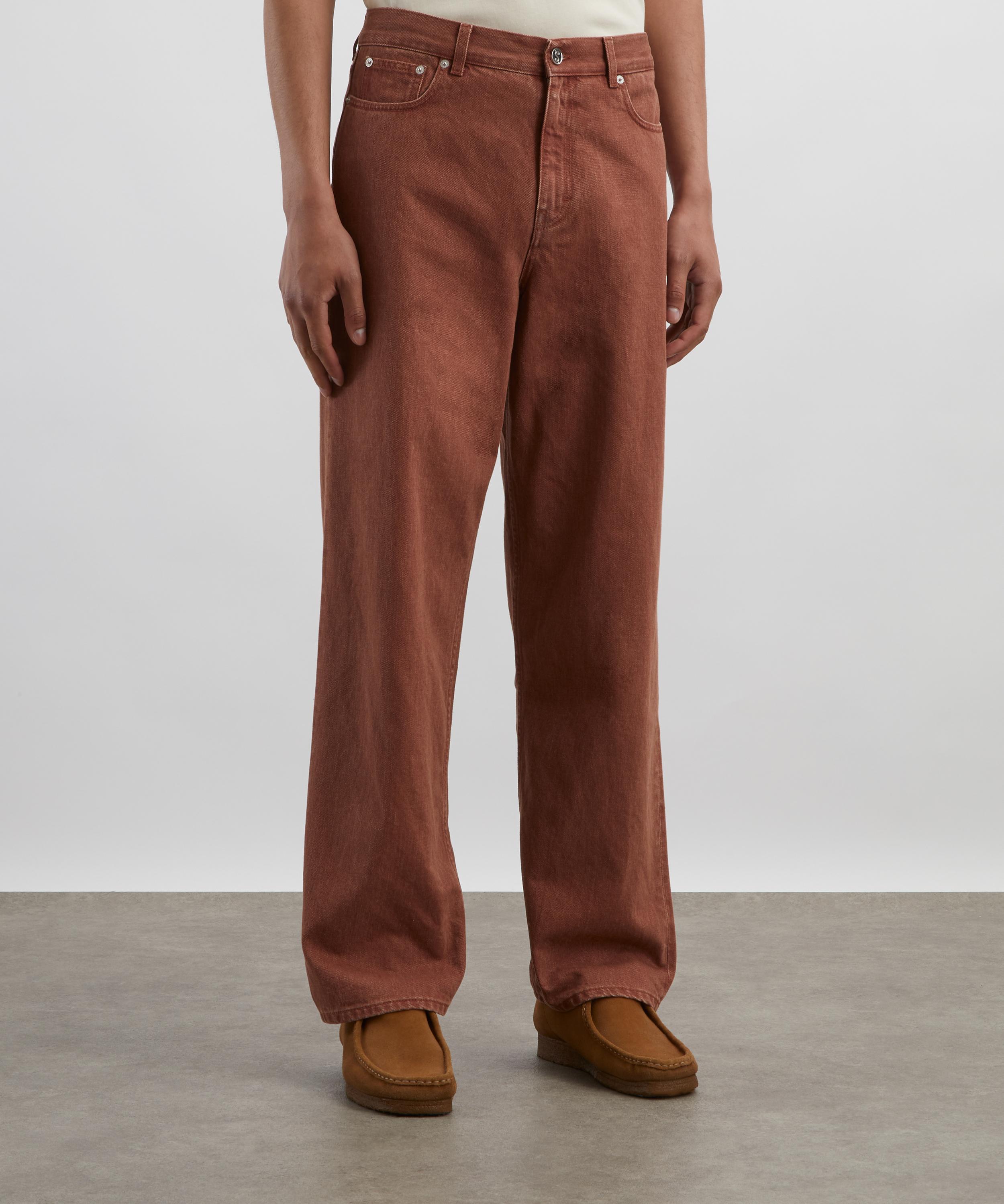 Cut from a faded yet rigid red cotton denim, the Wide Cut jeans feature a relaxed, wide-leg fit with a high-rise, YKK zip-fly, and five-pocket construction for a classic finish.
