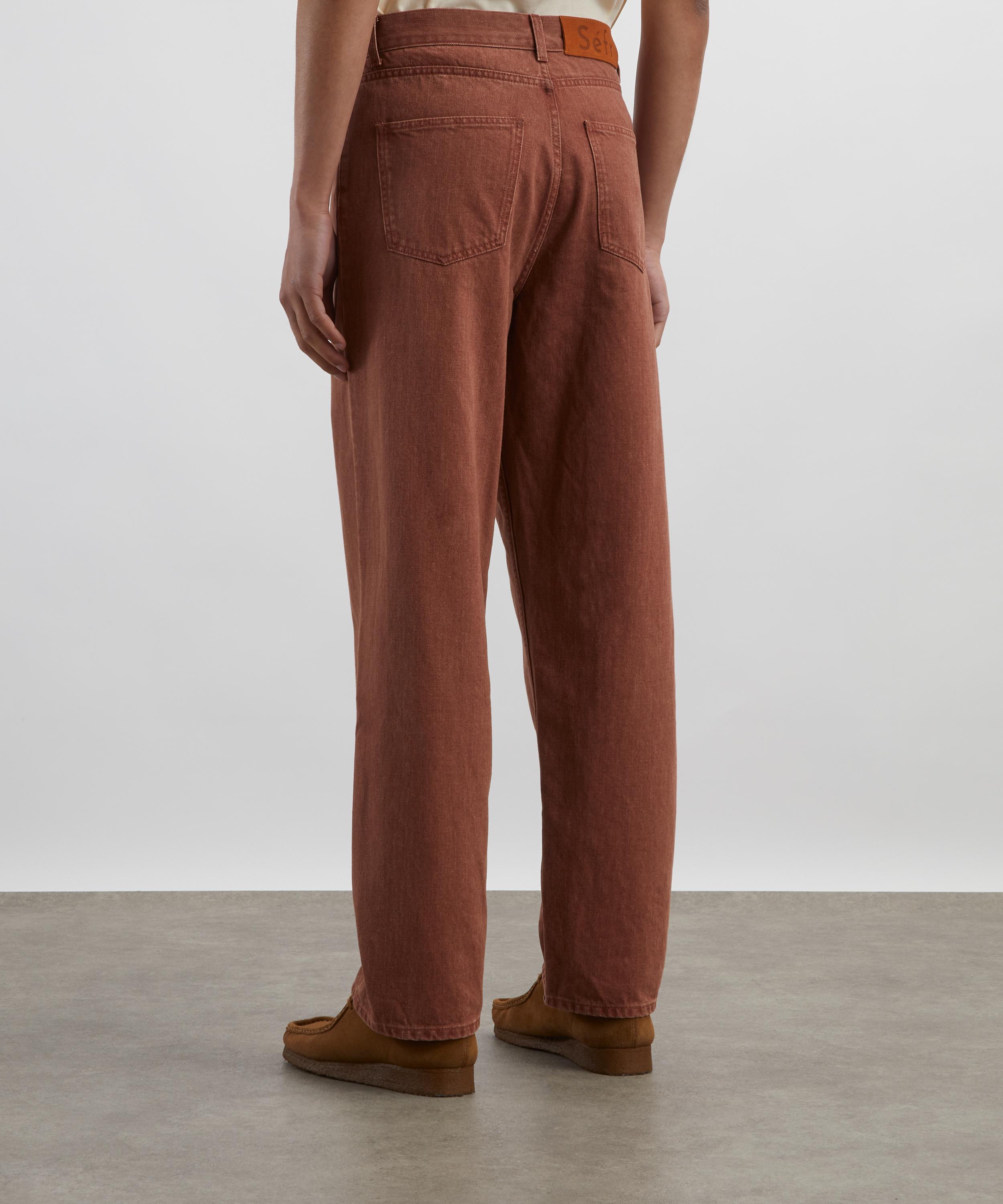 Gothenburg based brand Séfr presents their contemporary take on vintage styles with the Faded Red Wide Cut Jeans.