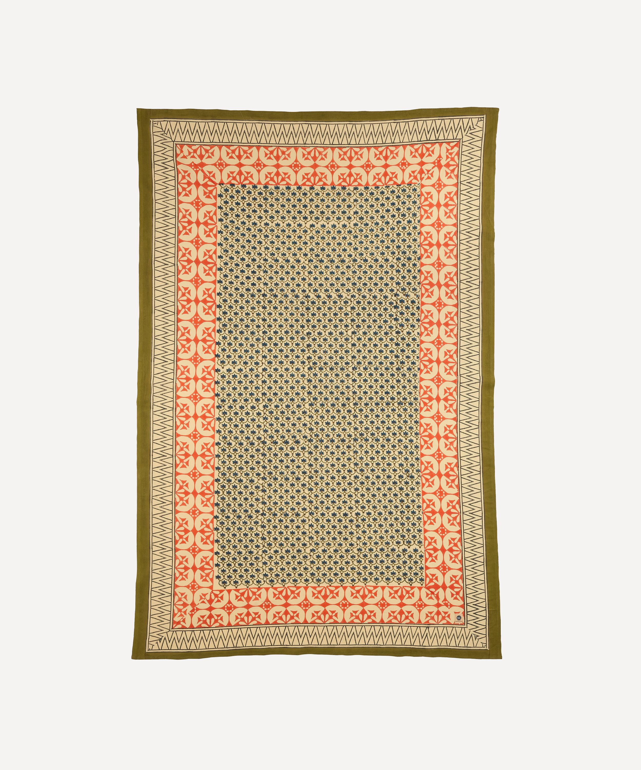 The Faina Block Print Tablecloth from Doing Goods is a vibrant, hand-printed piece to liven up your home.