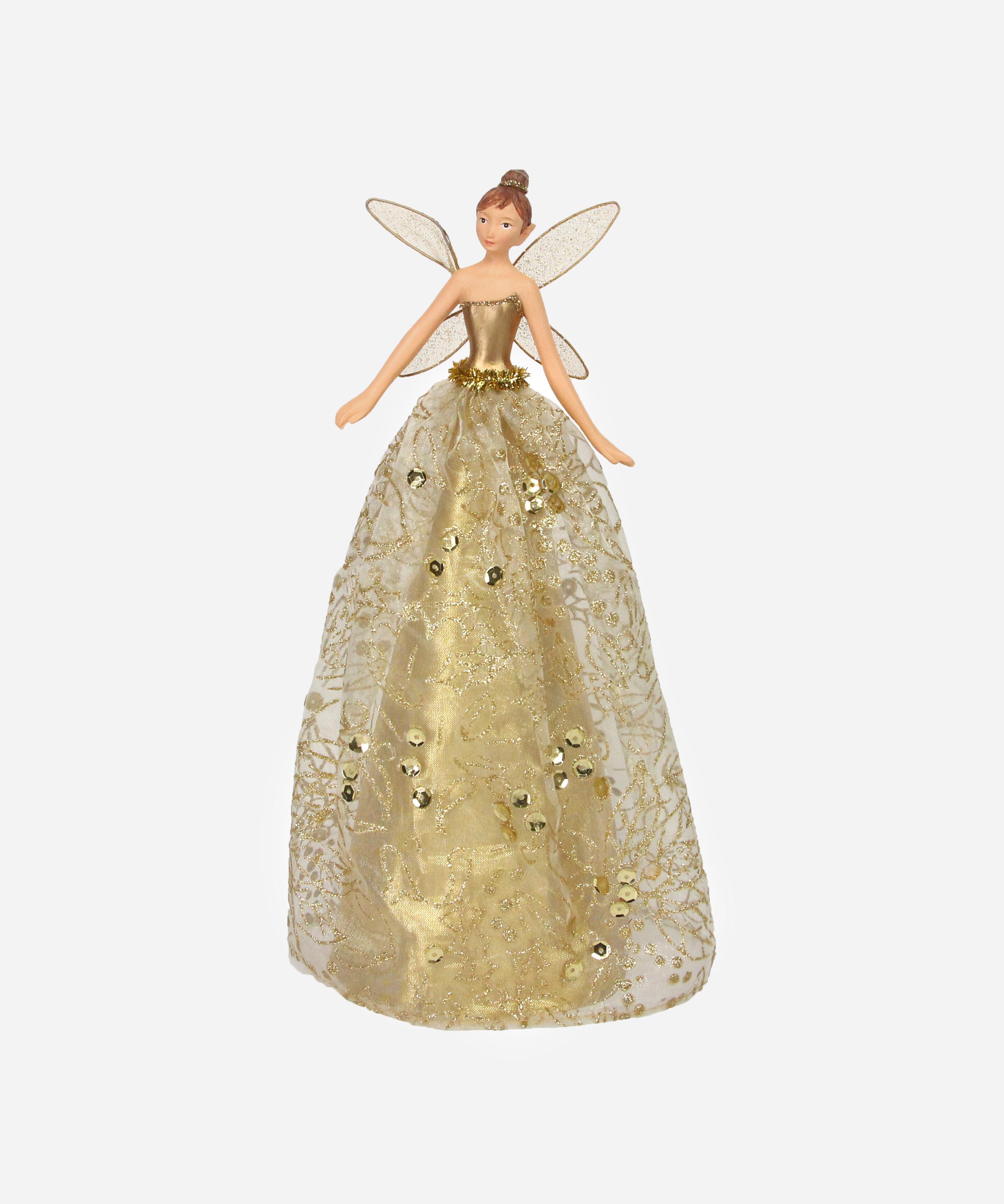 Crafted into fairy form, this tree topper is the finishing touch you need for your pine or fir – the gold-tone dress with coordinating glitter details, sequin embellishment, tinsel waist, and wings makes this a truly magical piece for any collection. Match with other glittering decorations for a coordinated curation this Christmas.