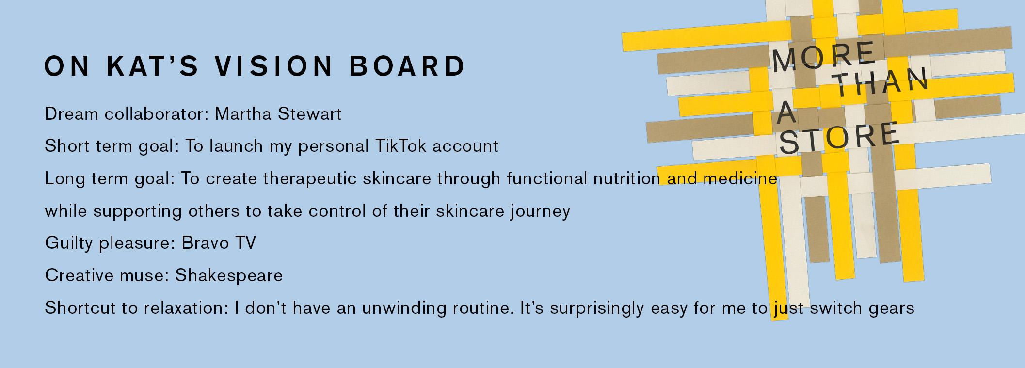 For the uninitiated, Kat Burki is the authority on all things nutrition and skincare. Leveraging three decades of nutritional science research, her approach is to dig deeper, holistically targetting the root causes behind your biggest skin concerns, rather than simply treating the surface symptoms. The result? A collection of clinically-driven, science backed skincare formulas all rooted in nutritional bio-chemistry and engineered to reset skin health – for good. But how did she get there? Here, she shares her tips for creativity and the goals on her vision board