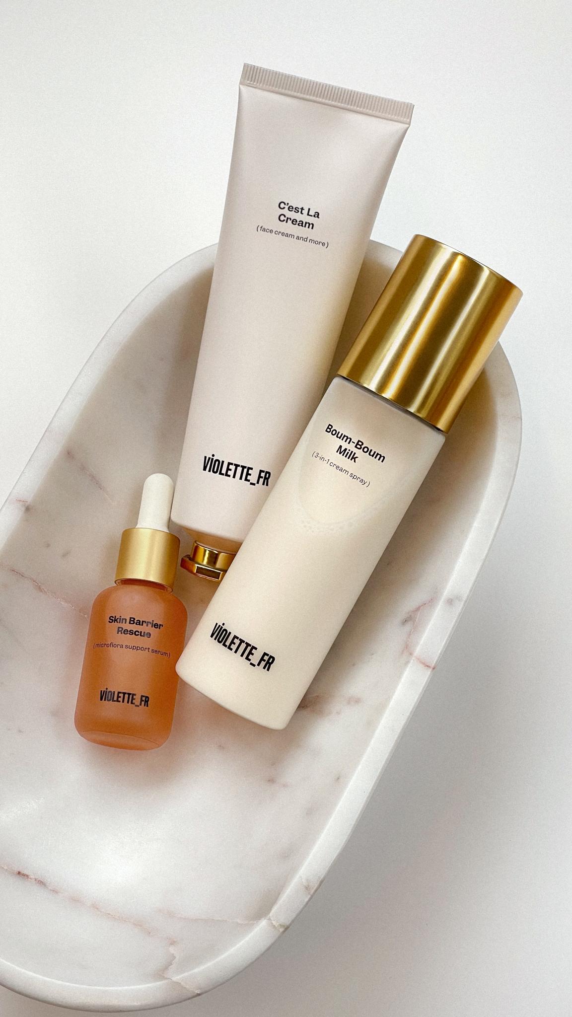 As VIOLETTE_FR launches in Liberty for the first time, she shared her skin and makeup must-haves. “They each give me something essential: health, comfort, and confidence,” she says. “Boum-Boum Milk, concealer, and Bisou Balm—healthy skin, a touch of coverage where needed, and a blurred, just-kissed lip. Et voilà.” Consider us convinced.