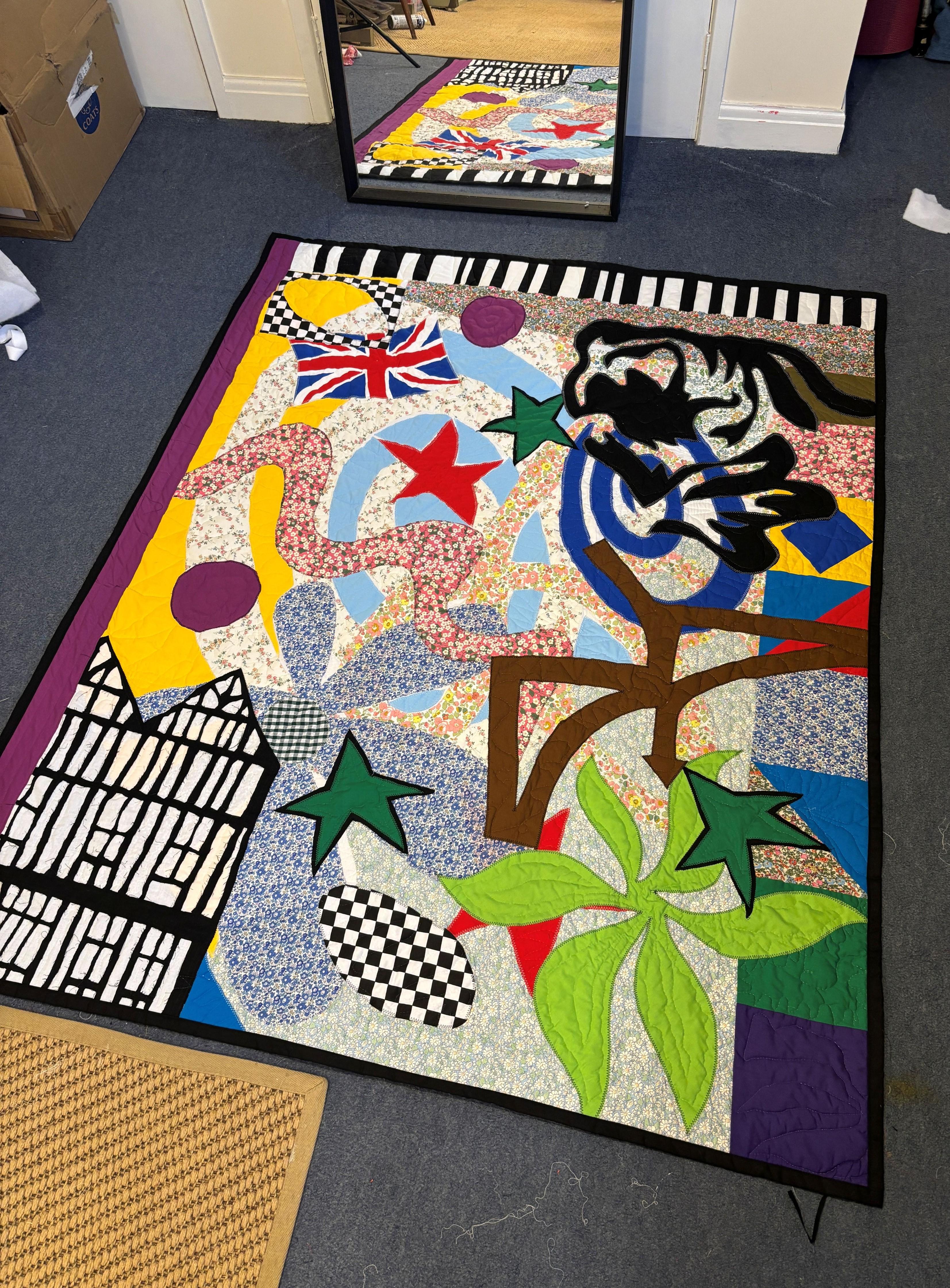 Once the quilting is complete, trim away any excess wadding and bind the edges to finish the quilt.