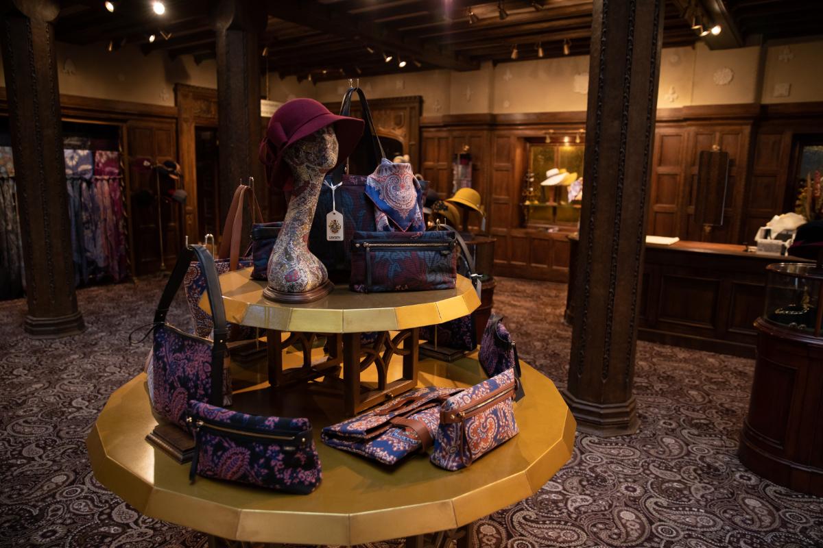 While some scenes were filmed at the physical Liberty store, others were shot at Shepperton Studios, where production designer Fiona Crombie and set decorator Alice Felton recreated our stunning emporium, with no detail overlooked. “While it would have been ideal to be able to shoot the entire Liberty sequence on the actual location, the amount of time needed to transform the existing store made it impossible,” says Producer Kristin Burr. “So, for the interior sequences, Crombie had it 3-D scanned so the entire thing could be built on a stage…To be able to tell the story of Liberty as a ‘70s store, we had to make our version. We wanted to immediately have the audience see it and think ‘what an incredible store.’”