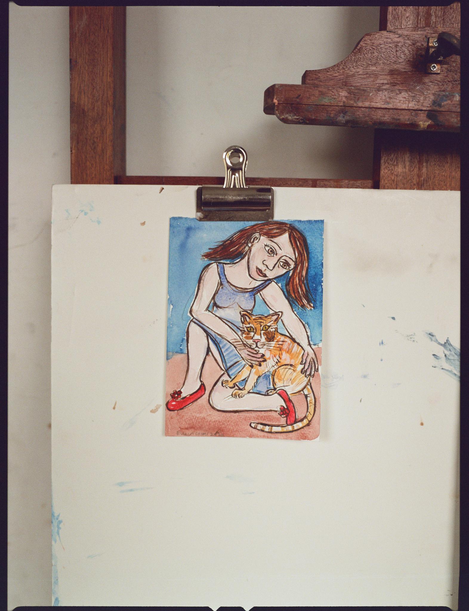They’re all quite recent. The watercolours are made very differently from paintings, but I work on series, moving backwards and forwards between pieces. I was thinking about things I love, kimonos, slippers, make-up, bits of furniture. The bear crept in as well.