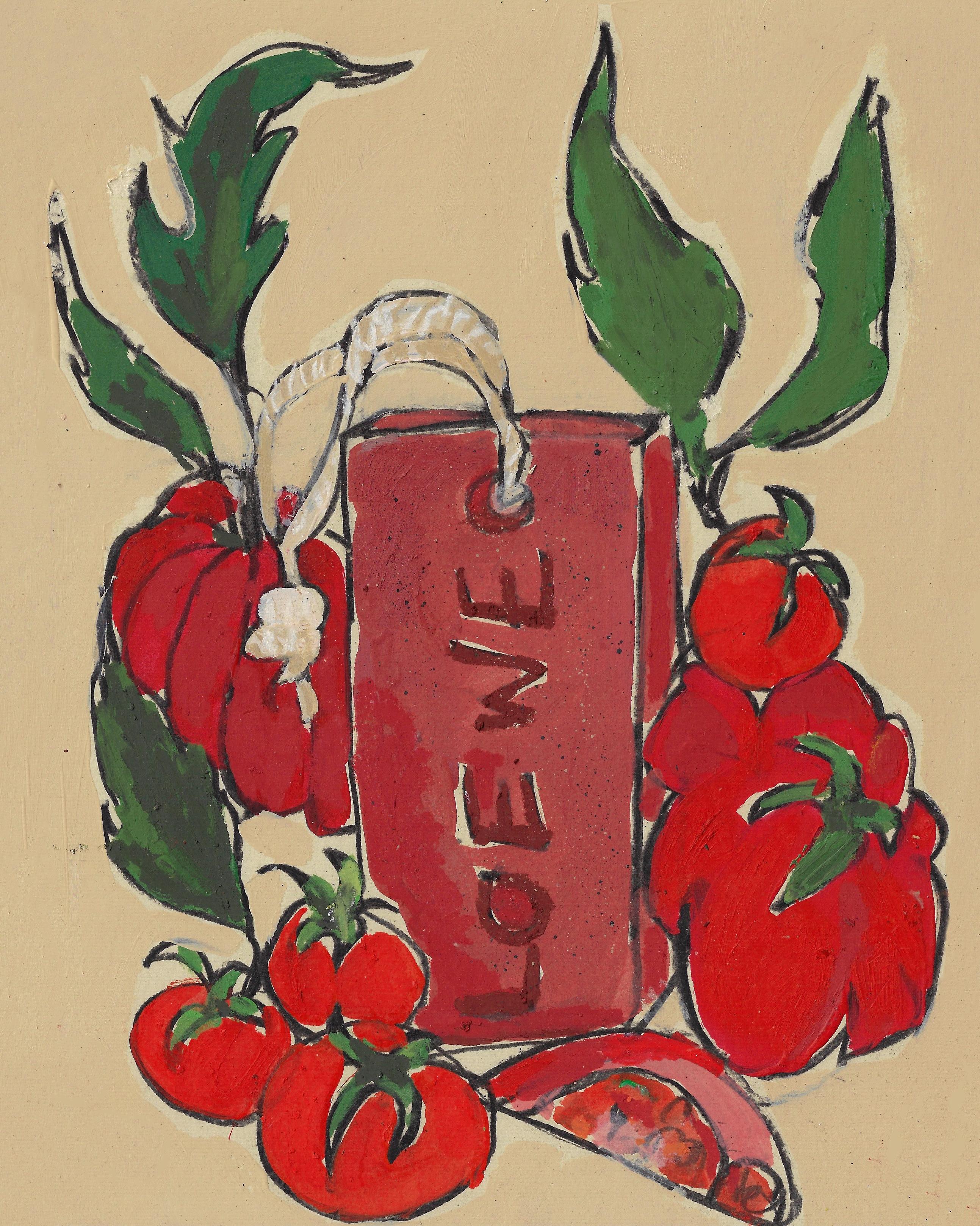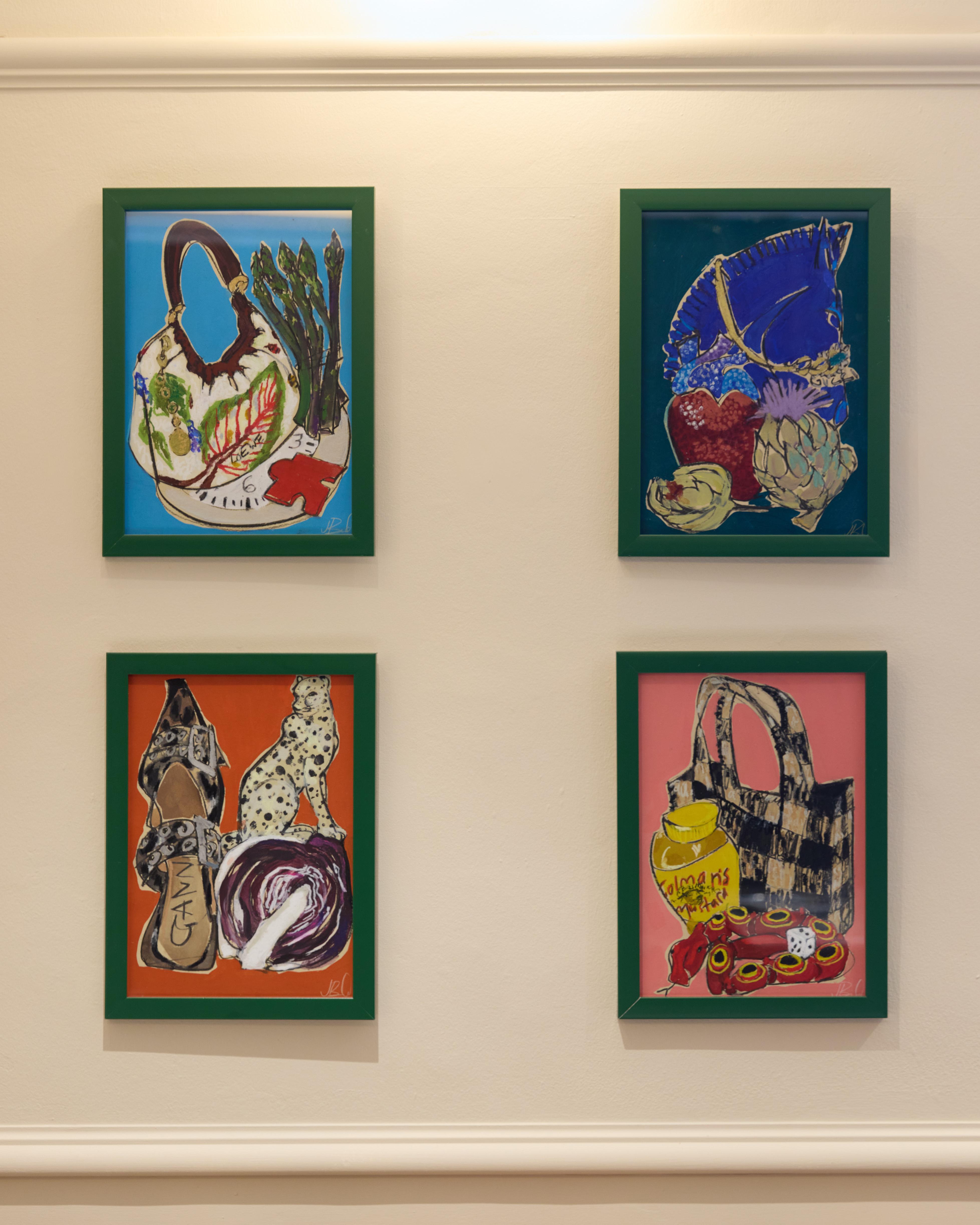 As anyone who has explored our neo-Tudor Halls can attest, Bird wasn’t short on inspiration. As well as the seasonal fare served up in our restaurant, Bird was inspired by the curated edit of fashion, accessories and homeware found across our floors, whether it’s a bulb of ruby red beetroot sidled up alongside a luxury fragrance, or a billowing courgette flower leaning against a cult bag. “I did lots of window shopping,” she admits. “There was just so much to choose from, I could have made a thousand artworks.”