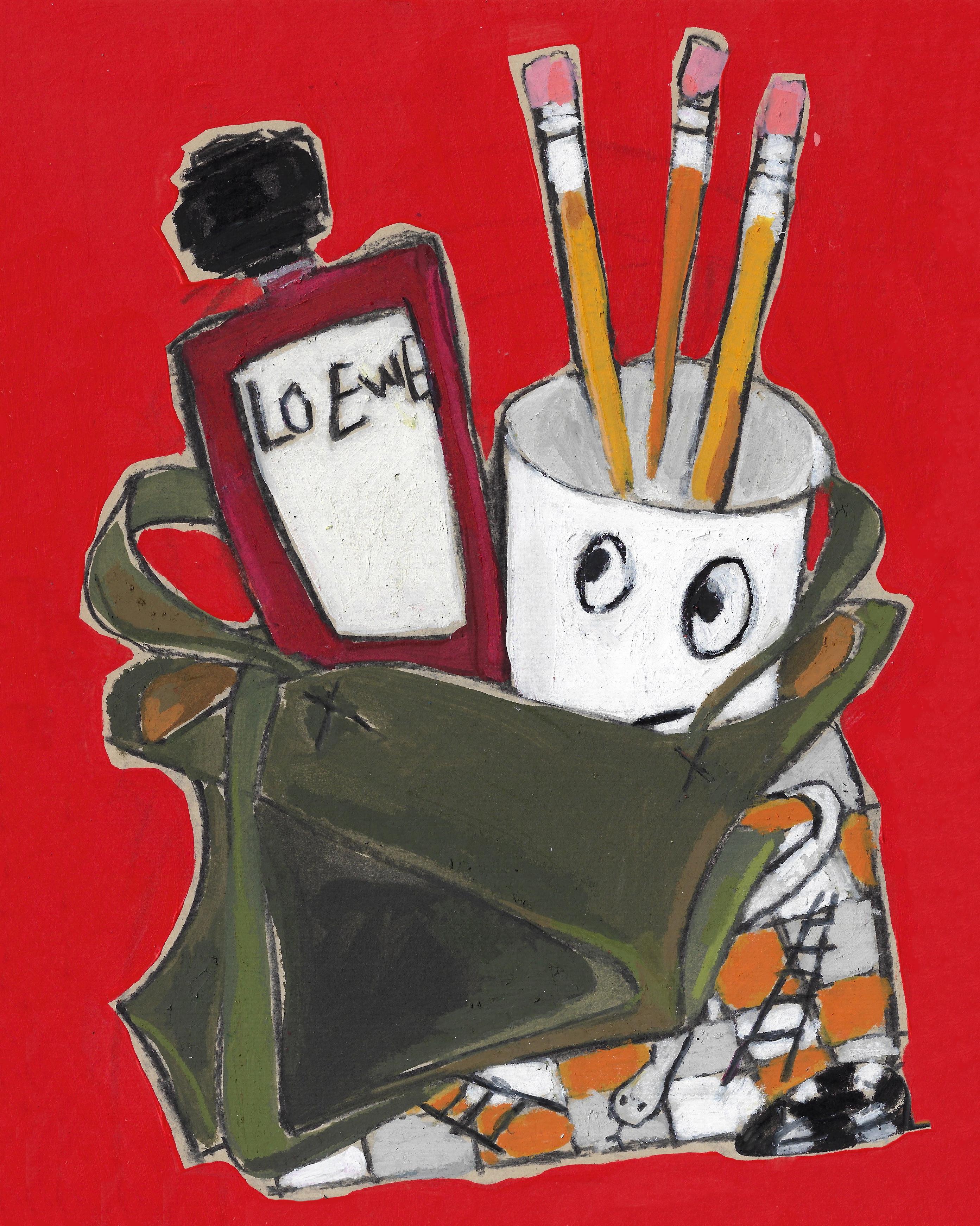 “I was really drawn to Jonathan Adler, and the sculptural element of his pieces,” she explains. “Fashion-wise, I enjoyed drawing the Ganni footwear and bags, as well as items from Vivienne Westwood, Anya Hindmarch and LOEWE.”