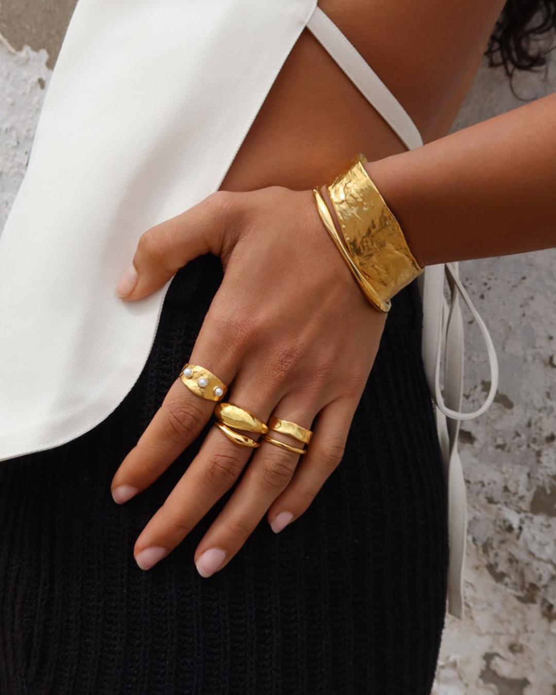 In jewellery terms, think textured metals dotted with unique pearls. “Each piece in the collection draws from natural elements of the island, the textures used could be interpreted as both weathered rock or sunlit ripples on the water,” Warnock explains. “We’ve used irregular shaped pearls to echo the island's organic beauty.”
